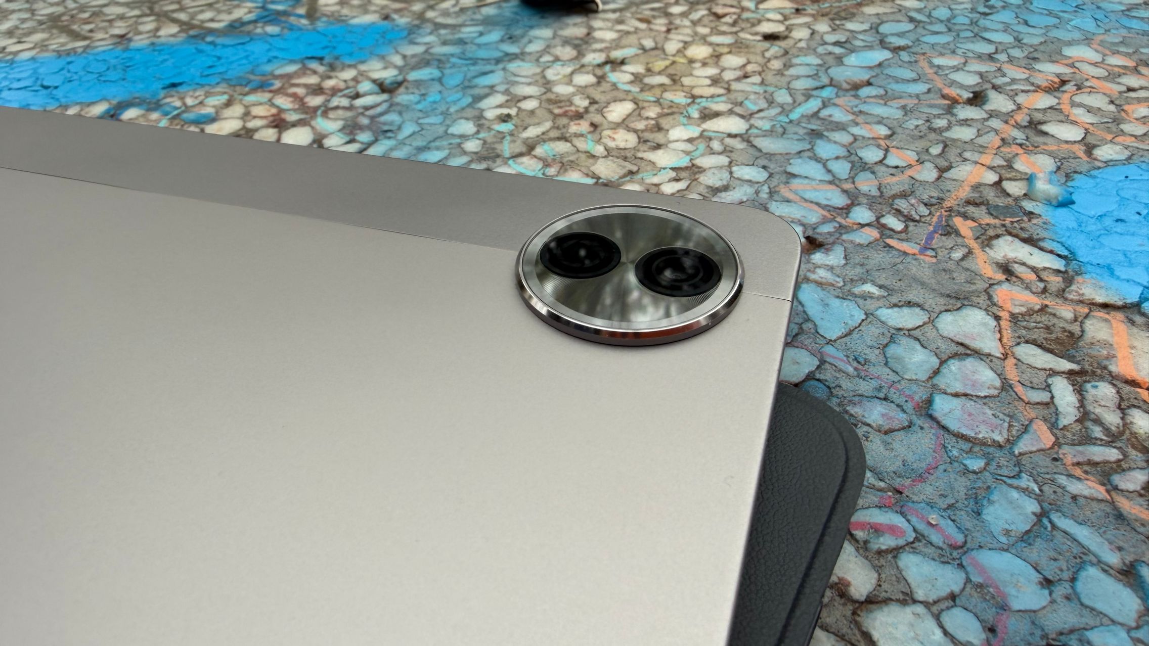 HONOR Pad 10 respectă clasica reţetă a tabletei midrange şi high end: corp din aluminiu, cu finisaj în două tonalităţi pe spate. Vine pe gri, cum o am şi eu şi cyan, adică un verzui foarte sexy. Modulul foto promite multe, prin design, dar livrează doar un senzor de 8 MP.