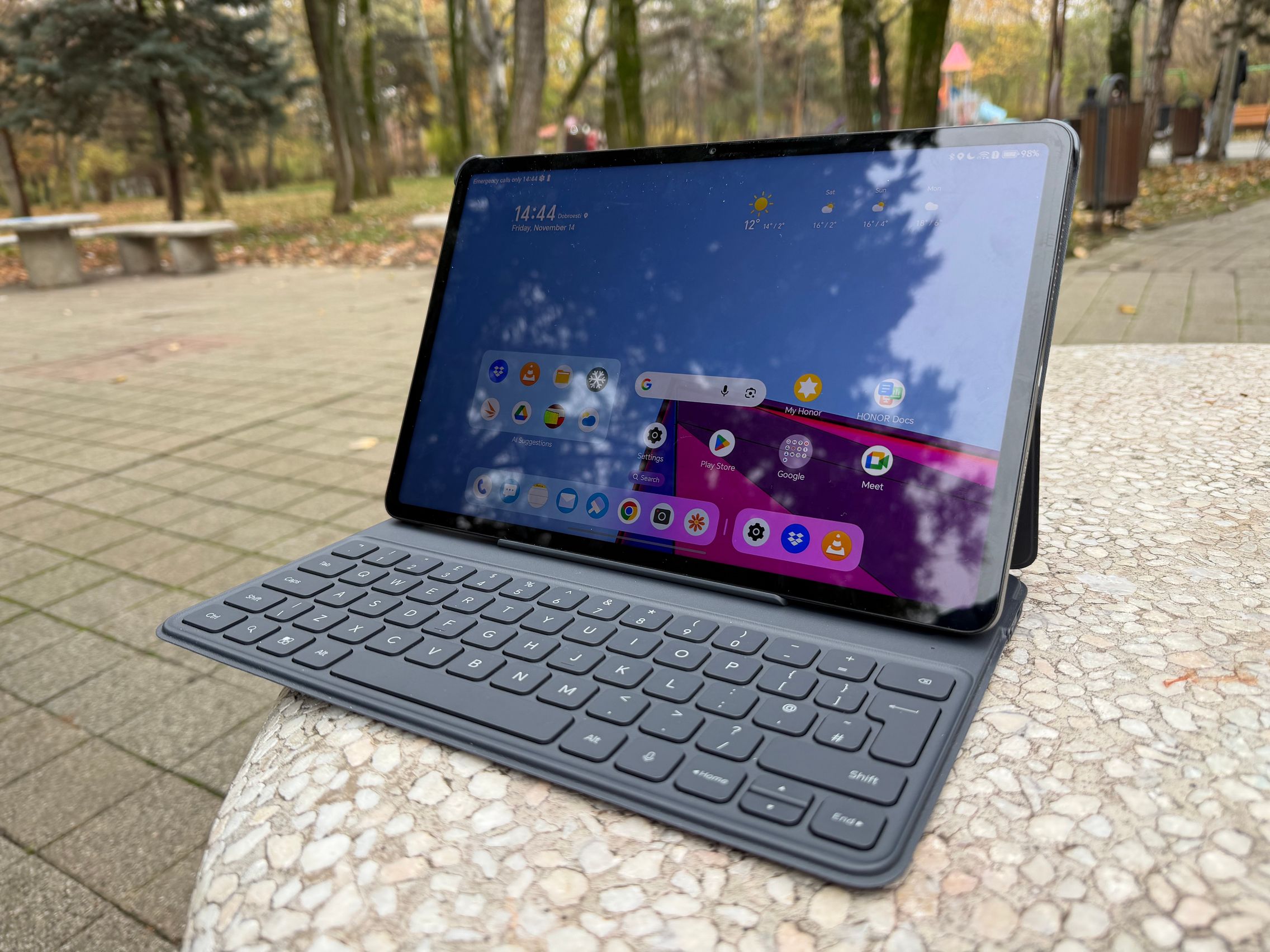 Cât despre conectivitate, tableta oferă tehnologie LTE / 5G, Wi-Fi 6 dual-band, Bluetooth 5.3 cu tehnologii precum A2DP, LE, aptX HD. Hardware-ul e echilibrat și tare atractiv, iar tableta dispune și de accesorii dedicate, precum o husă smart cu tastatură atașată pe care o primești la pachet cu aceasta în unele cazuri. Depinde de la ce retailer cumperi device-ul.