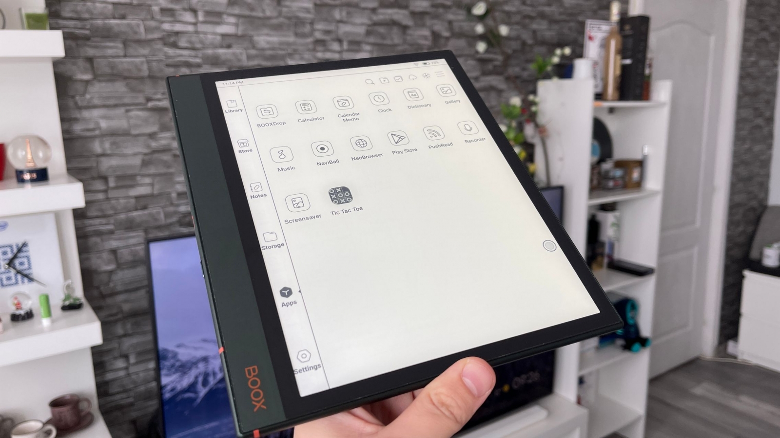 Interfața este diferită de cea a unei tablete clasice Android și vei găsi un taskbar lateral stânga cu opțiunile Bibliotecă, Magazin, Note, Stocare, Aplicații și Setări. În Bibliotecă vei găsi cărțile tale ebook descărcate, iar Magazin se referă aici la un store dedicat de cărți de unde poți descărca titlurile favorite, deși ai desigur și posibilitatea de a-ți încărca propriile ebook-uri deținute, inclusiv conectarea unui cont cloud de unde să le accesezi (Dropbox, Google Drive, Baidu Cloud, OneDrive, NutStore, WebDAV). Note este explicit și de aici vei crea notițe noi și schițe și accesa pe cele salvate.
