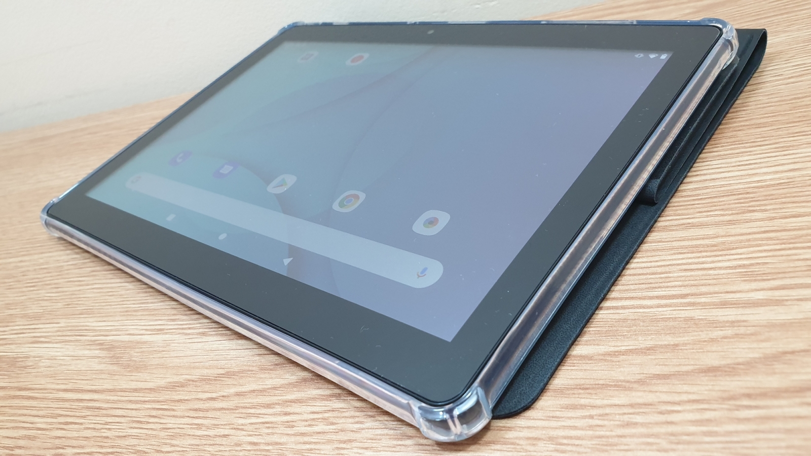 Chiar spuneam în recenzia tabletei H1003 LTE faptul că mi-ar fi plăcut să văd o astfel de husă, ținând cont de faptul că va fi utilizată în procesul educațional, plasată pe birou. Ce lipsește față de modelul precedent din pachet este acel dongle USB care ajuta la conectarea unui mouse. Din punct de vedere al design-ului nu s-au schimbat prea multe față de predecesor. Aș zice că marginile din jurul ecranului rămân neschimbate ca dimensiuni.