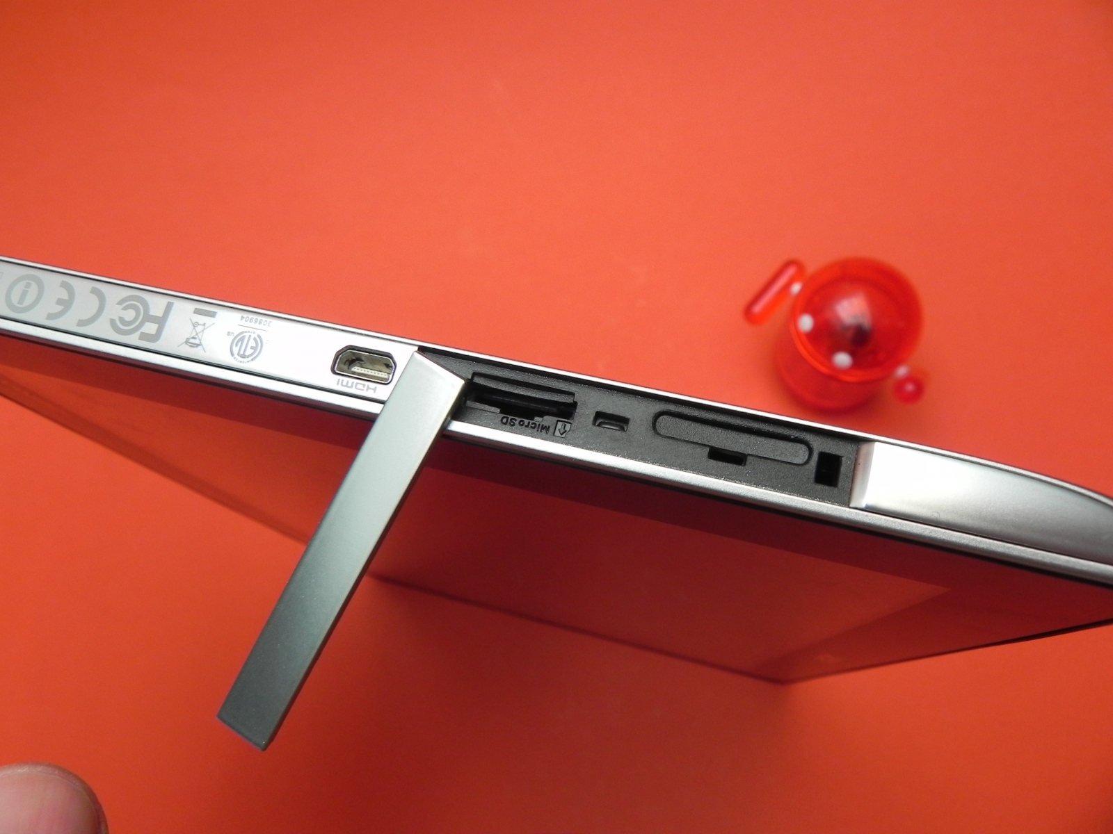 Terminalul nu dispune de un port full USB, ceea ce consider un mare minus, dar măcar primim la pachet un adaptor USB, cu care putem atașa atât un stick USB, cât și tastaturi și un mouse. Acer Iconia Tab A510 cântărește 680 de grame și măsoară 10.2 mm în grosime, deci e departe de ideea de tableta slim. și aici apar și problemele. O privire în partea de sus a ecranului ne permite să observăm că iluminarea ecranului răzbate prin marginea acestui display de 10.1 inch, o problemă hardware neplăcută, dar sesizabila doar dacă te uiți cu atenție.