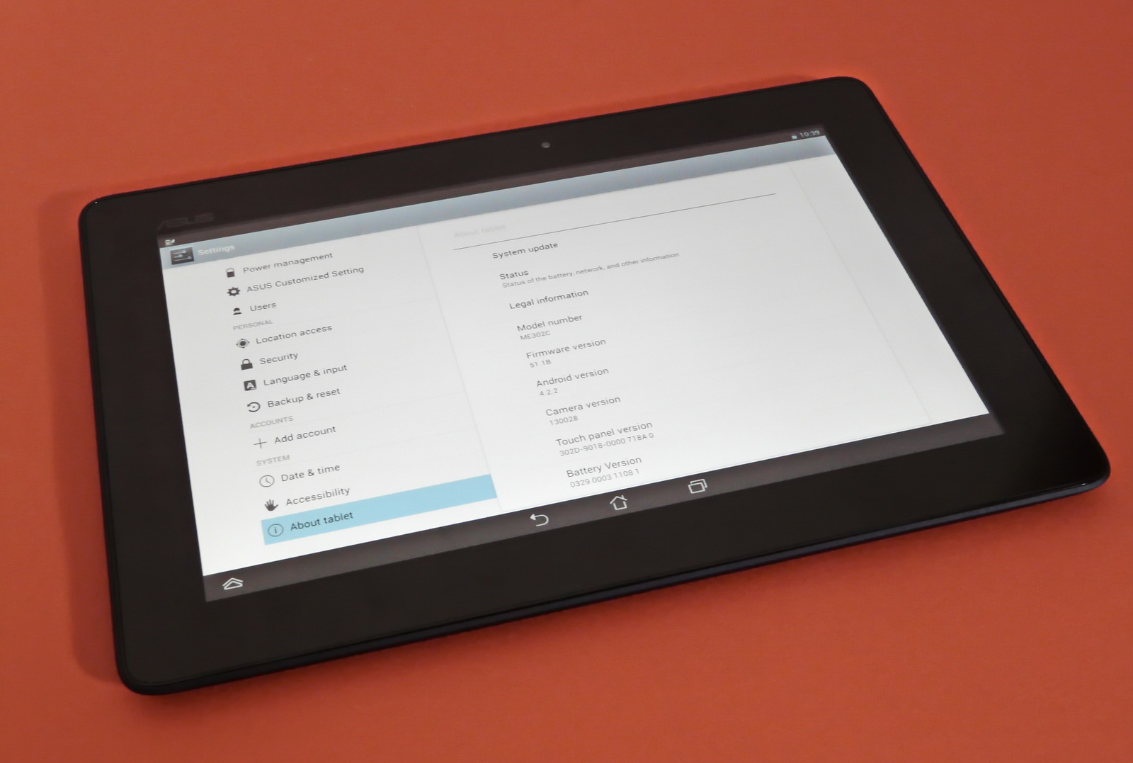 ASUS MeMo Pad FHD 10 rulează Android 4.2.2, vine cu un browser web rapid și o tastatură virtuală comodă, cu un rând numeric binevenit. Spre deosebire de Nexus 10, această tabletă optează pentru o singură zonă dropdown pentru notificări și toggle-uri, ceea ce e mai comod, față de cele două de pe terminalul Nexus de 10 inch. ASUS a implementat și o opțiune Floating Apps, care permite realizarea unui multitasking avansat, prin utilizarea a mai multe aplicații în același timp, ele fiind plasate pe ecran precum o serie de "widgeturi always on".