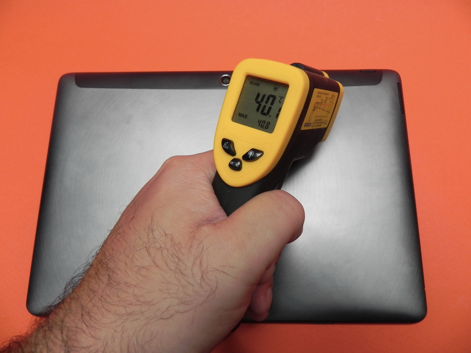 Bătălia dintre tabletele de mai sus s-a dat între Tegra 4, Tegra 3 și Snapdragon 800. Temperatura acestui terminal după 30 de minute de gaming în Asphalt 8 atinge 40.8 grade, dar asta doar într-un colț din spatele tabletei, unde nu veți ajunge cu mâna în timp ce jucați titluri Android. în rest, corpul tabletei rămâne la 33 de grade, ceea ce nu e rău deloc.