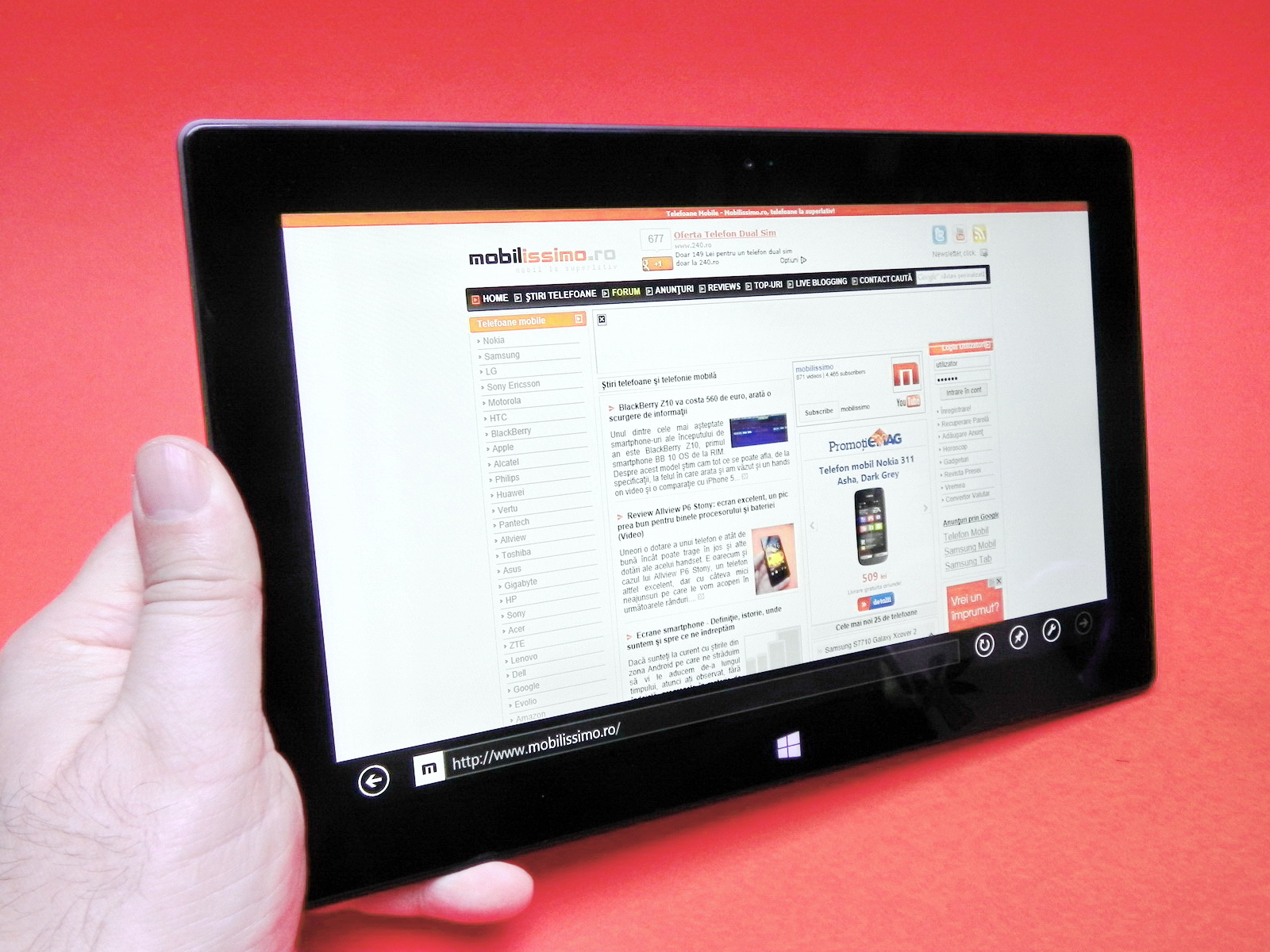 Ați văzut probabil și voi clipul cu un oficial Microsoft care a atașat roți de skateboard tabletei și a făcut skateboard pe ea. Confirmăm faptul că tableta e rezistentă și mai trebuie menționat că e vorba aici de o carcasă din magneziu fabricată pe baza procesului Vapor MG. Suportul din spate are un unghi de 22 de grade și se deschide doar la acest unghi, iar dacă mă întrebați pe mine, dacă aș avea de ales o tabletă Win RT, aș prefera, sincer să fiu modelul ASUS VivoTab RT la capitolul design.