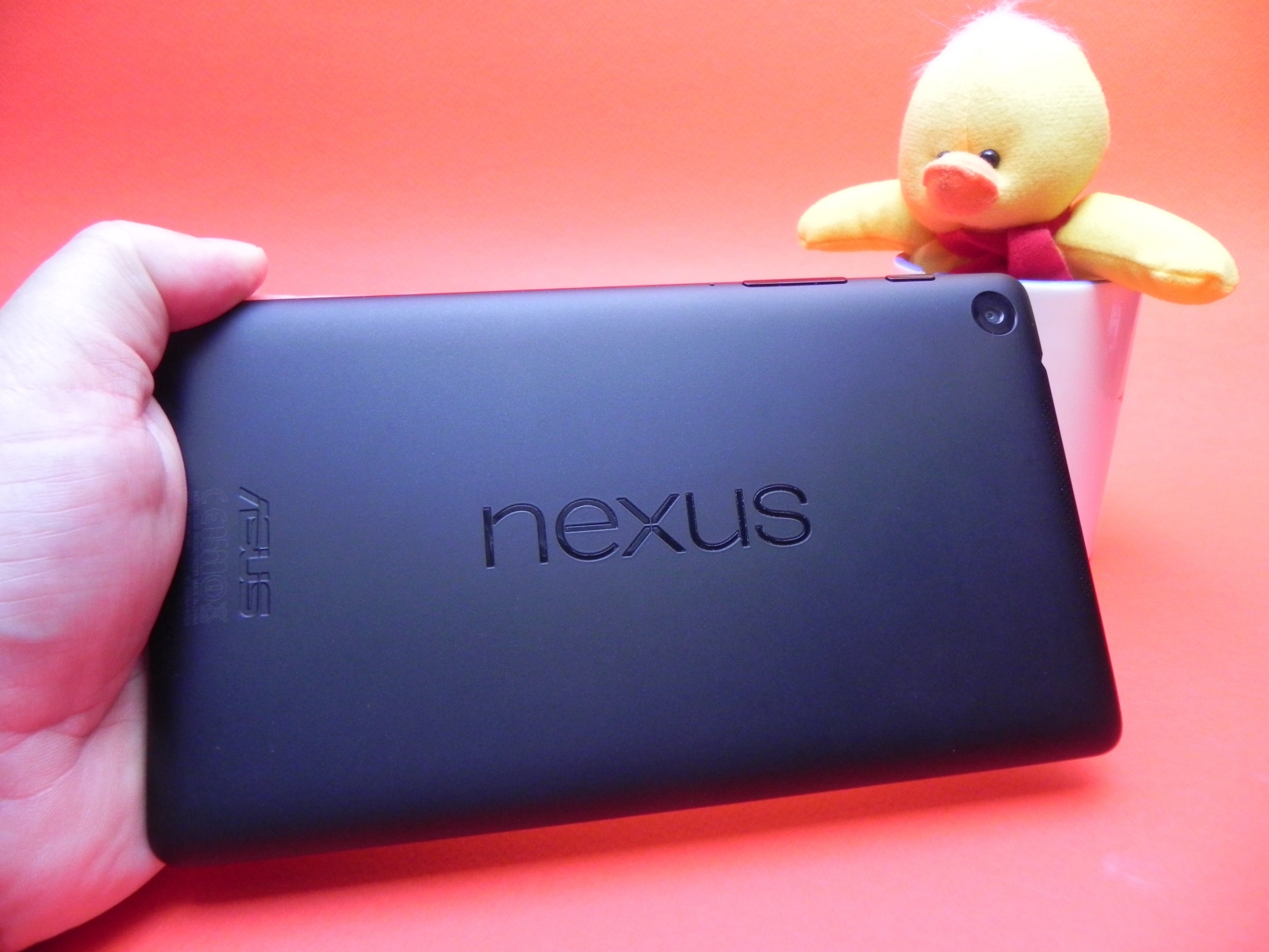 Terminalul are totuși margini mari sus și jos față de ecran. Nexus 7 2013 este o tabletă cu orientare panoramică 16:10, difuzoare stereo în spate și o cameră de 5 MP în colț. în partea superioară se află un jack audio, iar jos un port microUSB. Pe dreapta regăsim butoanele de volum și Power, iar în zona frontală sus se află pentru videoconvorbiri și senzorul de lumină ambientală.