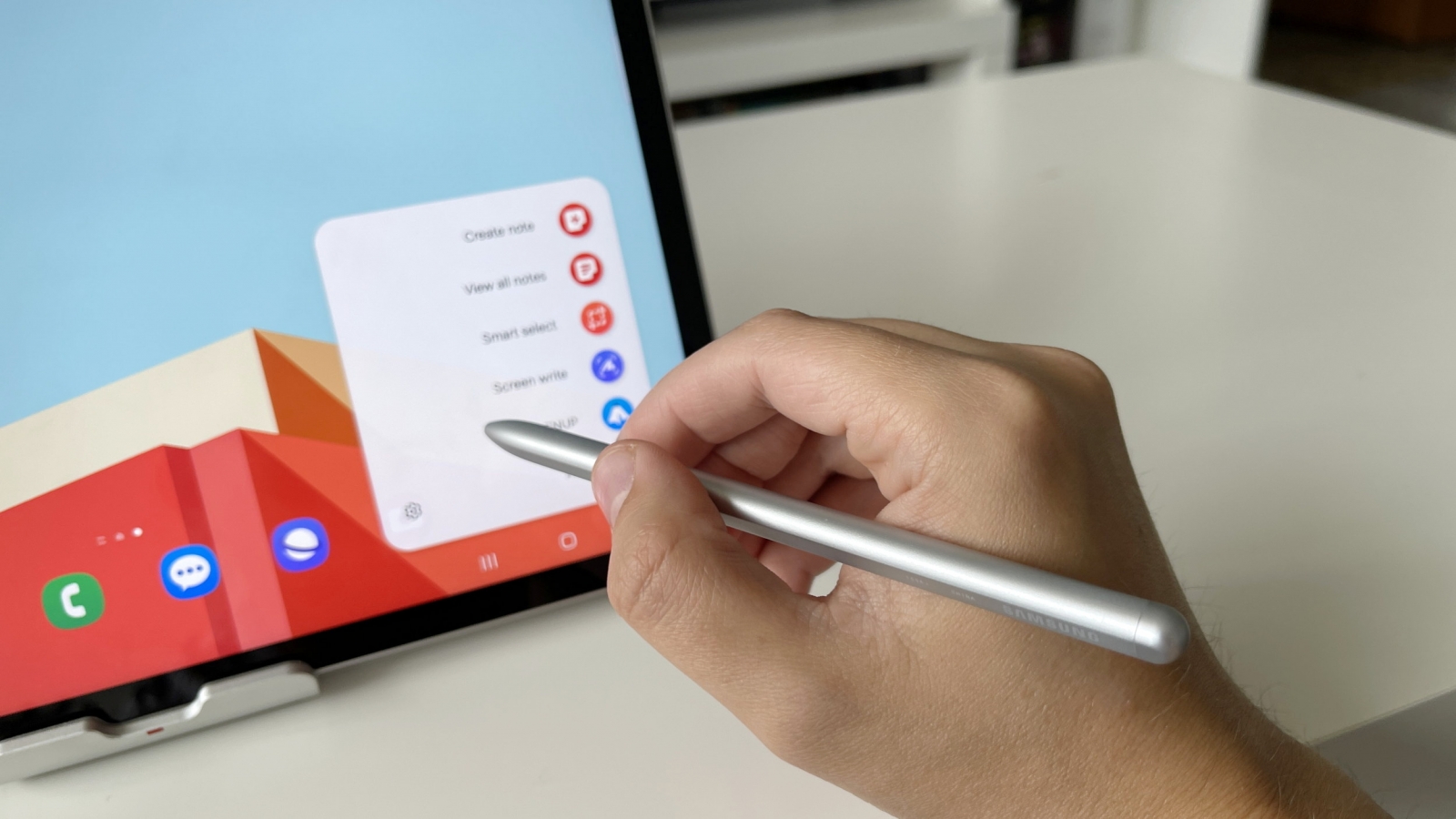 Stylusul oferit la pachet pare să aibă aceleaşi funcţii ca şi cel ce vine cu seria Tab S9. Îţi permite să iei notiţe, să desenezi, cu diferite grosimi de peniţe şi nuanţe. Aplicaţia Notes recunoaşte scrisul de mână şi avem şi posibilitatea de a sublinia, de a scrie pe lockscreen. Există şi funcţii că PENUP, Smart Select, Live Messages, Translate, Glance, AR Doodle.
