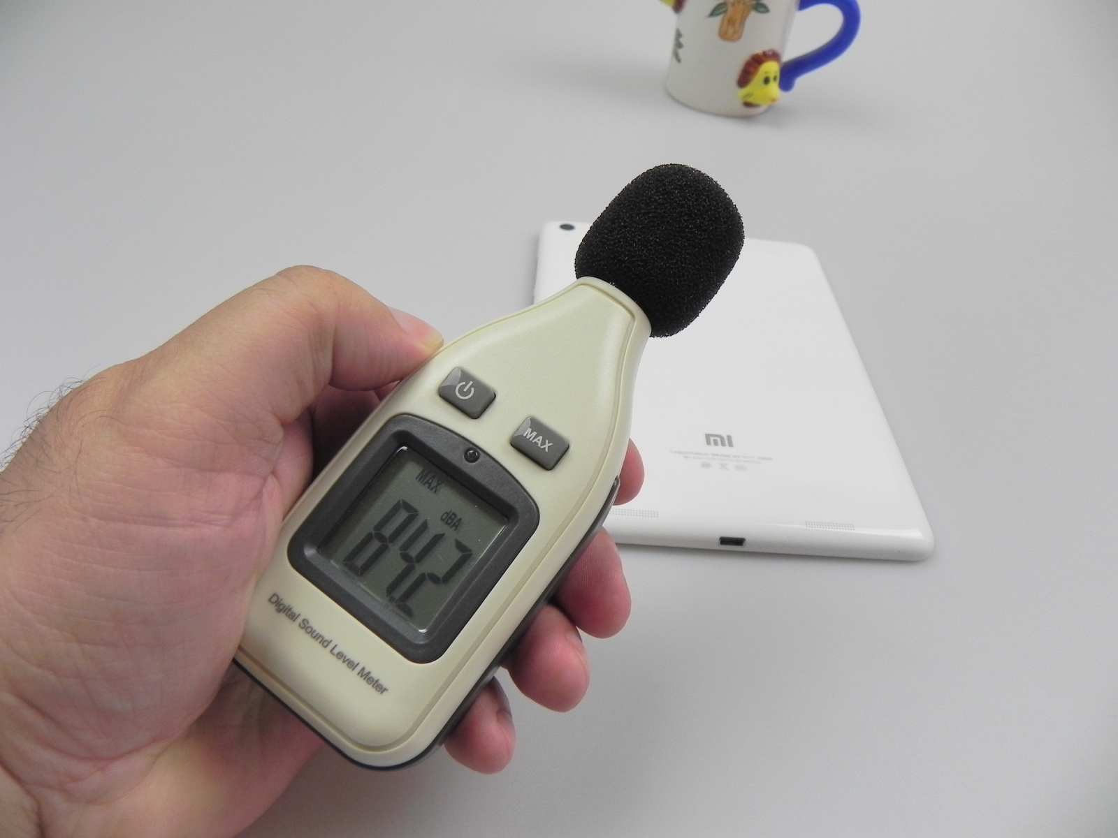 Am folosit și decibelmetrul și am atins 83.3 dbA în față și 84.2 dbA în spatele terminalului, iar ca termen de comparație un LG G3 atinge 87 dbA. Trecând la aspectul video, terminalul vine cu un display IPS LCD de 7.9 inch, cu rezoluție de 2048 x 1536 pixeli, iar playerul video inclus în MIUI este minimalist și oferă acces la un Store de conținuturi ca și playerul audio. Ecranul afișează culori vii și oferă unghiuri largi de vizualizare. Luminozitatea sa este destul de ridicată, iar claritatea este deosebită. Acest display folosește tehnologie OGS și pixeli RGB Stripe, iar el se comportă OK în bătaia soarelui, neavând probleme în astfel de condiții.