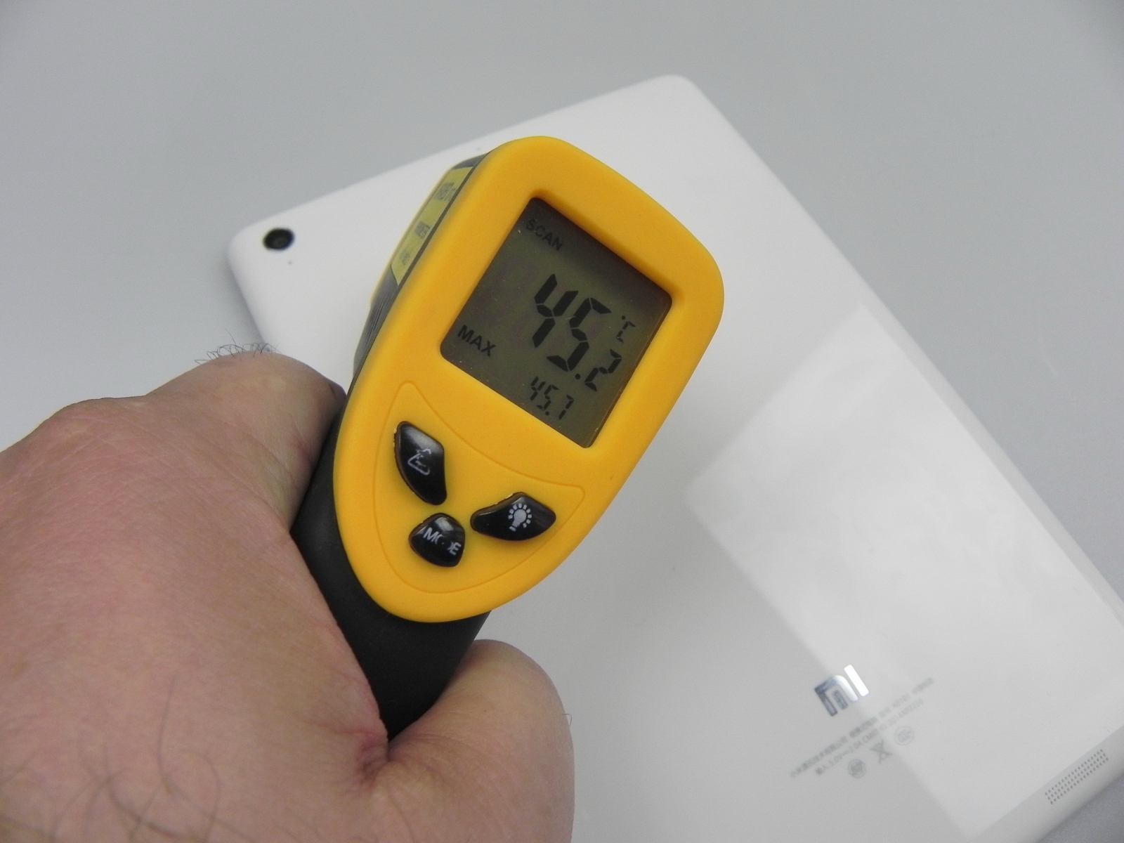 Tableta atinge o temperatură de 45.7 grade Celsius, deci tinde să se supraîncălzească puțin la jocurile solicitante. Browserul lui Mi Pad este rapid, iar tastatura virtuală este comodă, iar acum hai să vedem cum stăm cu benchmark-urile. Am comparat acest model cu iPad Mini Retina și al său CPU 64 bit, dar și cu un octa core celebru, de pe Samsung Galaxy Note Pro 12.2, Exynos 5 Octa.