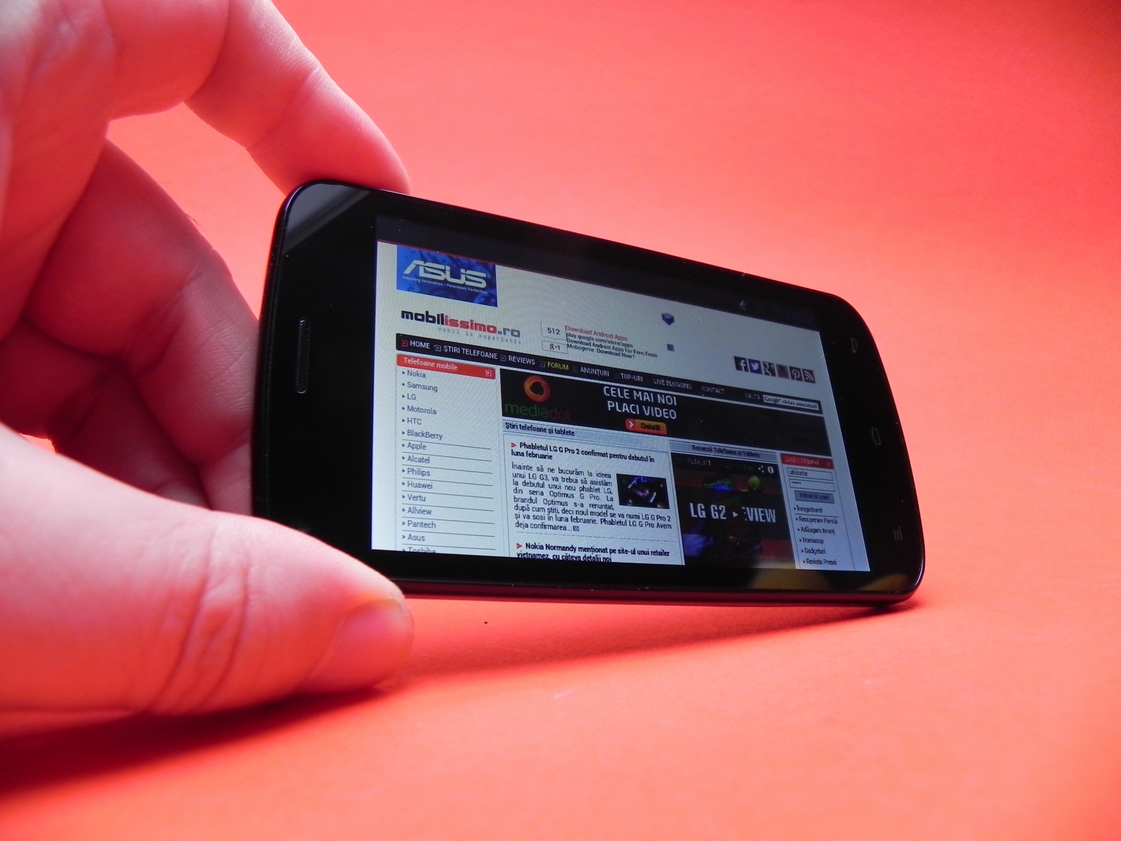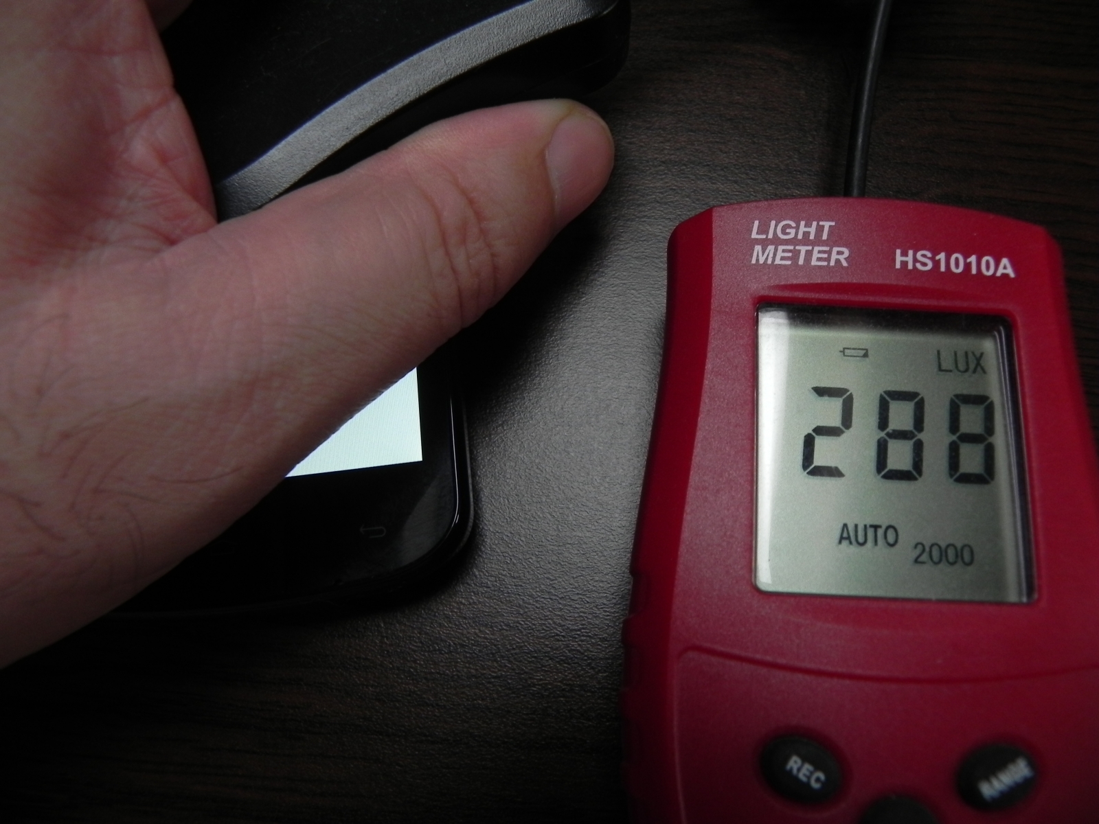 La testul de luminozitate am atins 288 de unități LUX pe alb, ceea ce e destul de OK, mai ales că e peste Samsung Galaxy S4 Mini de exemplu și peste Prestigio Multiphone 5400 Duo, care a fost subiect de comparație și mai devreme. Pe negru am atins 2 LUX, deci negrul nu este total adânc, dar cu siguranță mai bine decât cei 11 lux pe negru de pe Xperia Z1.