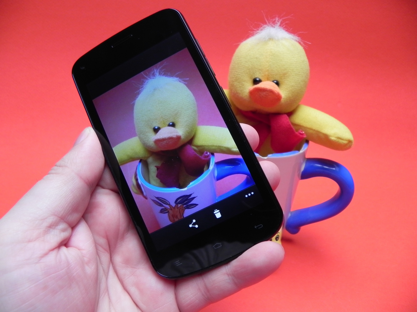 Pixelii sunt de tip RGB Stripe, iar acest display nu se comportă prea bine în bătaia soarelui, trebuie să spun asta. Per total acest ecran își face totuși treaba admirabil. Aspectul camera ne aduce un senzor de 5 MP, cu autofocus, senzor OV5648, blitz LED și un UI destul de învechit. Printre opțiuni regăsim Panorama, Eraser, Best Face, Face Beauty, Best Shot, EV Bracket, care realizează o serie de fotografii cu expuneri diferite și Capture Action. Aceasta din urmă va permite să faceți pozele apăsând pe ecran, prin gesturi sau la detectarea unui zâmbet.