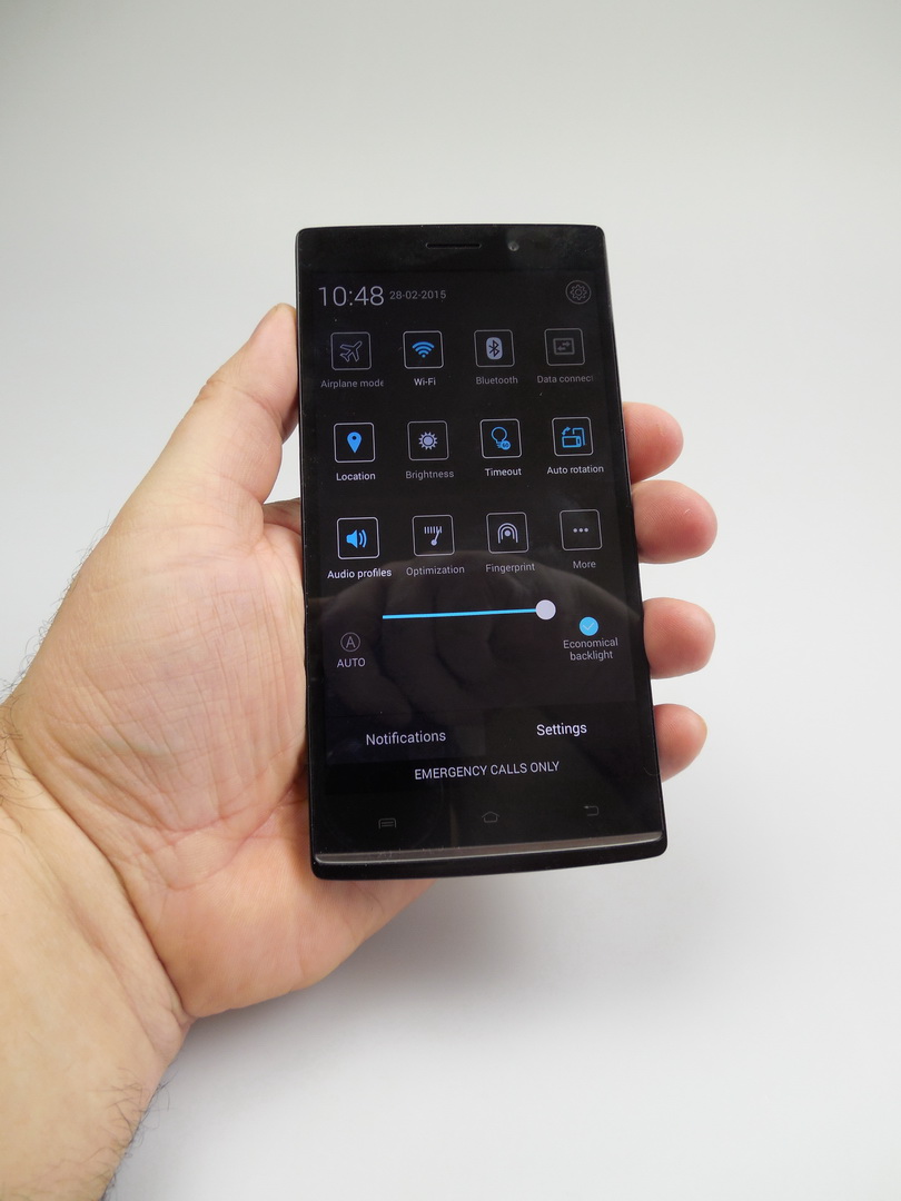 În zona de Setări avem parte de optimizare a acusticii pentru căşti, care adăugă puţin mai mult bas. La testul cu decibelmetrul am atins 82.5 dBA în spate şi 77.8 dBA în faţă, fiind cam la acelaşi nivel cu Huawei Honor 6 şi clar sub OnePlus One, care atinge 90 dBA. Per total acustica este de calitate, în ciuda distorsiunii la volum maxim a difuzorului.