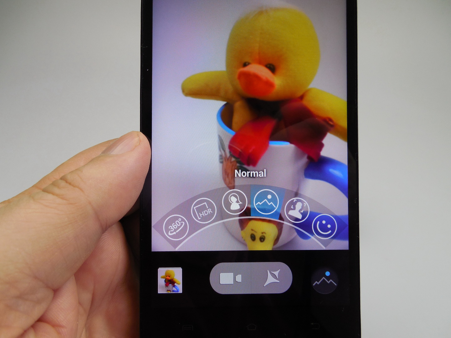 Camera este o unitate de 8 MP, cu senzor Sony IMX219, care datează din 2012 şi măsoară 1/4 inc. Interfaţa nu prea ne-a impresionat, având iconuri mari şi culori neinspirate. În stânga se află shortcut către camera frontală şi opţiunile bliţului, în vreme ce în dreapta avem modurile de captură, în formă de semicerc: smile shot, selfie, normal, beauty face, HDR şi panoramă la 360 de grade.