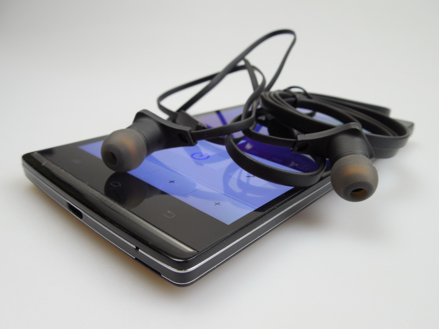 Căştile au o mufă de mari dimensiuni, dar şi un design premium şi atractiv, cu o textură cauciucată a porţiunii care intră în ureche. Firul este plat şi nu se încurcă, iar căştile sunt comode, dar nu au volum foarte ridicat. Basul este OK, sunetul clar şi izolarea bună. Avem parte şi de radio FM via o aplicaţie custom, ce include şi opţiuni ca înregistrare, RDS şi difuzor.