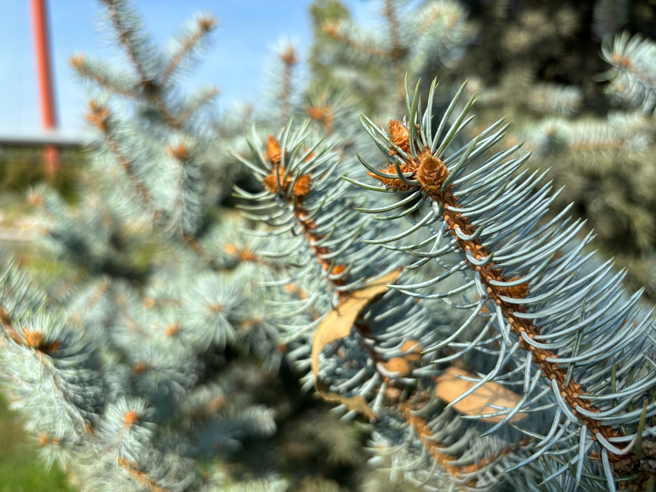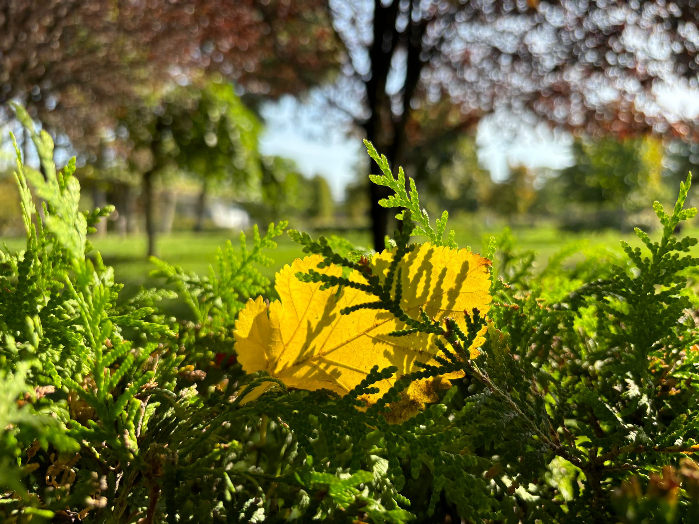 Un capitol la care camera lui iPhone 15 se descurcă și mai bine este fotografierea closeup, unde rezultatele vorbesc de la sine. Avem pânze de paianjen fotografiate de aproape care arată într-un mare fel, mai că aproape de un macro dacă ar fi să lăudăm extra telefonul. A ieșit spectaculoasă și fotografia cu bradul din parc, unde fiecare frunză-ac este în focus, iar fundalul cufundat într-un blur absolut. Îmi place mult și fotografia cu gardul verde și frunza galbenă care colorează cadrul.