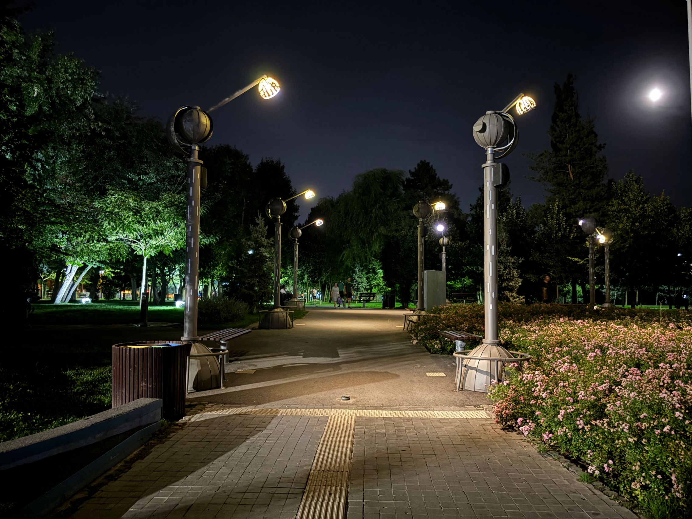 De departe cel mai impresionat sau mai bine zis încântat, sunt de faptul că halourile corpurilor de iluminat sunt reduse la limită, fiind foarte subtile și creând un scenariu plăcut vizual. Am surprins și luna într-o fotografie dacă ești curios ce poate camera lui iPhone 15.
