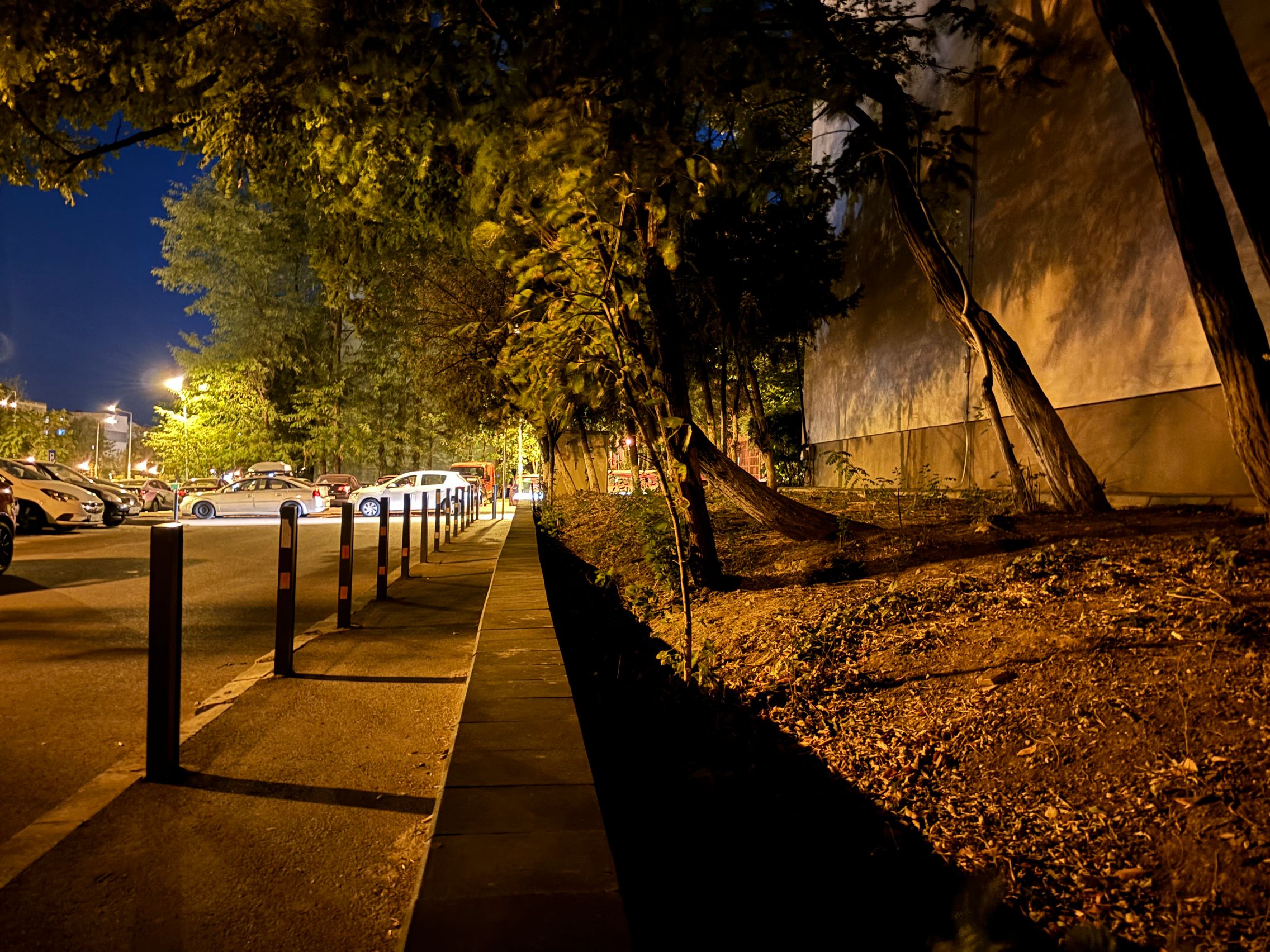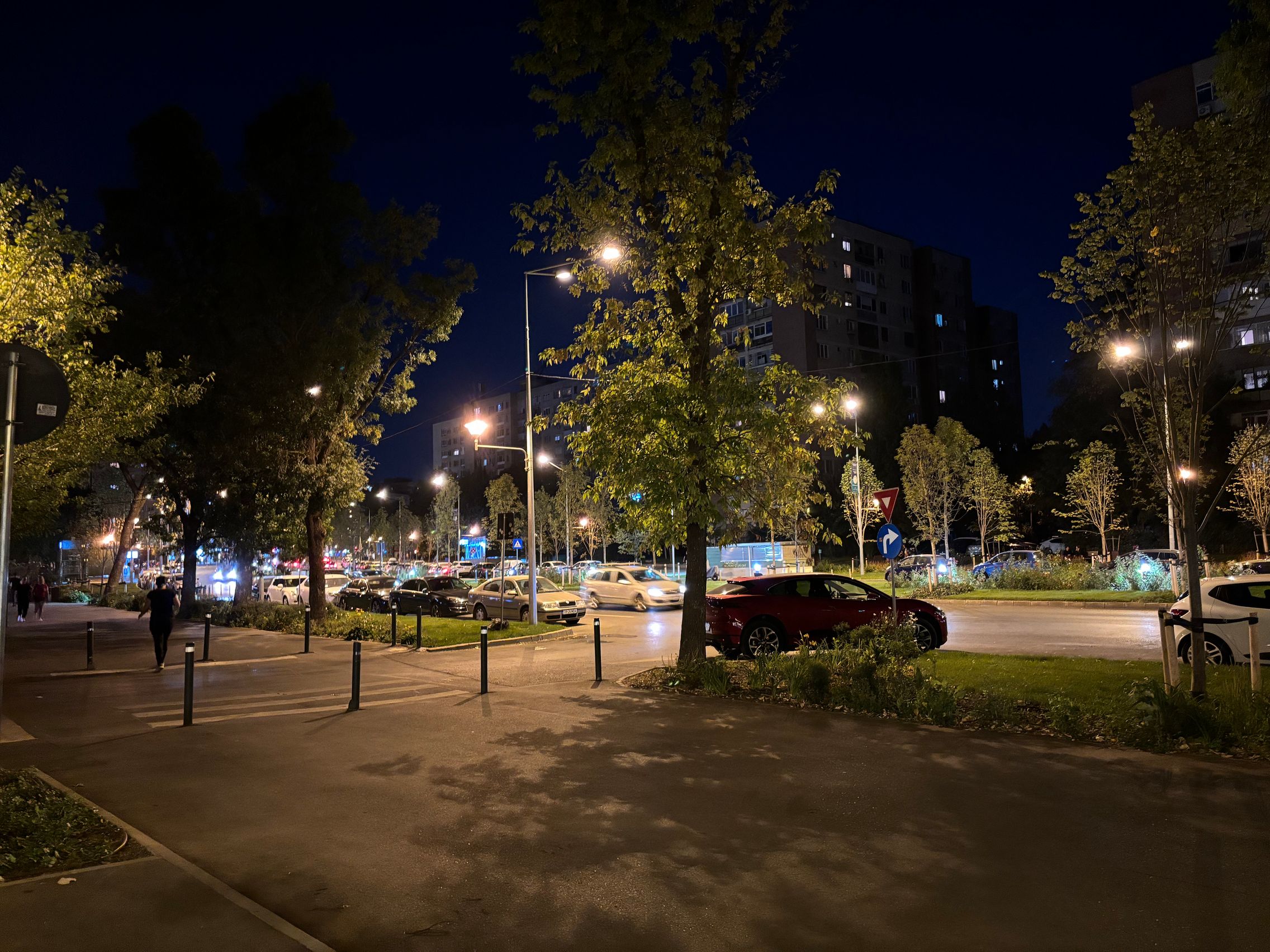 Pentru final am lăsat capturile foto realizate pe timp de noapte, unde Night Mode-ul intră în acțiune atunci când simte că ai un cadru suficient de întunecat. Am realizat fotografii și pe înserate, unde sunt foarte mulțumit de culori, detalii, chiar și la zoom în unele scenarii, singurul neajuns fiind mai degrabă cu imaginile ultra-wide, dar nici acolo situația nu este atât de rea.