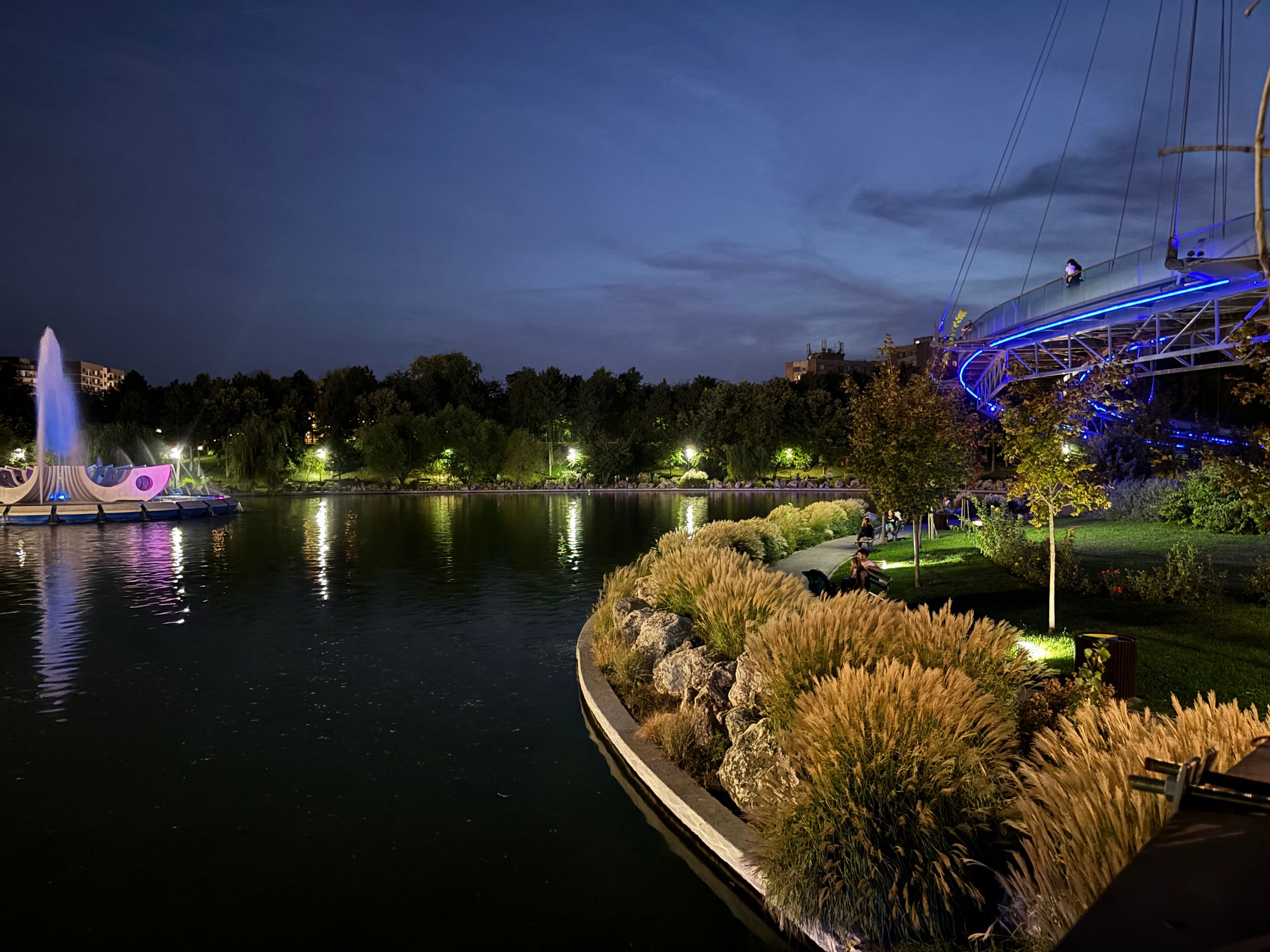 Am realizat fotografii și cu zoom, iar undeva pe la 2, 3 sau chiar și 4x rezultatele nu arată deloc rău și le poți folosi fără nici o problemă. Cele mai notabile exemple mi se par cele cu zoom asupra fântânii din parcul Drumul Taberei unde picăturile de apă au fost capturate cinematic aș spune. Odată ce treci peste pragul mai sus menționat încep să se piardă din detalii, apare și zgomotul. Am prins și câteva rațe bălăcindu-se în lac.