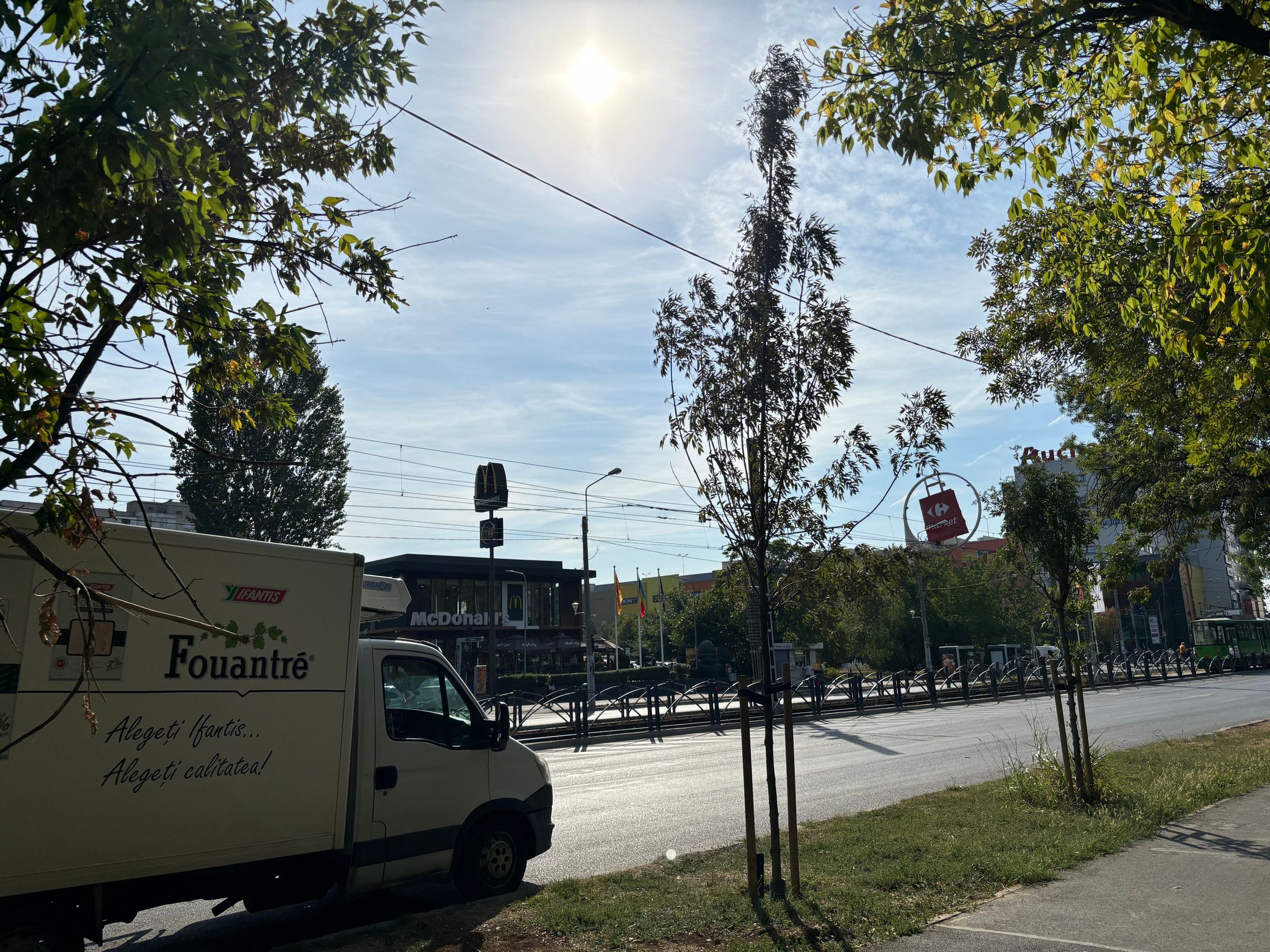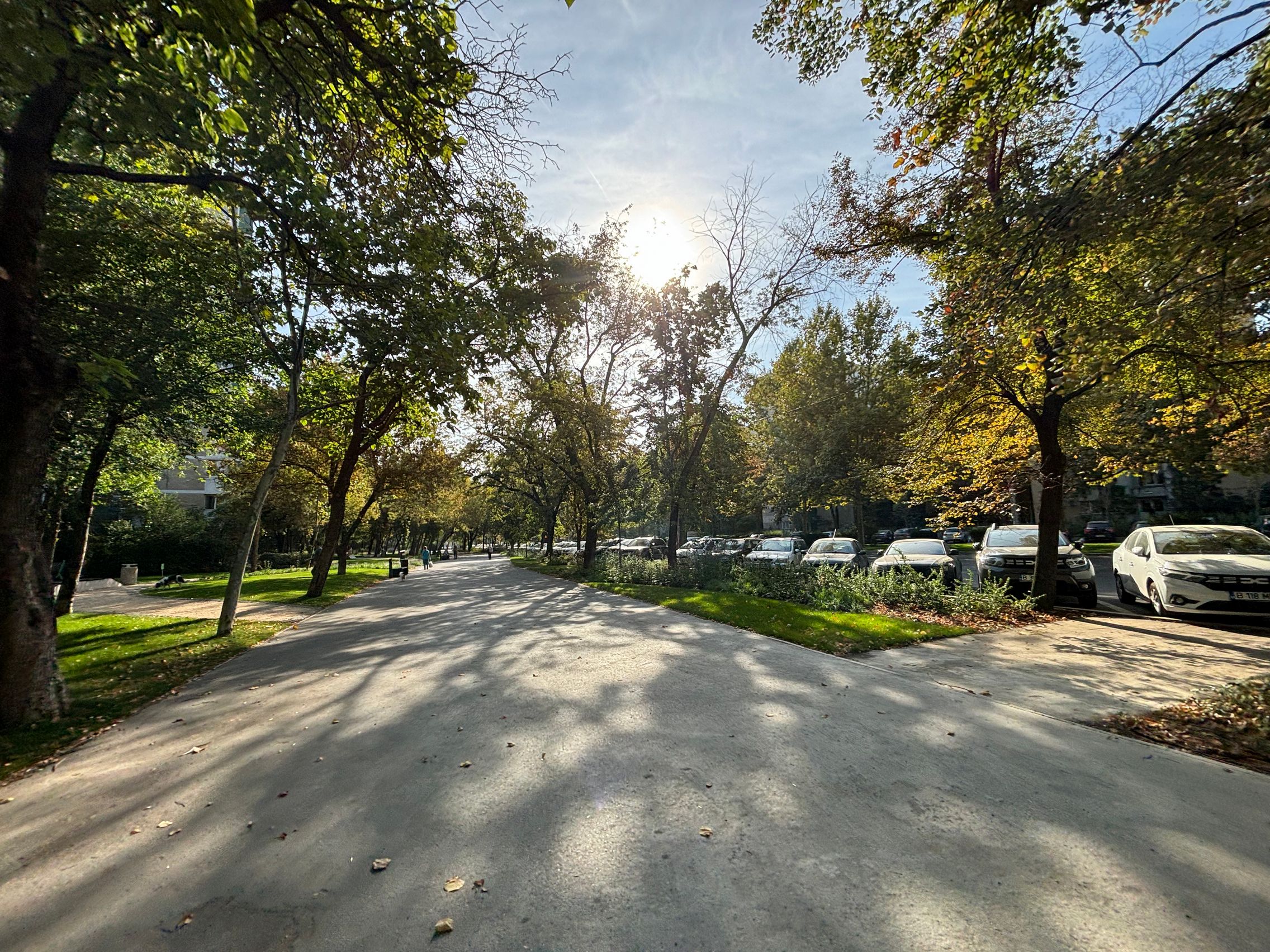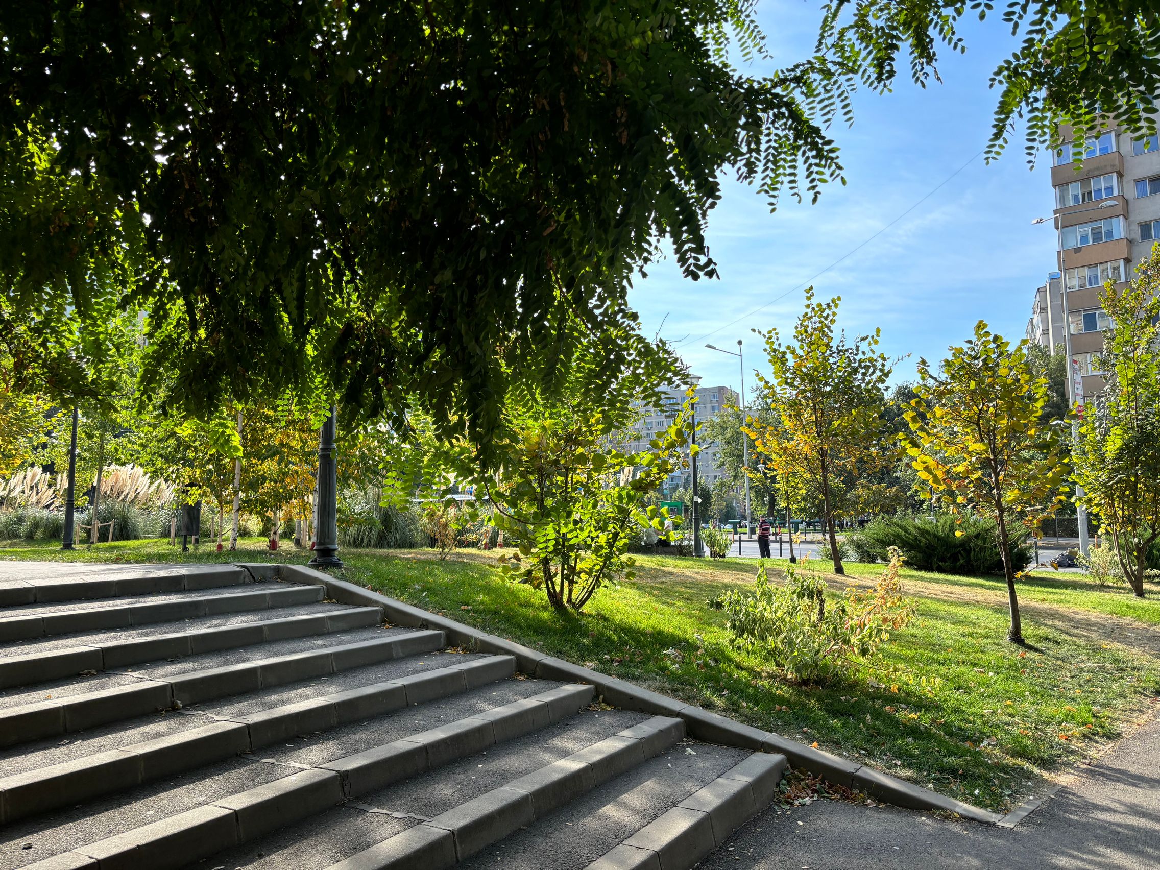 Aruncăm o privire și asupra culorilor surprinse de camera lui iPhone 15, nuanțe naturale și pe alocuri ceva supraexpunere pe zonele cu iarbă un soarele arzător de toamnă ne poate păcăli că este de fapt primăvară, când nu este cazul. Sunt multe fotografii colorate ca exemplu, inclusiv suprafețe din sticlă colorată unde poți vedea modul în care au fost surprinse, sau literele din Drumul Taberei plus semne de circulație de un roșu excelent. Din punctul meu de vedere, rezultatele sunt ideale pentru postat online, fără nevoia de editare.
