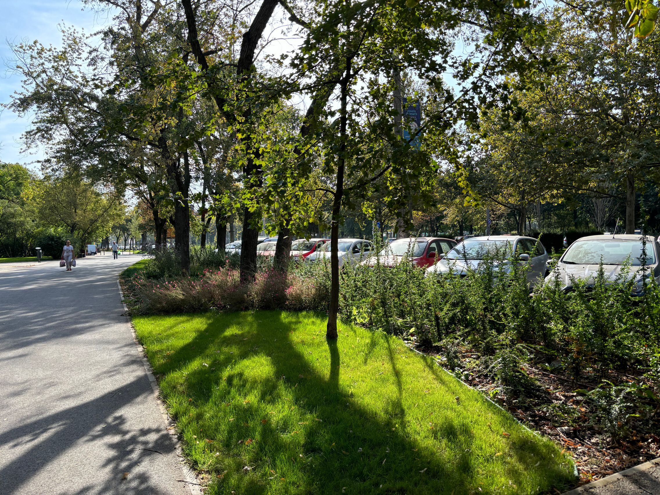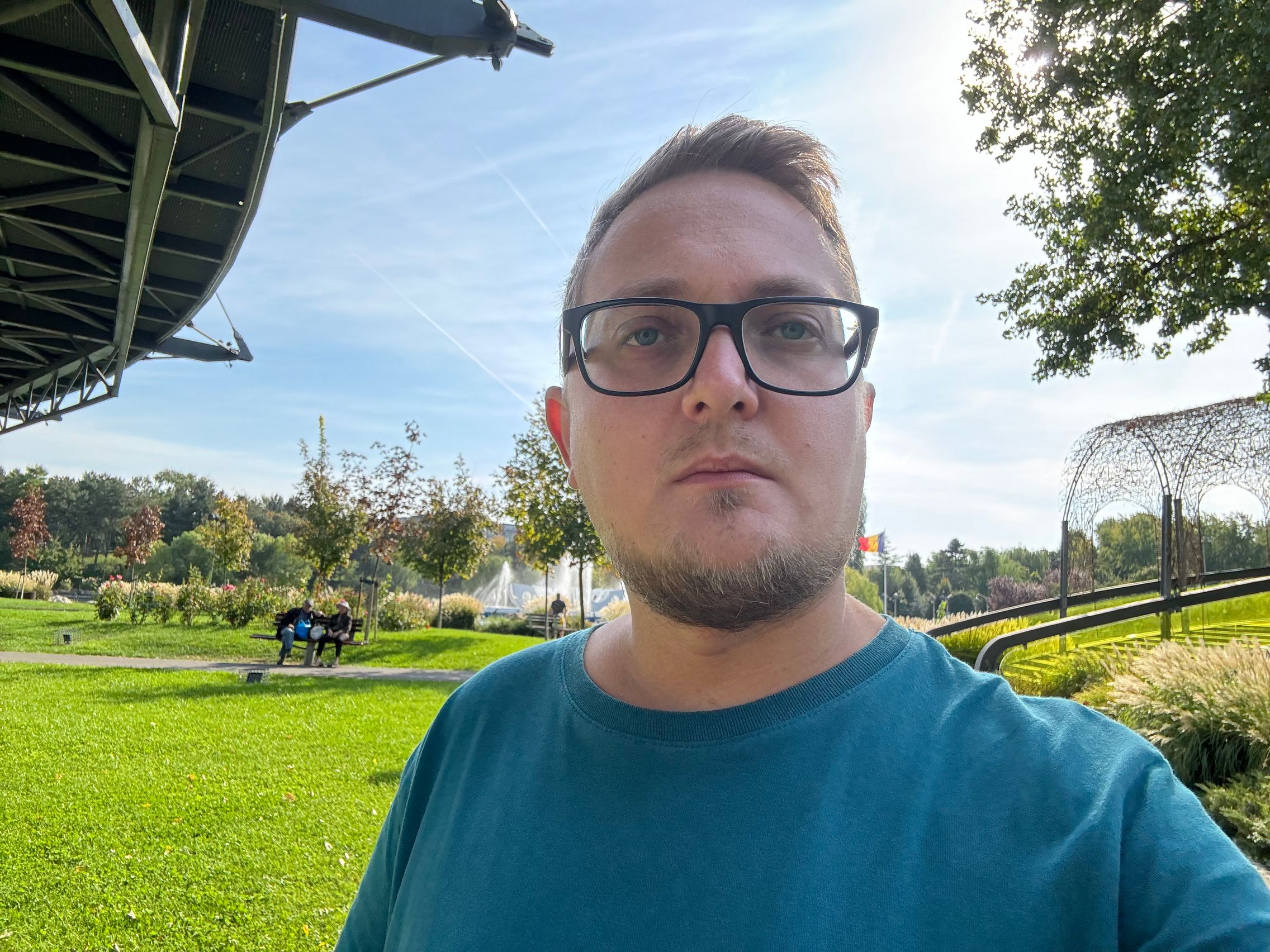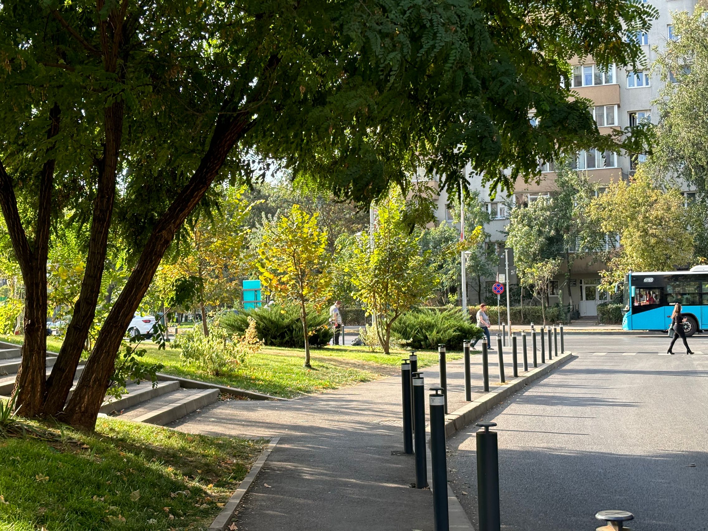 Aruncăm o privire și asupra culorilor surprinse de camera lui iPhone 15, nuanțe naturale și pe alocuri ceva supraexpunere pe zonele cu iarbă un soarele arzător de toamnă ne poate păcăli că este de fapt primăvară, când nu este cazul. Sunt multe fotografii colorate ca exemplu, inclusiv suprafețe din sticlă colorată unde poți vedea modul în care au fost surprinse, sau literele din Drumul Taberei plus semne de circulație de un roșu excelent. Din punctul meu de vedere, rezultatele sunt ideale pentru postat online, fără nevoia de editare.