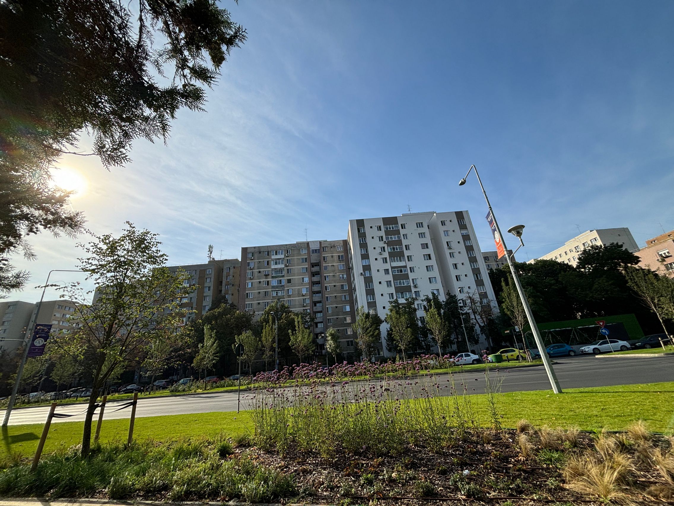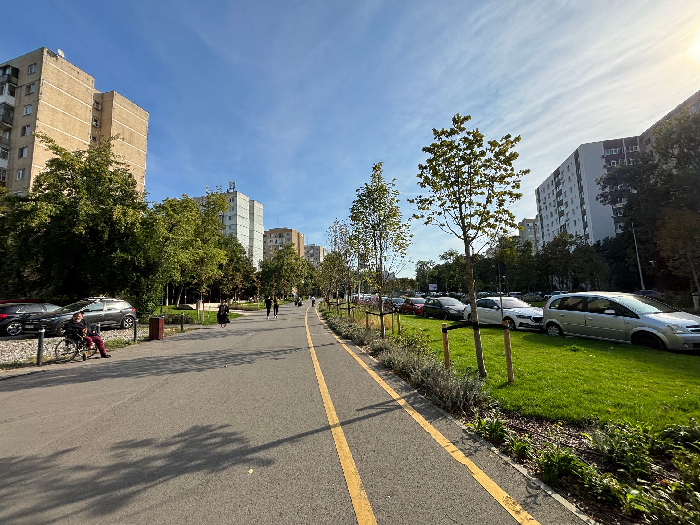 Cu acest setup putem filma 4K@24/25/30/60fps, 1080p@25/30/60/120/240fps, HDR, Dolby Vision HDR (până la 60fps), Cinematic mode (4K@30fps) și cu sunet stereo. Pentru selfie-uri avem cameră de 12 mpx cu autofocus. Acestea fiind spuse aș zice să ne uităm asupra fotografiilor realizate într-o zi însorită prin București, unde privim asupra cadrelor wide, ultra-wide, ne uităm și la culori, zoom și apoi ne lămurim cum stau lucrurile și pe timp de noapte.