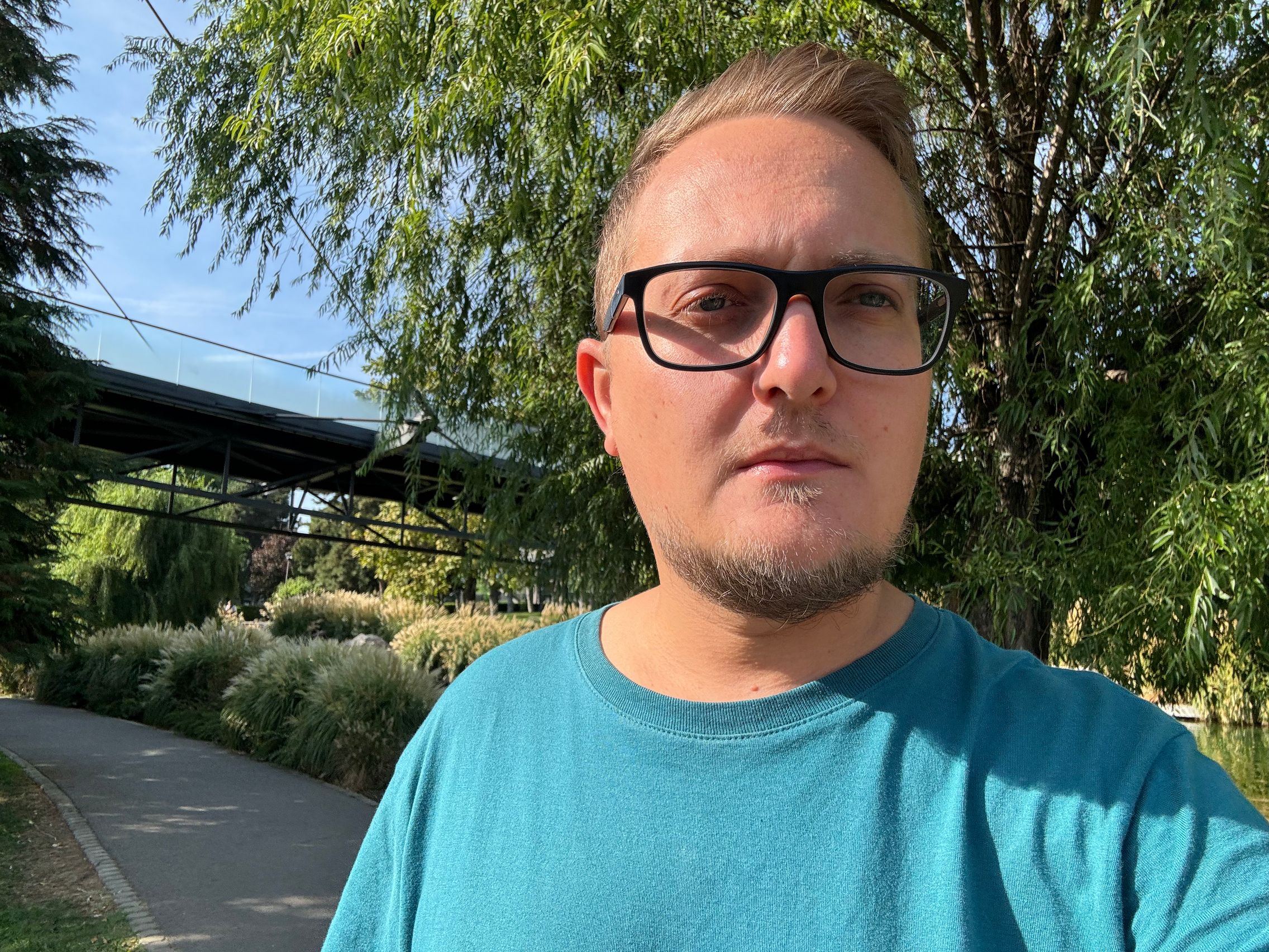 Am ajuns și la video, acolo unde am împărțit clipurile în două, cele realizate pe timp de zi și cele de noapte. Începem cu cele de zi și vedem teste selfie excelente, cu blur aplicat la nivel de mirrorless în spate și observăm tonuri naturale, textura tenului și părul facial, plus ochi expresivi.