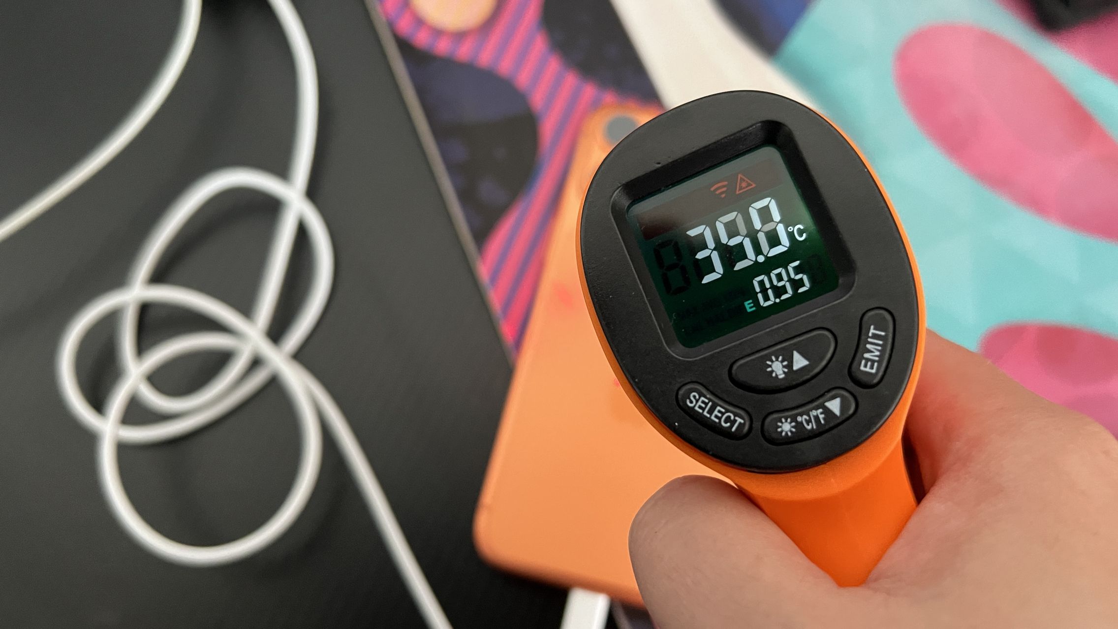 Telefonul nu se încinge deloc la jocuri, cu 36.8 grade Celsius şi nici măcar la benchmarks, cu 36.1 grade măsurate de noi.
