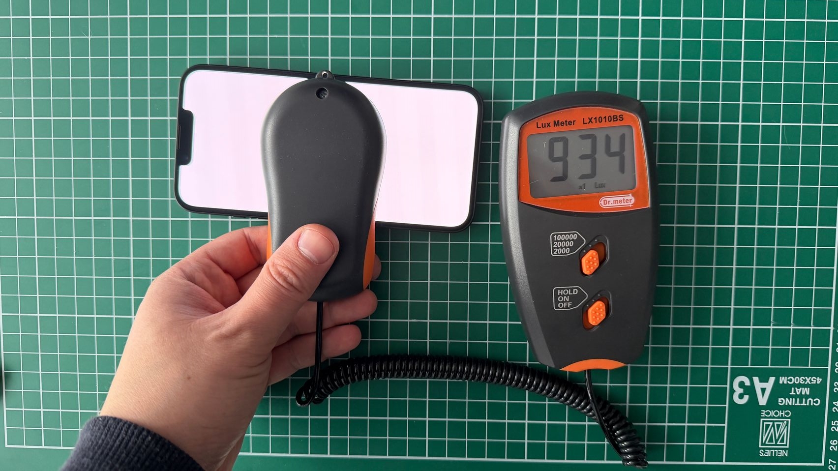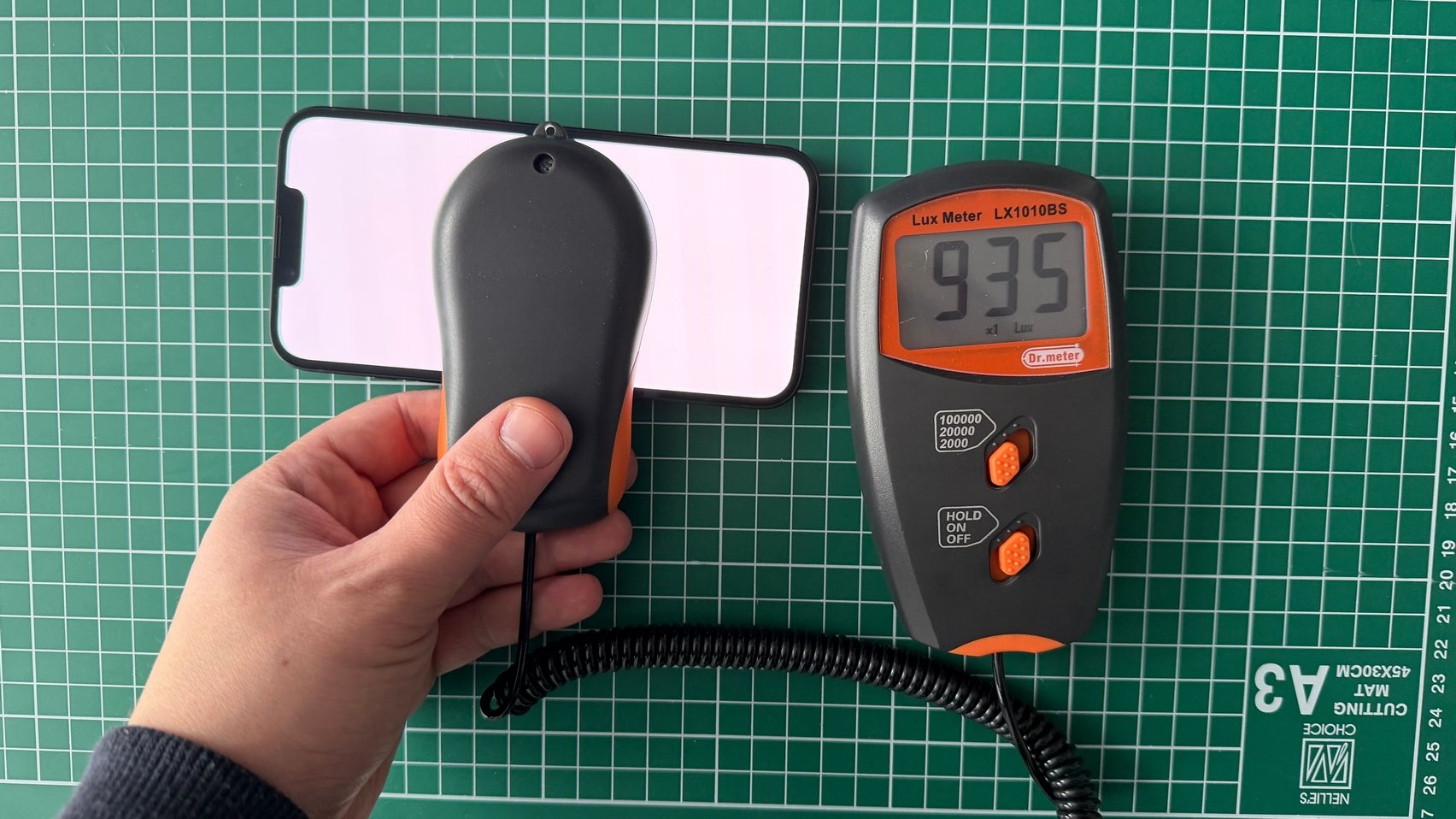 Acum să vedem și rezultatele de pe hârtie. Cu luxmetrul din redacție am măsurat 935 LUX și l-am simțit mai luminos decât predecesorul, inclusiv afară într-o dimineață însorită atunci când am ieșit la mostrele foto. Și baza noastră de date confirmă upgrade-ul de luminozitate, cu un iPhone 16e care se oprea la 845 LUX. Este un boost binevenit.