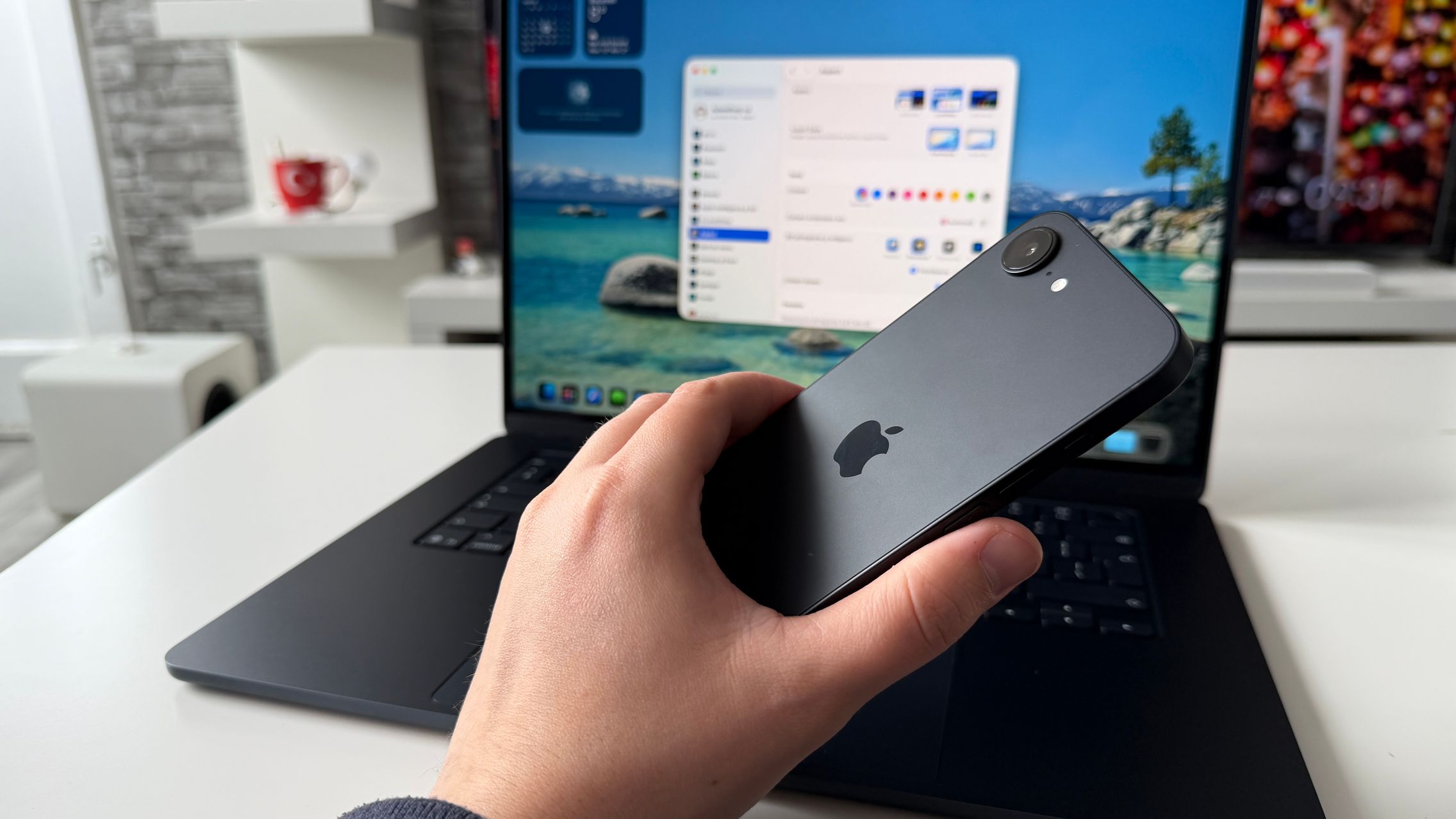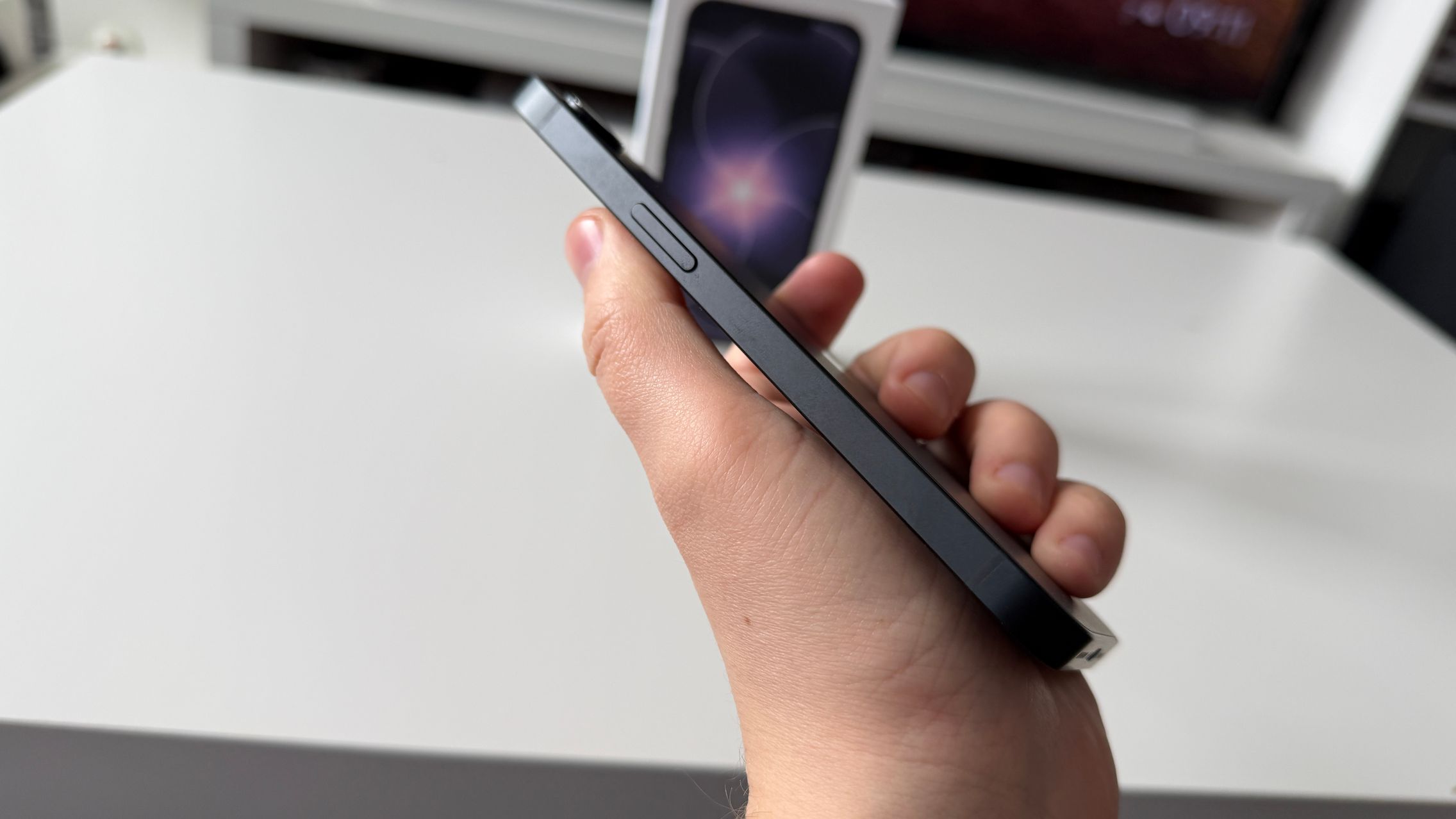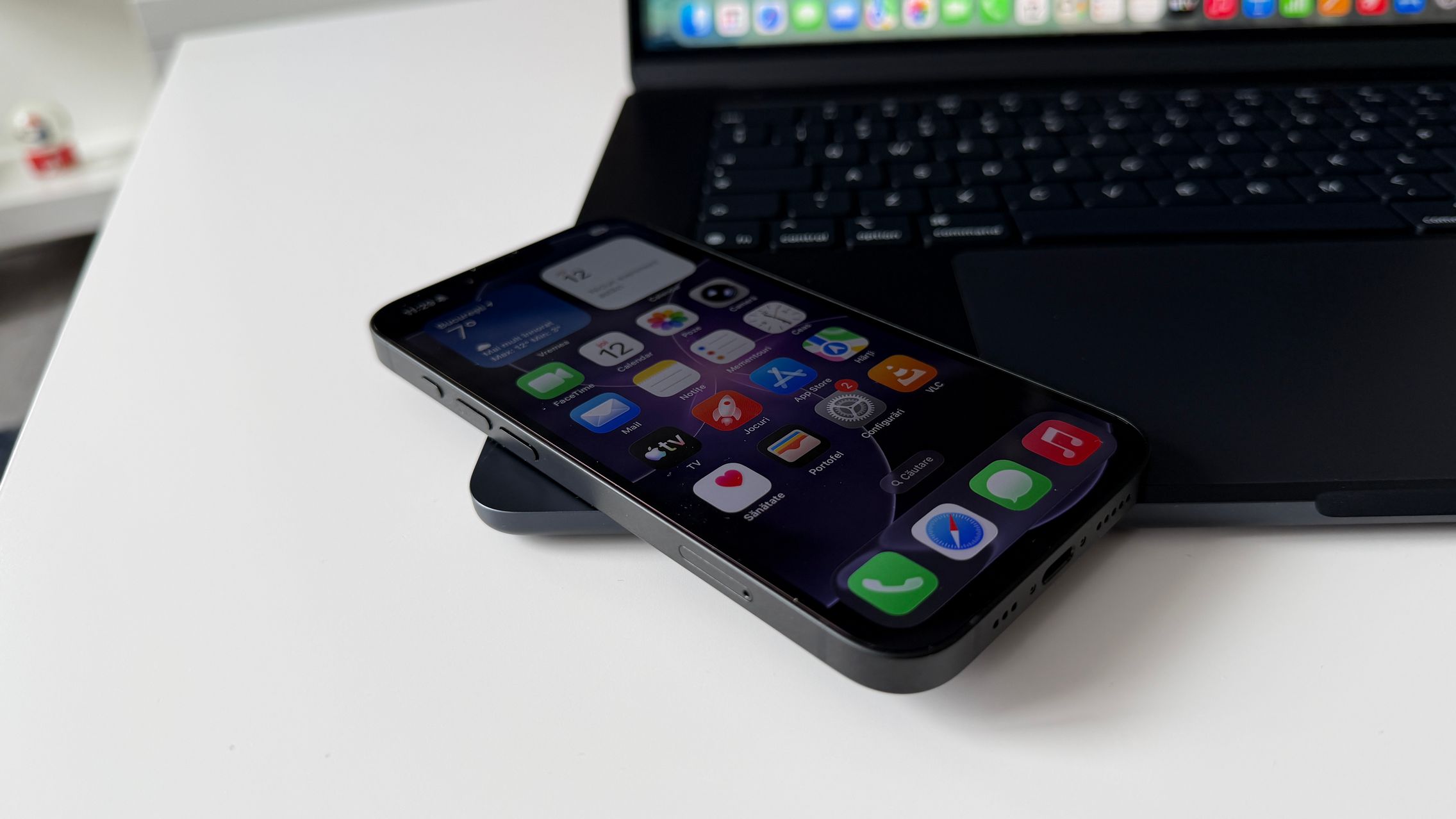 Mă refer în special la culori. Dacă predecesorul venea doar pe alb și negru, acum Apple aduce o nuanță primăvăratică în ecuație, un roz pal pe care din păcate nu l-am primit. A venit tot pe negru la mine, doar că are o nuanță mai diferită față de predecesor, ceva ce am remarcat la comparația cu 16e față în față. Ba e mai adânc, ba mai albăstrui, în funcție de cum pică lumina.