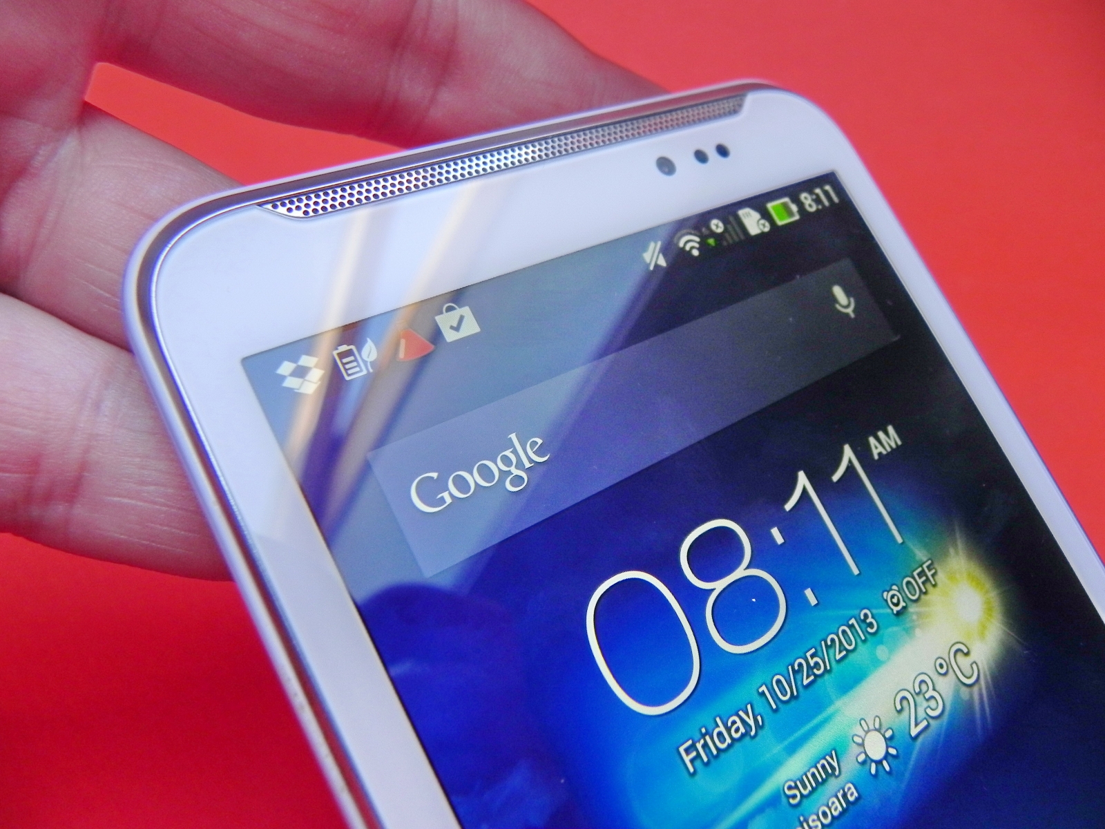 Designul este de tip unibody, deci nu putem înlătura bateria, iar per total aceasta carcasă glossy și groasă nu prea ne atrage, mai ales că terminalul e gigantic. în privința hardware-ului, avem la dispoziție un procesor Intel Atom Z2580 Clover Trail Plus, un dual core de 2 GHz, iar ca GPU ni se pune la dispoziție un PowerVR SGX 544 MP2 de 533 MHz.