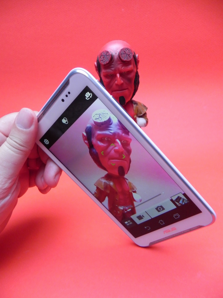 Avem la dispoziție și setări speciale pentru ecran, precum un Reading Mod special, care adaptează culorile la experiența de citire și o aplicație ASUS Splendid care reglează culoarea temperaturii, saturarea și nuanțele. Trăgând linie, putem spune că display-ul este unul de calitate și nu avem obiecții. Camera de 8 megapixeli din spate vine cu BSI, lentila F/2.0, autofocus, iar acest senzor provine de la Sony. Camera e capabilă de captură în rafală la 6 FPS, iar interfața e cea nouă de la ASUS, inaugurata pe ASUS Transformer Pad TF701T.