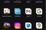 Aplicațiile sunt afișate pe ecran, dar există și un meniu dedicat. Cele mai multe titluri prezente sunt cele Google (Chrome, Calendar, Drive, Gmail, Google, Maps, Meet, Messages, Photos, PlayStore, YouTube, YT Music. Printre cele default avem Gallery, Contacts, Calculator, Camera, Clock, File Manager, Phone, Phone Clone, Recorder, Safety, Settings, Themes, Tips și Weather.