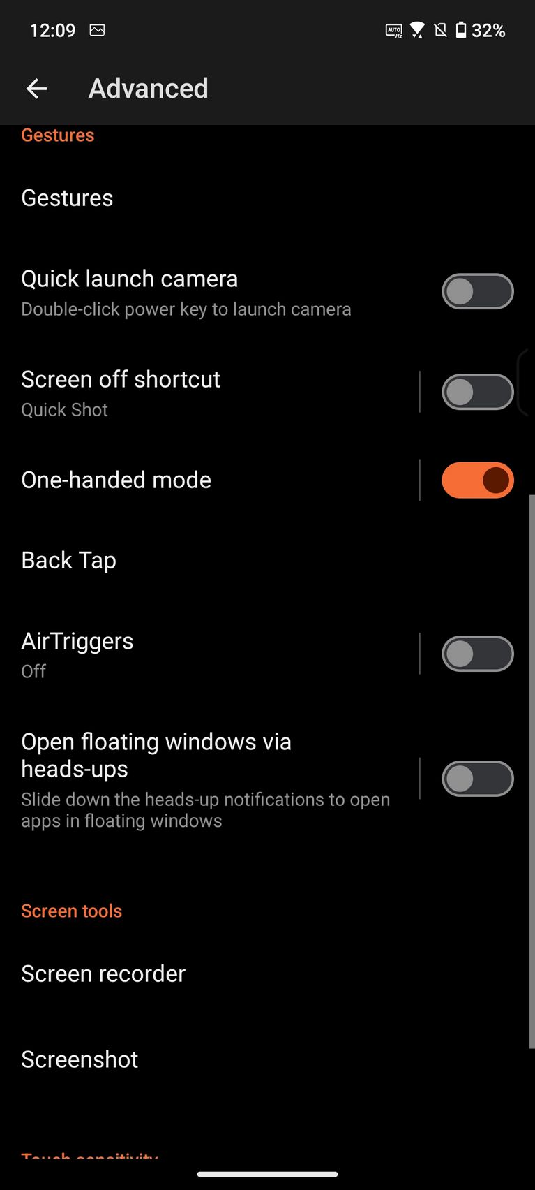 Mai jos găsești modurile accesoriului AeroActive CoolerX (Smart, Cool, Frosty sau Frozen), Game Genie și setările pentru butoanele AirTriggers. Revenind la setări o să mai găsești și gesturi, moduri de lansare rapidă pentru camera foto, mod one-handed și multe alte opțiuni de accesibilitate.
