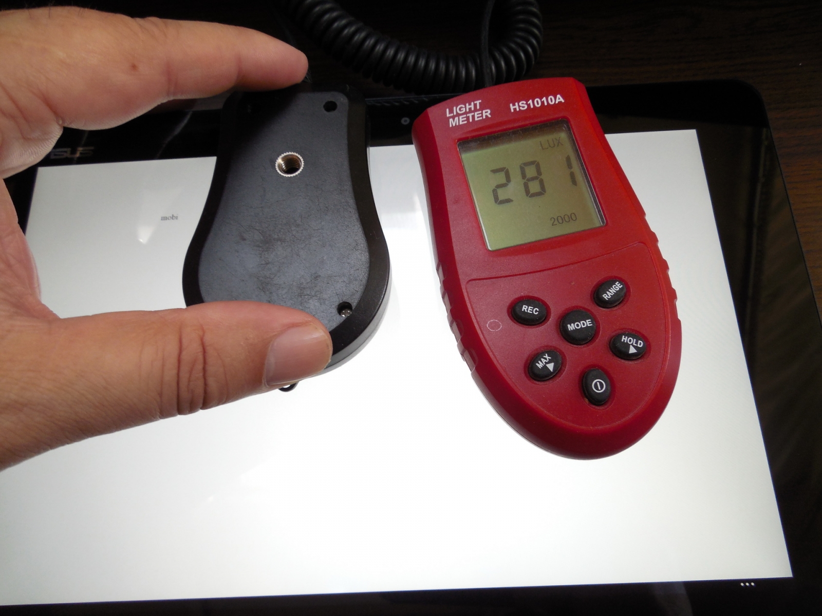La testul cu luxmetrul am atins 281 LUX, depăşind predecesorul T100 TA, care atingea 187 LUX. iPad Air 2 atinge 354 LUX, Galaxy Tab A 432 LUX, deci luminozitatea putea fi puţin mai ridicată. Există aici şi aplicaţia ASUS Splendid, cu opţiunile Normal, Eye Care şi Vivid, în funcţie de preferinţele utilizatorului (Eye Care e mai puţin alb intens şi Vivid are culori mai vii ). Există şi opţiunea MAnual, cu un slider pentru culoare (mai rece sau mai cald).