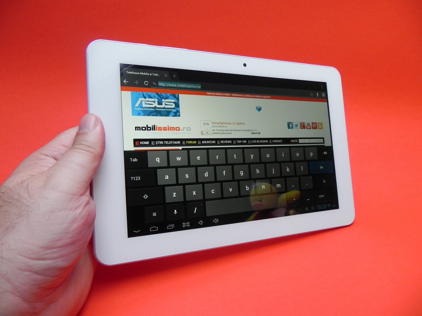 Din păcate bateria se încarcă destul de greu, în 4 ore. Tastatura Bluetooth integrează o baterie de 180 mAh, care ar trebui să asigure câteva ore bune de funcționare în tandem cu tableta. în ce privește experiența multimedia, am descoperit că tableta nu are un volum prea ridicat și că sunetul sau se aude ușor înfundat, iar basul este slab.