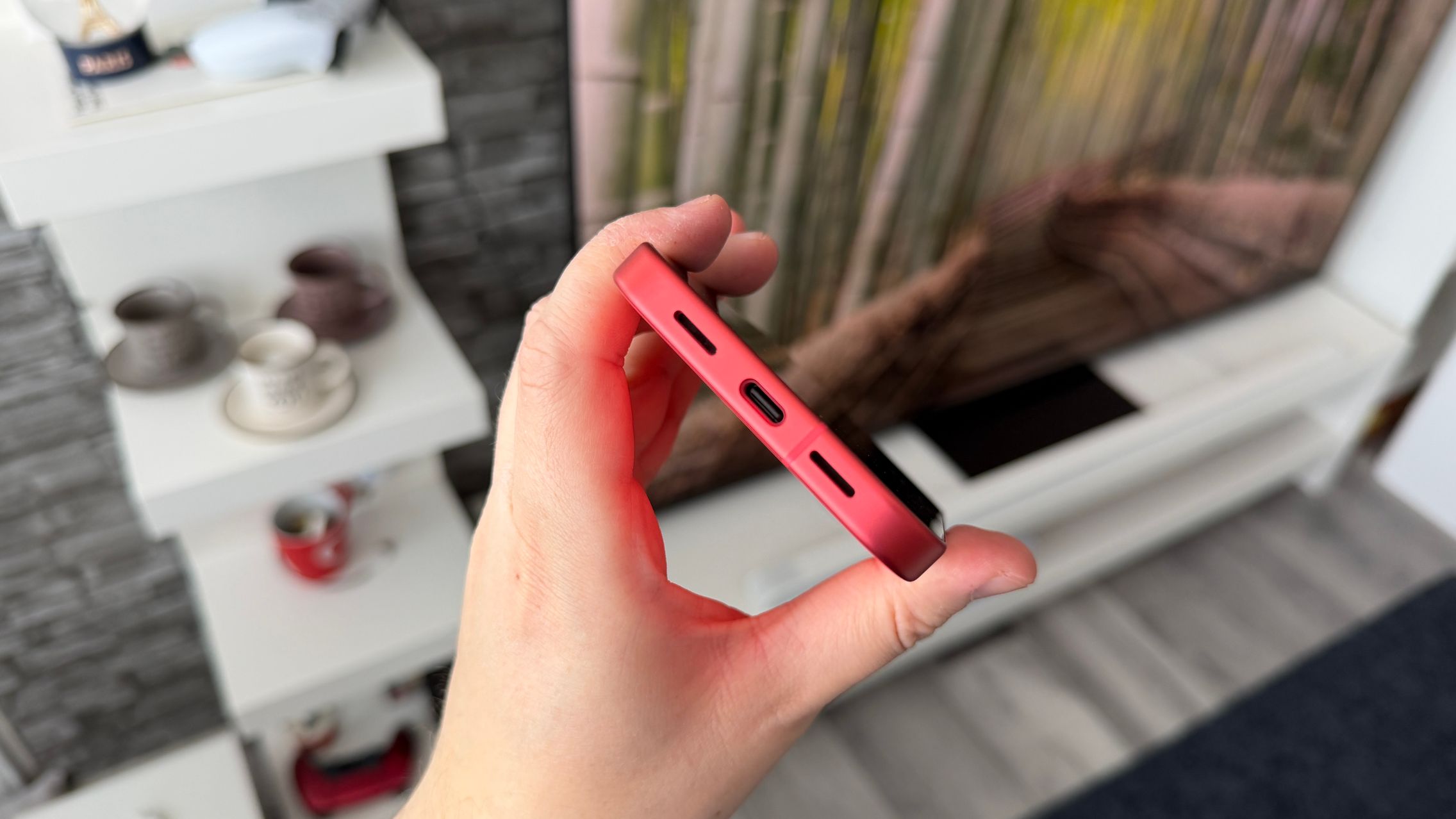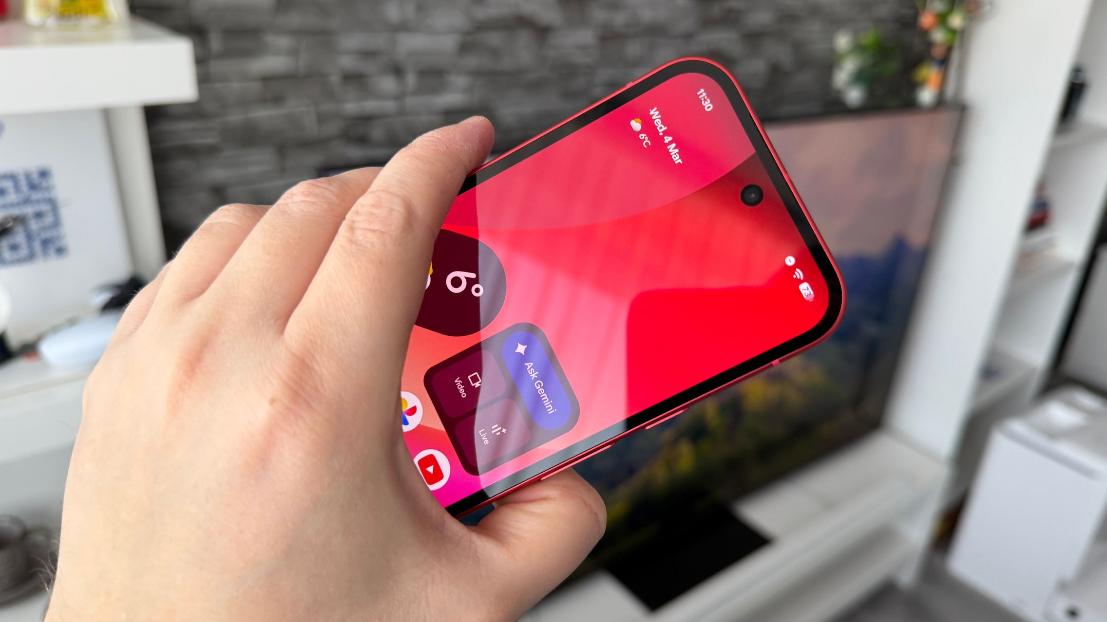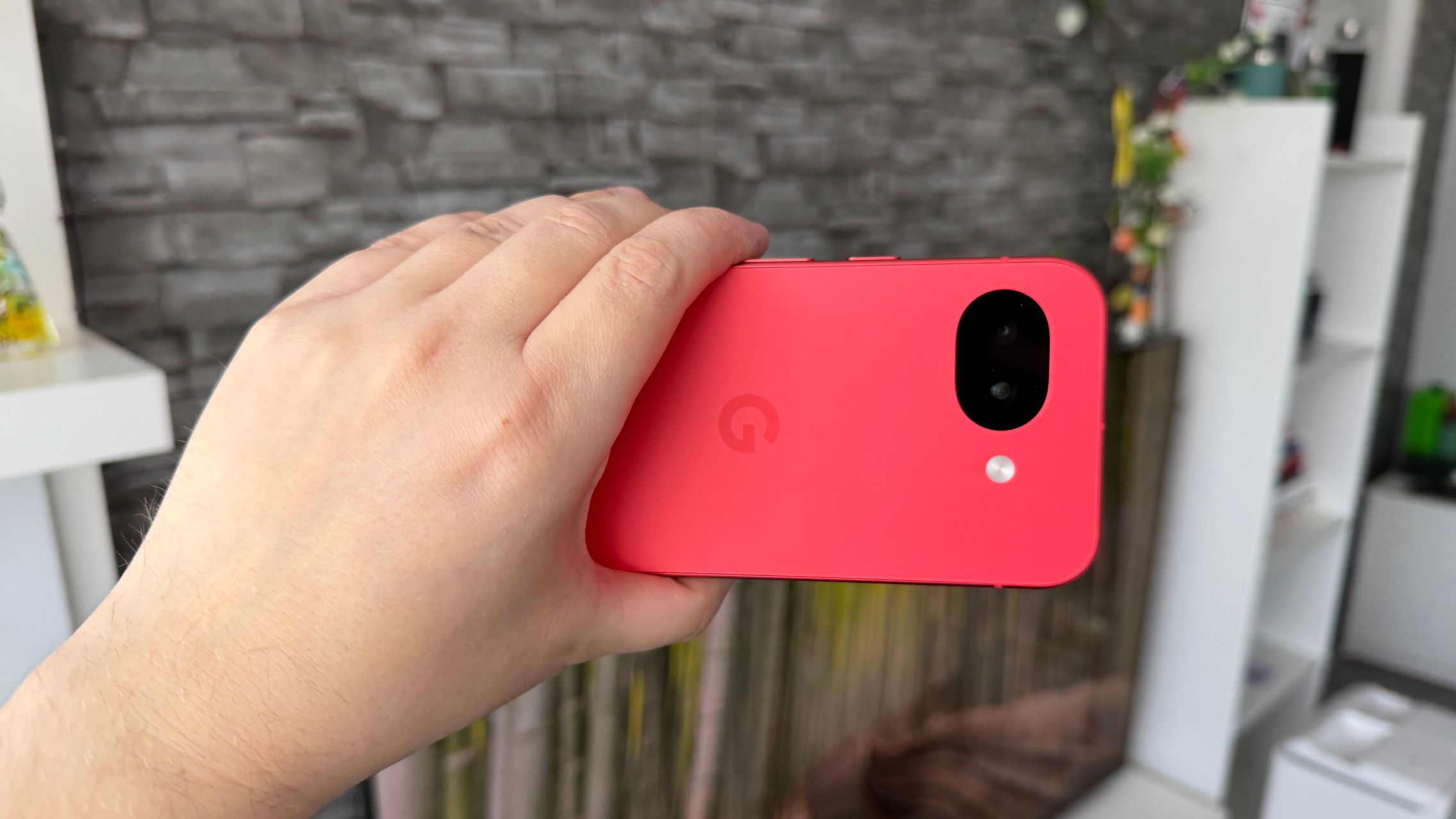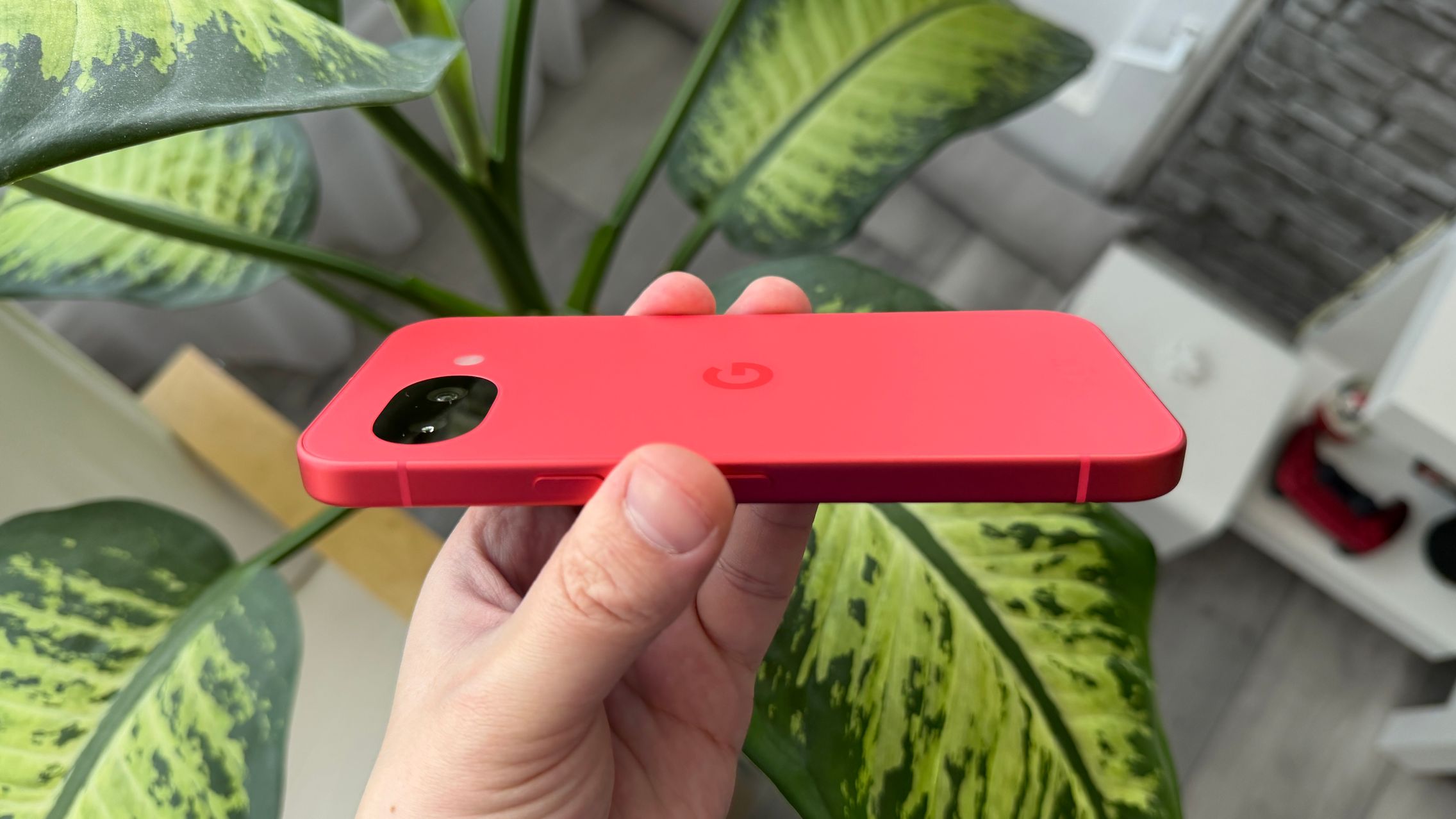 Ca și nuanțe telefonul are cu ce se lăuda și acum Google pulsează cu o nuanță Berry (roșu căpșună) mai vibrantă decât rozul predecesorului. Am cerut fix această culoare la teste și este cu siguranță ceva special. Atrage priviri, e roz, roșie sau portocalie în funcție de lumină și arată neașteptat de bine. E o nuanță pastel plăcută ochiului și îmi place să văd că producătorii îndrăznesc, după un iPhone 17 Pro portocaliu.