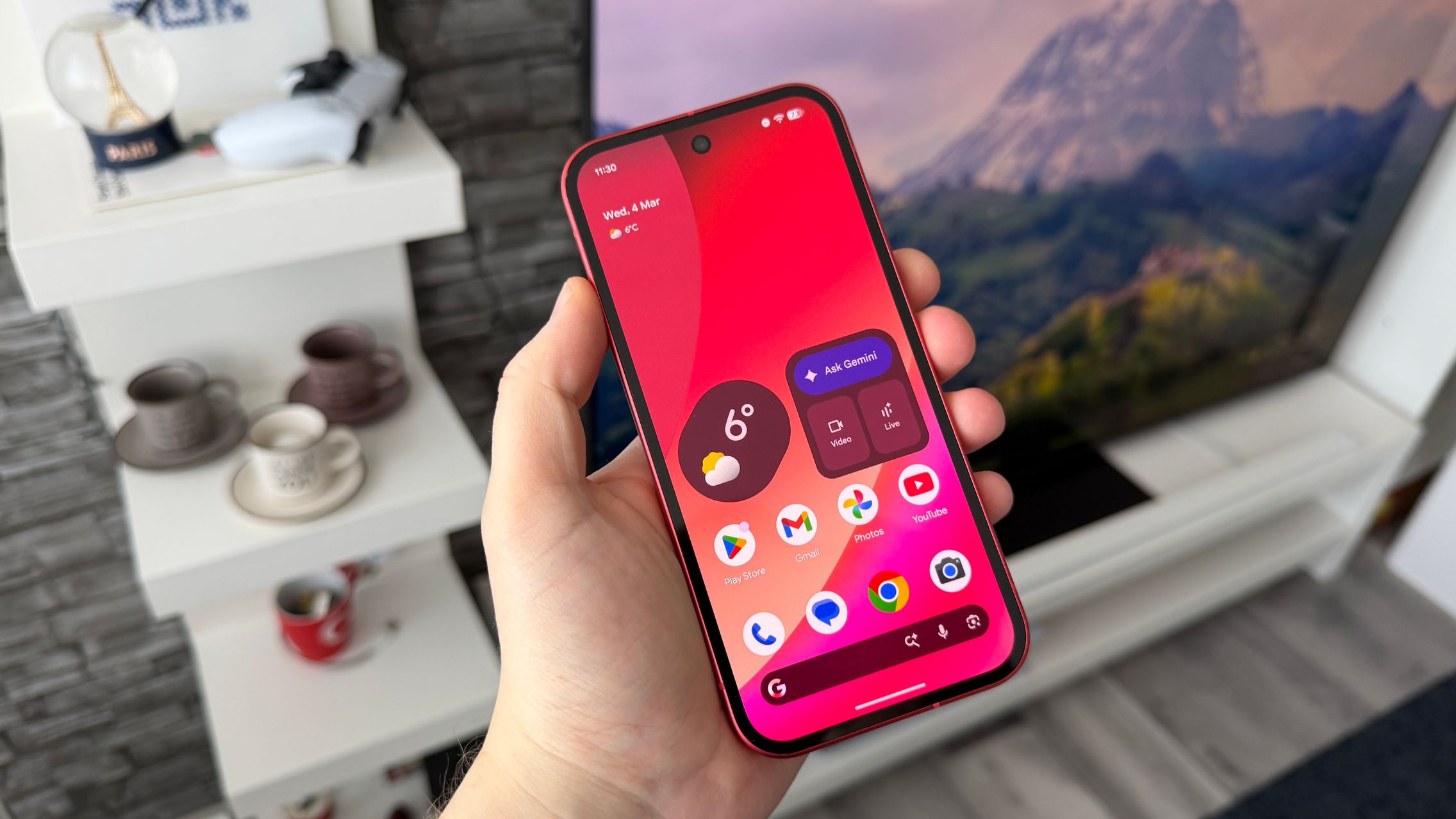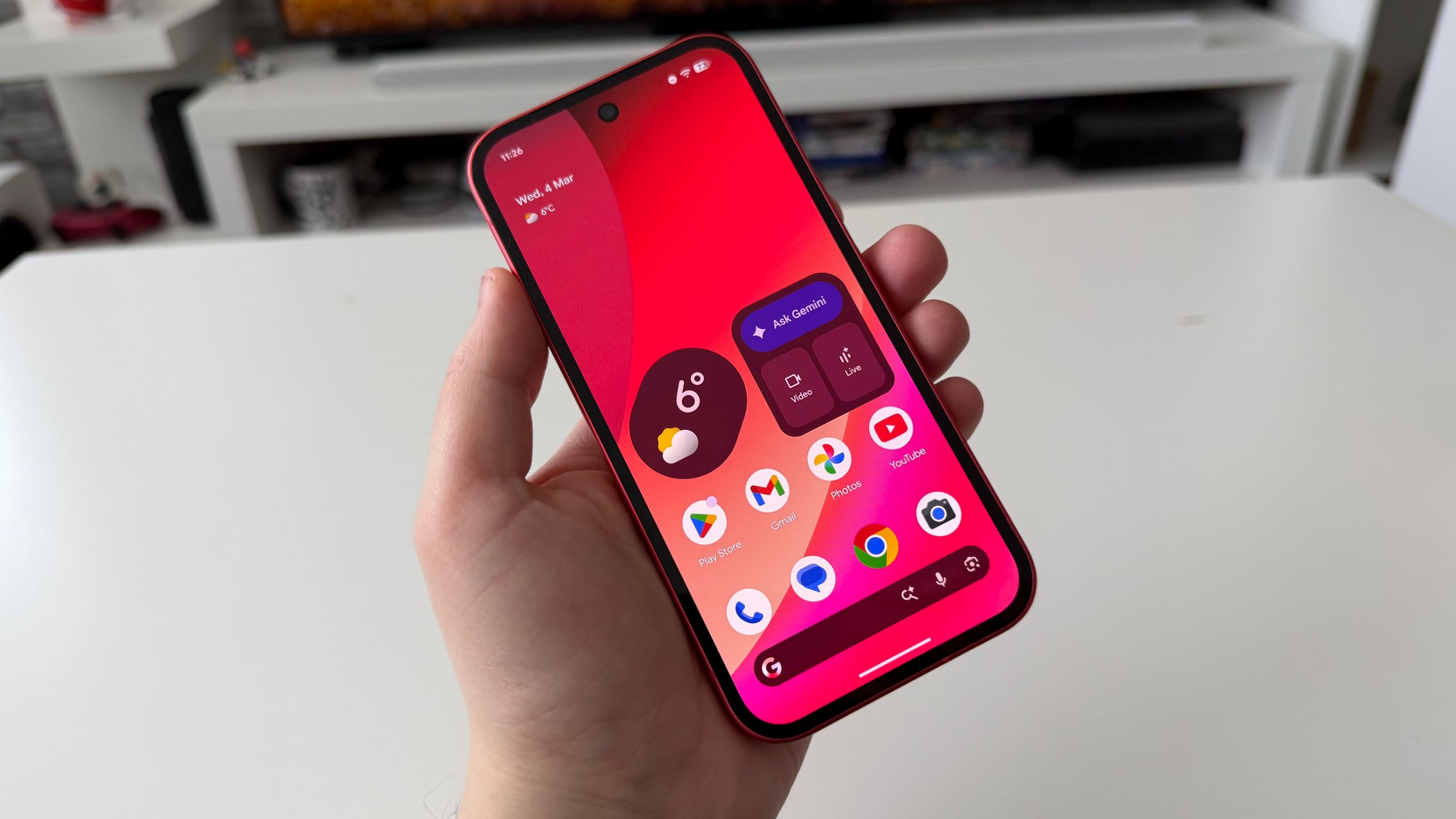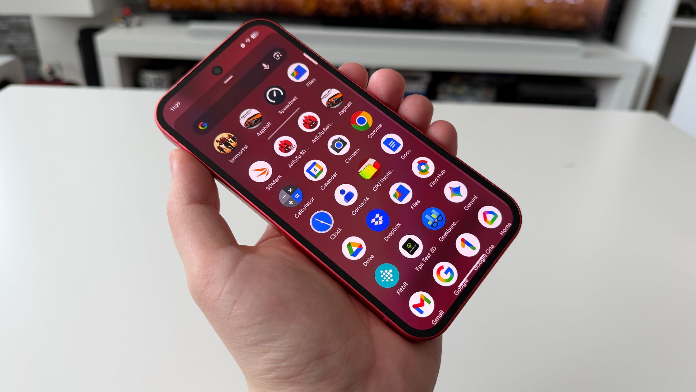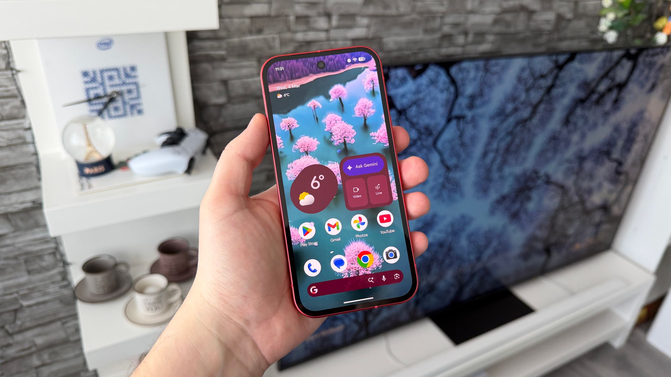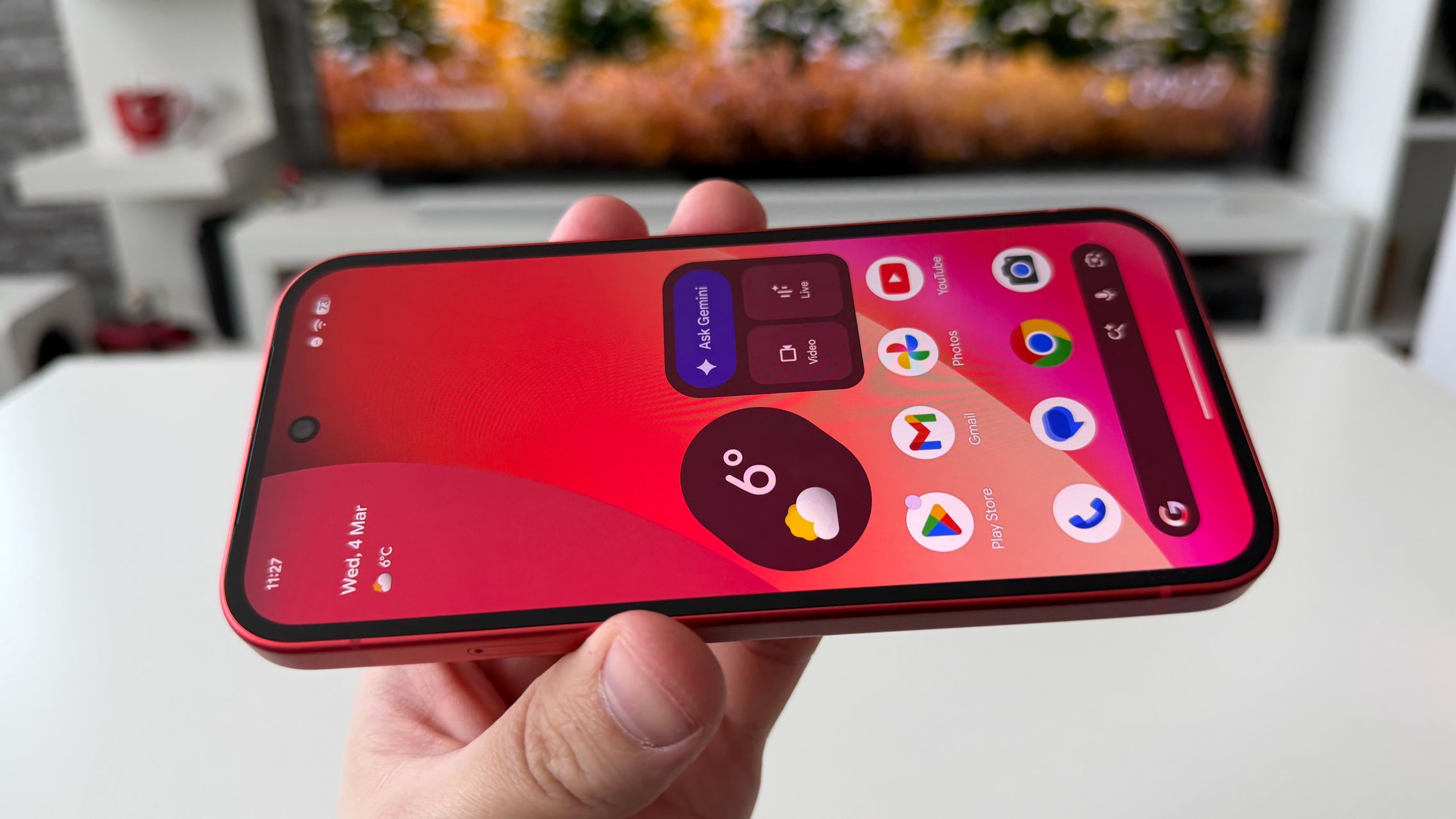Ca și nuanțe telefonul are cu ce se lăuda și acum Google pulsează cu o nuanță Berry (roșu căpșună) mai vibrantă decât rozul predecesorului. Am cerut fix această culoare la teste și este cu siguranță ceva special. Atrage priviri, e roz, roșie sau portocalie în funcție de lumină și arată neașteptat de bine. E o nuanță pastel plăcută ochiului și îmi place să văd că producătorii îndrăznesc, după un iPhone 17 Pro portocaliu.