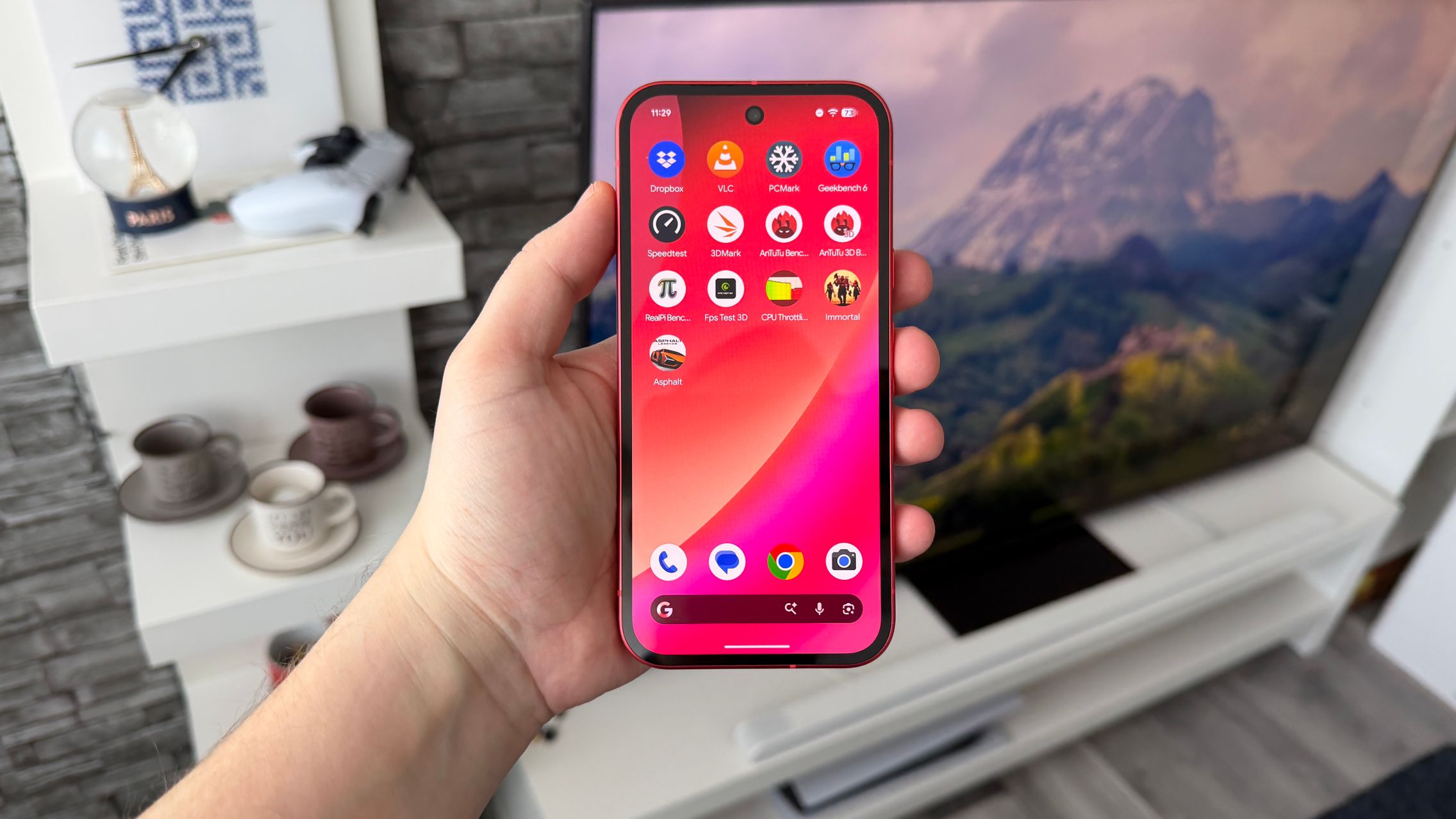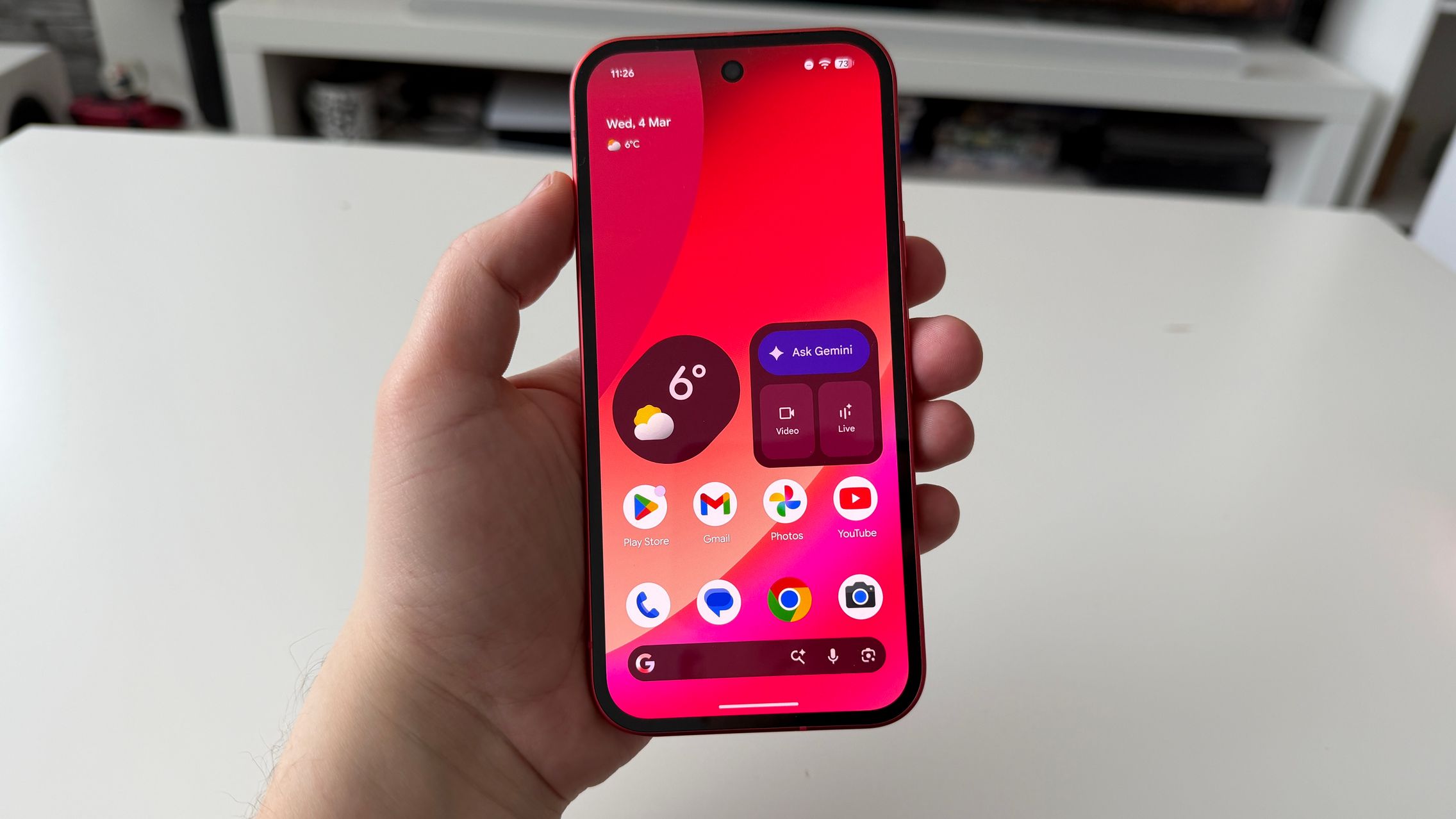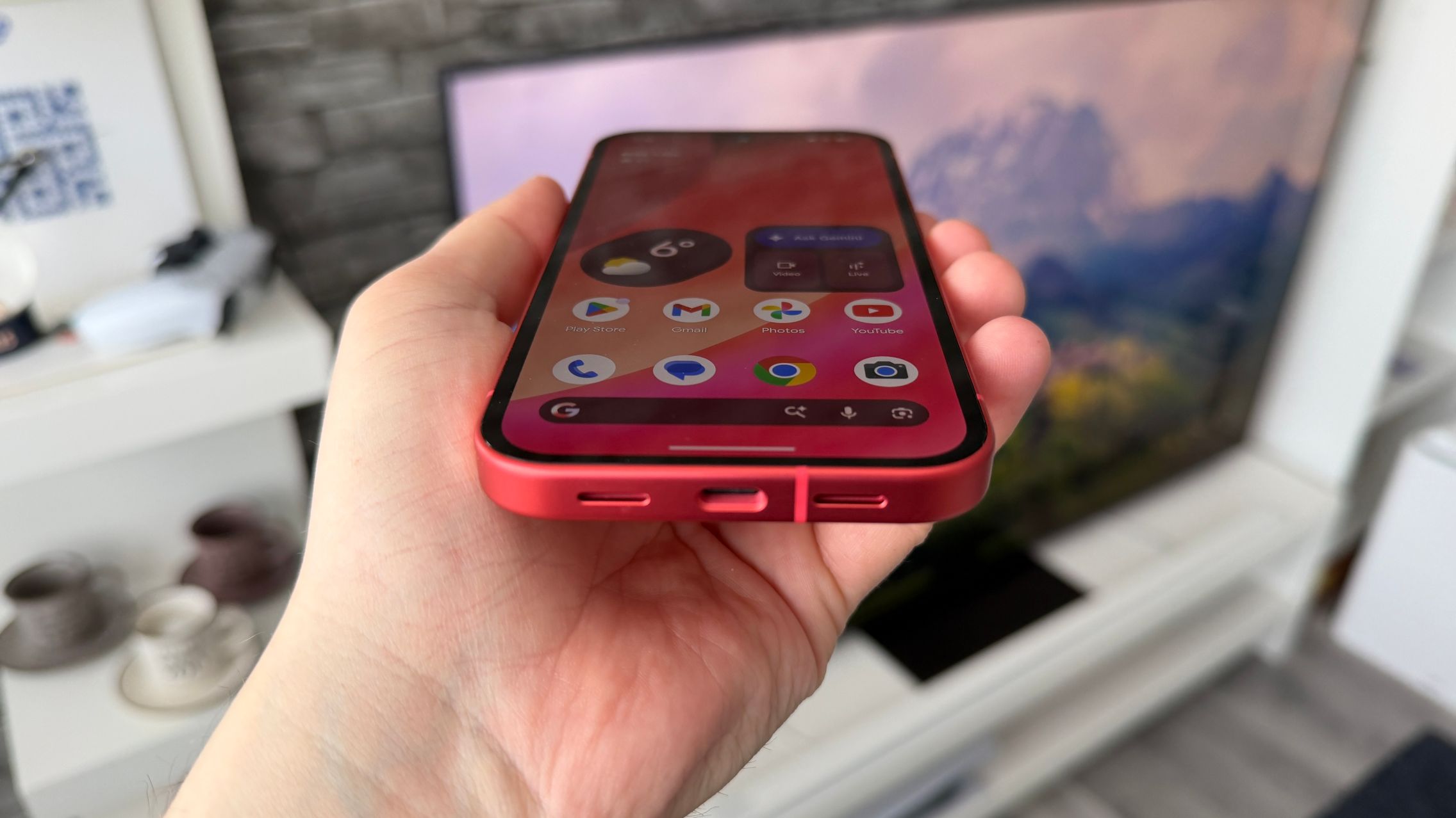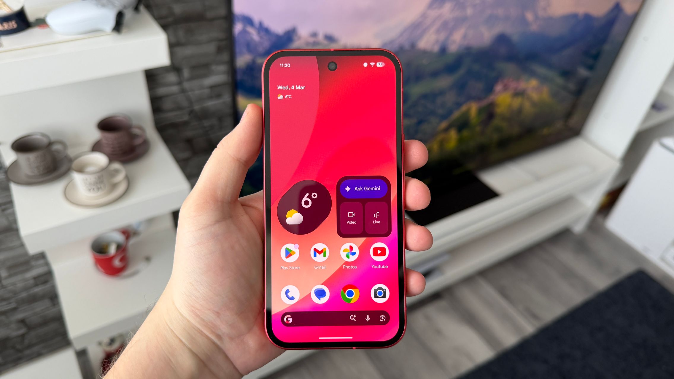 Ca și nuanțe telefonul are cu ce se lăuda și acum Google pulsează cu o nuanță Berry (roșu căpșună) mai vibrantă decât rozul predecesorului. Am cerut fix această culoare la teste și este cu siguranță ceva special. Atrage priviri, e roz, roșie sau portocalie în funcție de lumină și arată neașteptat de bine. E o nuanță pastel plăcută ochiului și îmi place să văd că producătorii îndrăznesc, după un iPhone 17 Pro portocaliu.