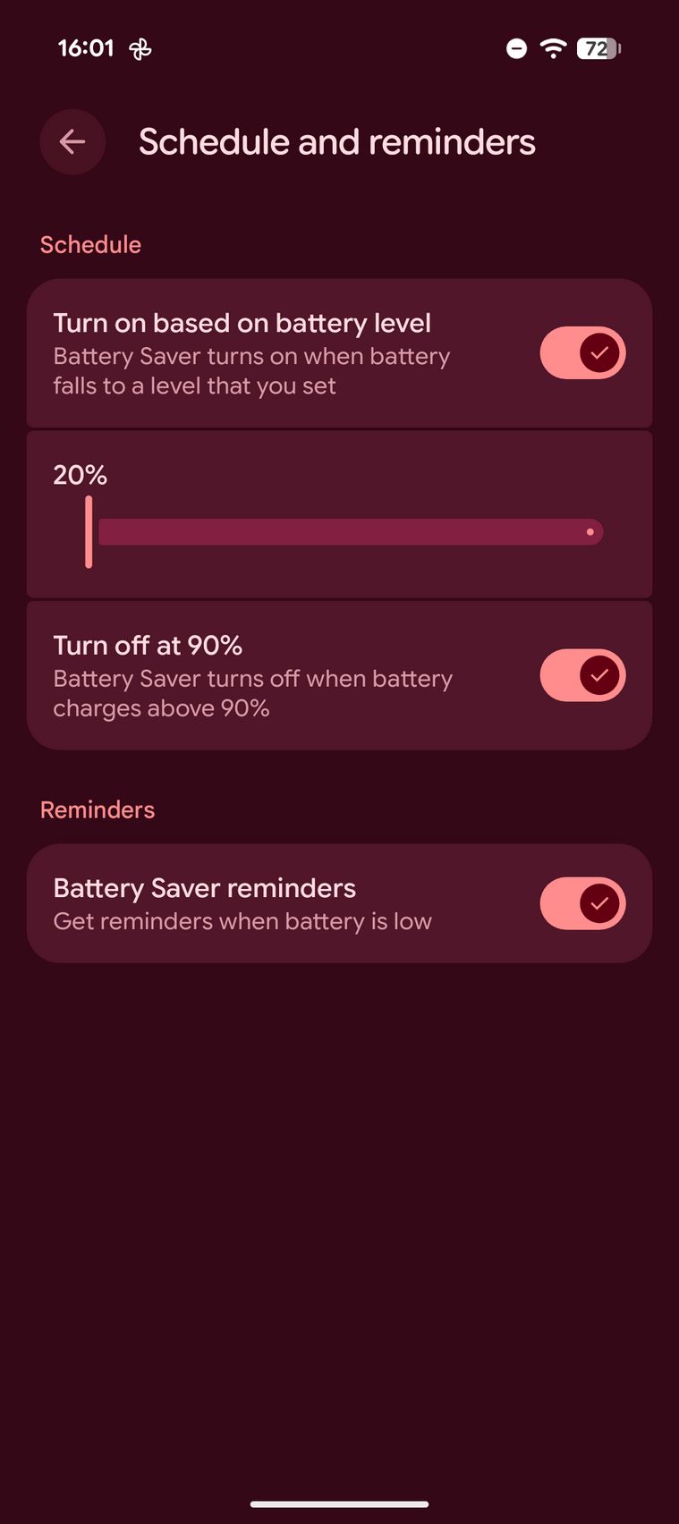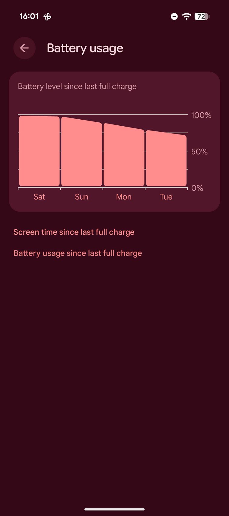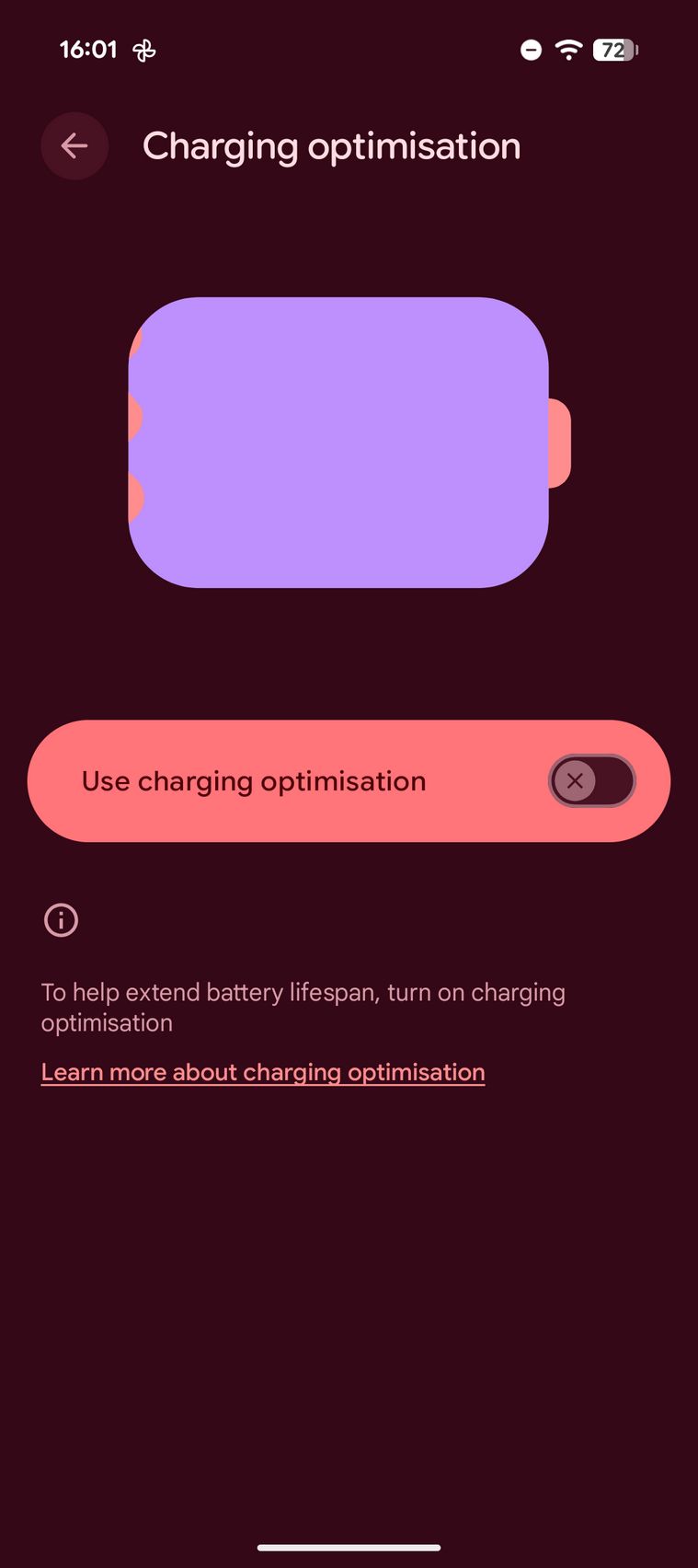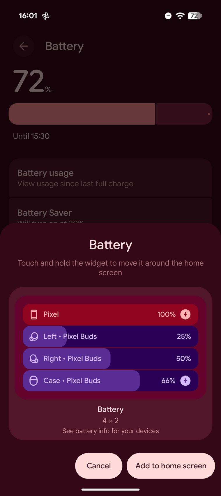 În 5 minute eram la 14%, în 15 minute la 33% iar în 30 de minute la 59% (9a era la 50%). Prin setări am găsit grafic utilizare, Battery Saver, detalii despre sănătatea acumulatorului, un widget de baterie și posibilitate de a activa o optimizare de încărcare prin care se extinde durata de viață a bateriei.