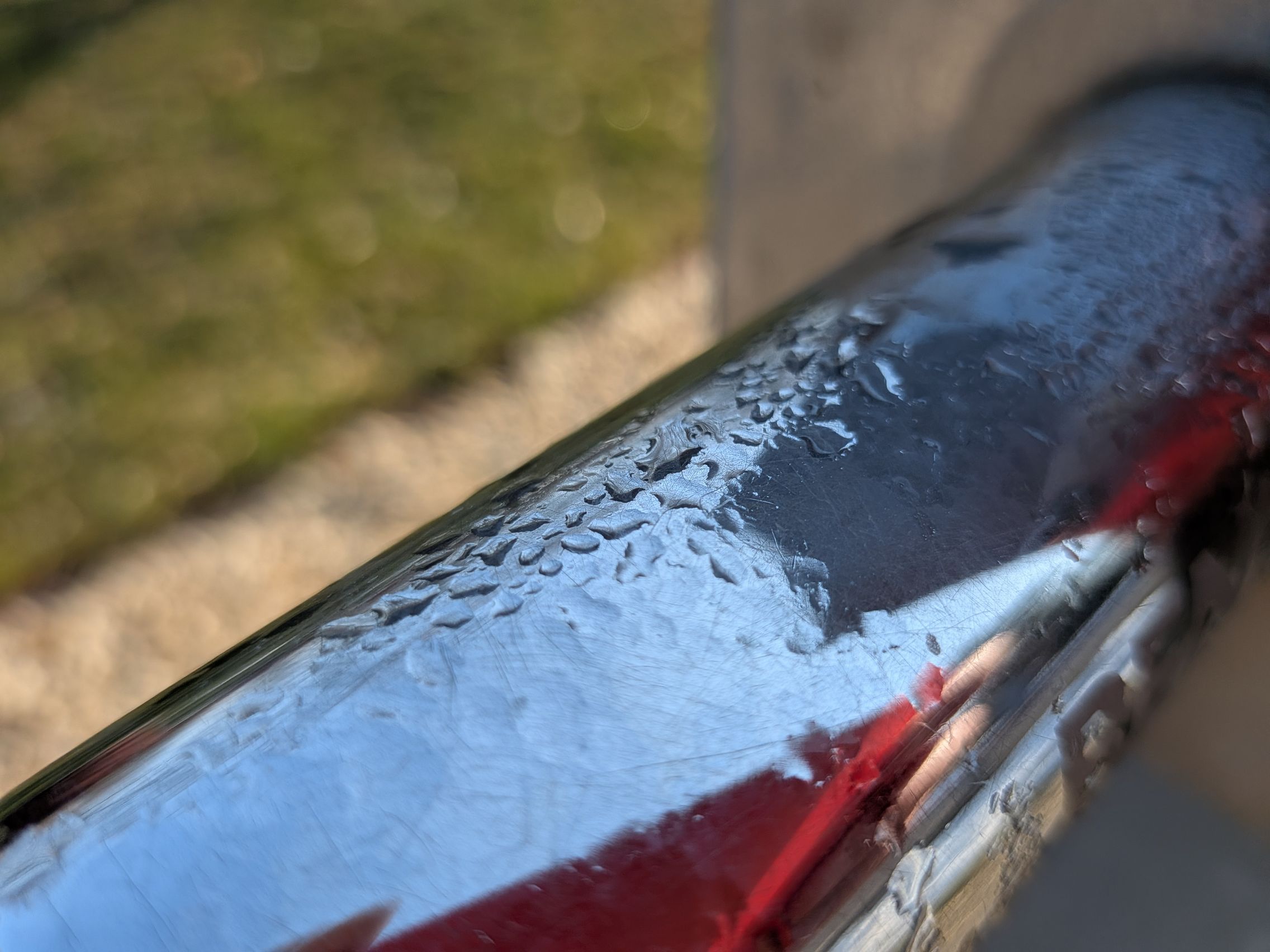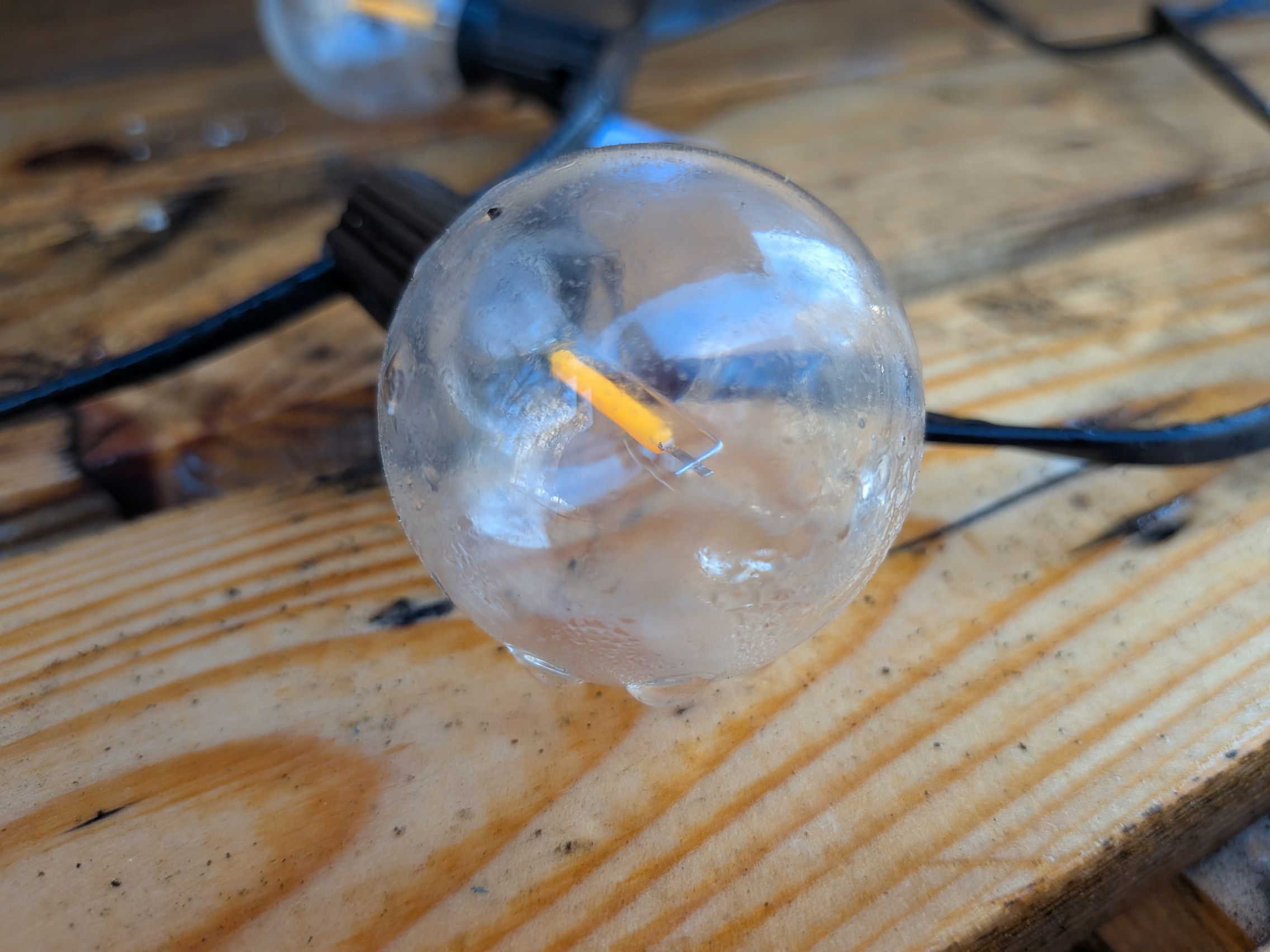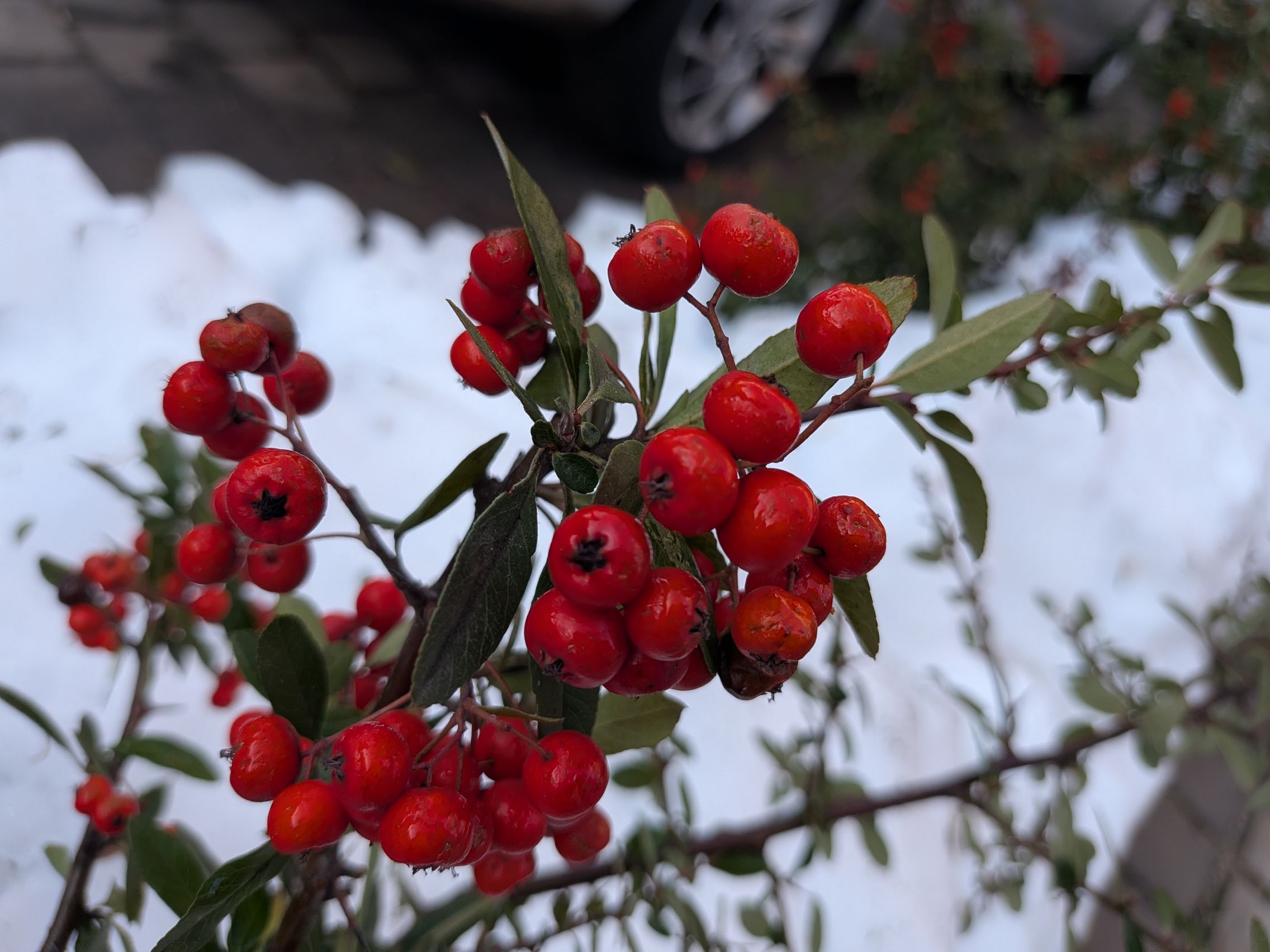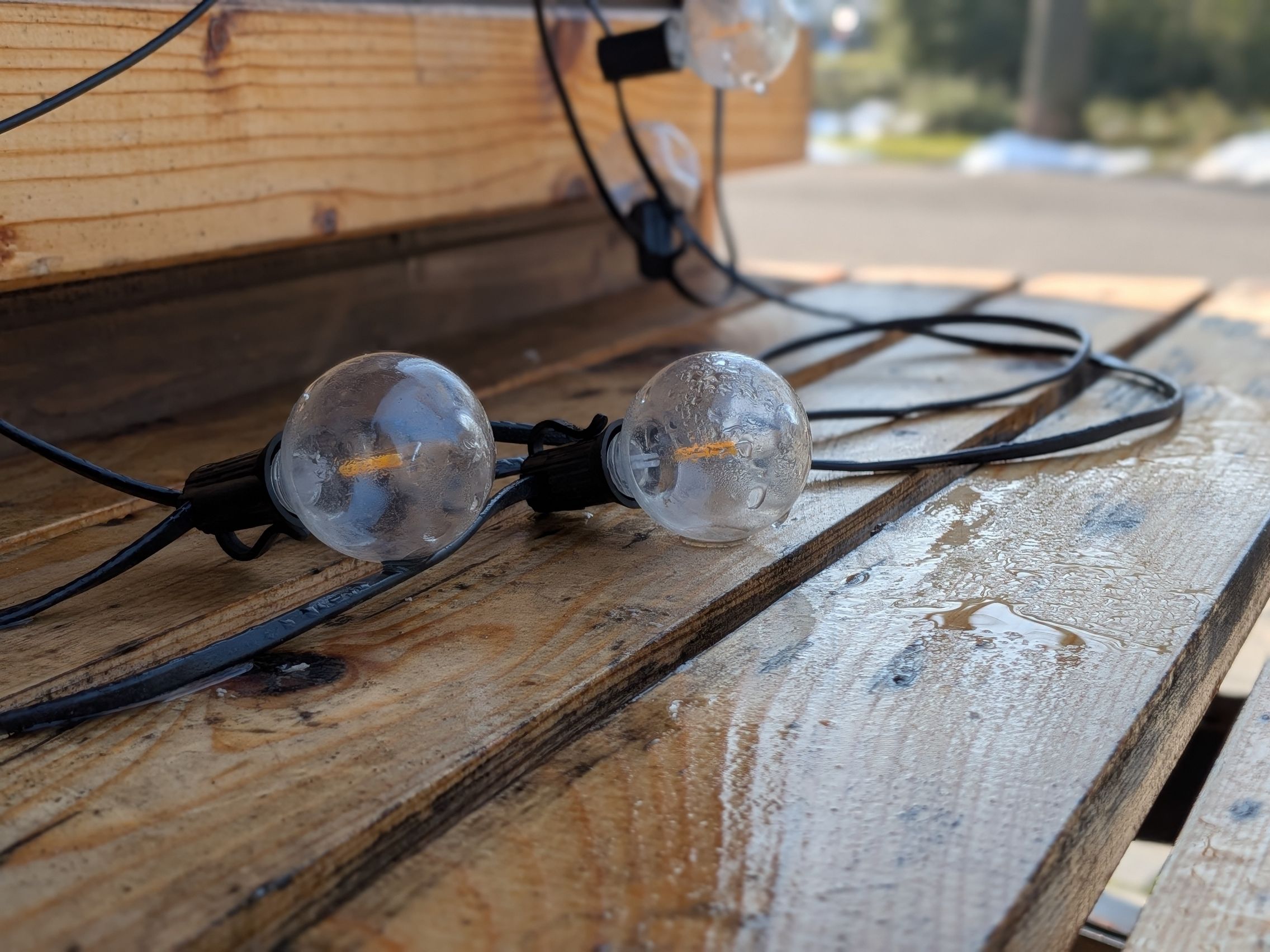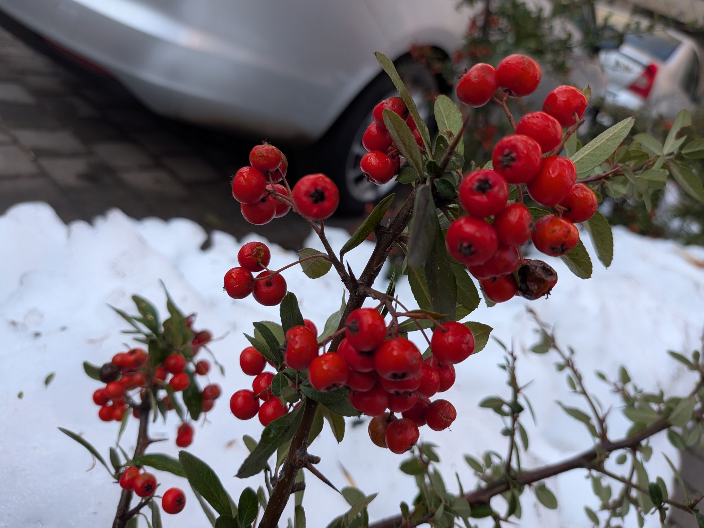 Camera lui Pixel 10a știe și macro și îi iese bine, chiar dacă nu este prea intuitiv. Mi-ar plăcea să am un buton dedicat de fotografiere macro și nu să intre în acțiune doar când simte și apare acel simbol floricică. La prima încercare cu acele fructe roșii nu prea am fost mulțumit, dar de la beculețul acoperit de apă s-au mai schimbat lucrurile în bine. Acele ace de brad parcă îți intră în ochi, iar textura lemnului se simte în poză.