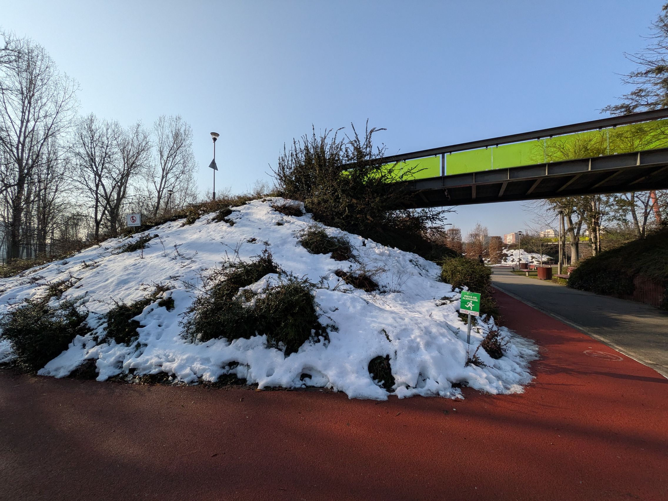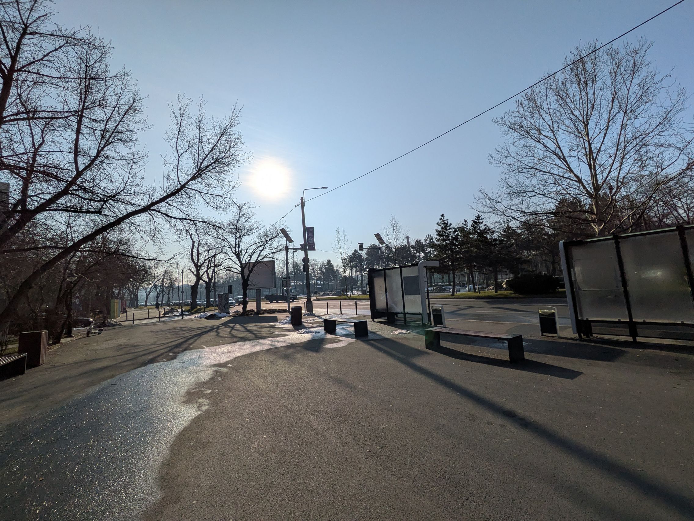 Nu știu cum reușește Google să livreze o așa captură portrait! Fotografiile cu acel felinar aburind arată excelent și e un obiect care a dat bătăi de cap multor flagship-uri ce costă bine peste 1000 de euro. Fotografiile din acel loc au ieșit mereu perfect, camera știind unde să focalizeze și ce să scoată în evidență. Mă uit și la beculețele de jos de pe care se scurgeau lacrimile ultimei ninsori sau la trotineta care pare să iasă din cadru.