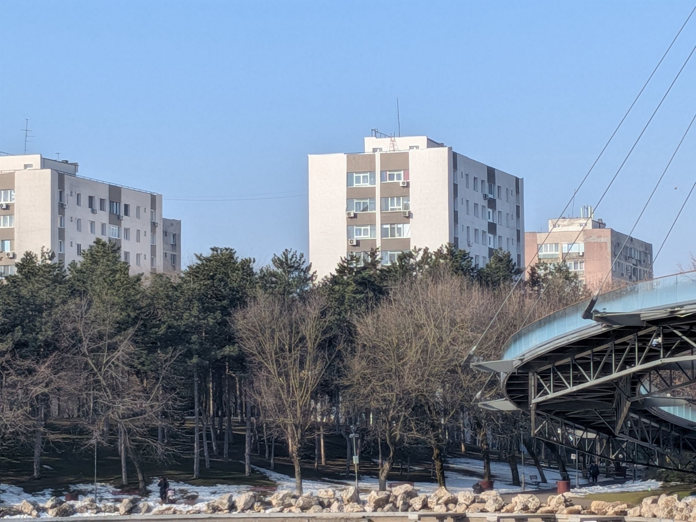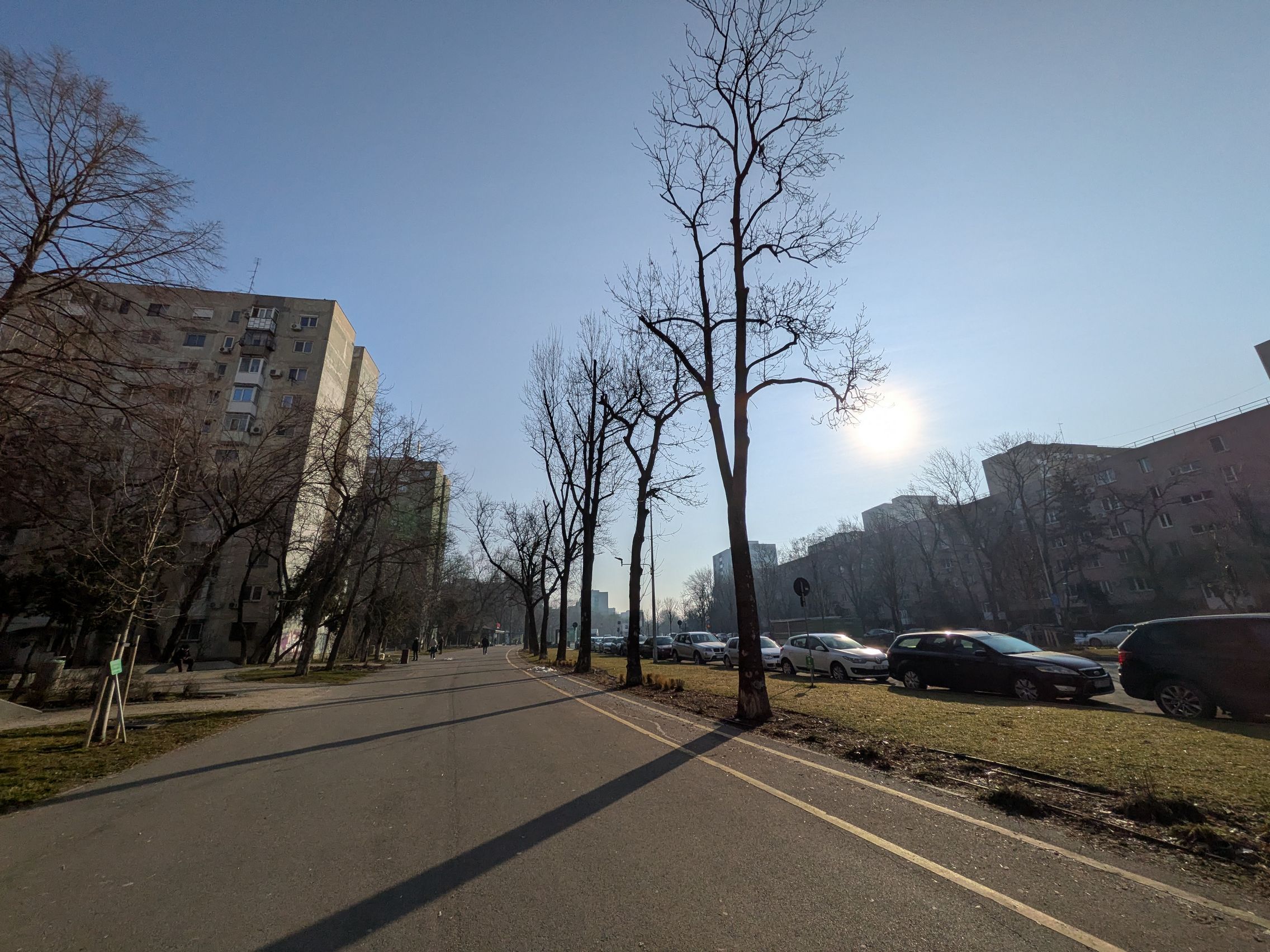 Galeria de față a prins ultimele momente ale zăpezii din iarna 2025/2026 din București, cu pete albe încă întinse prin zona verde a blocului și prin parcuri, dar nu pentru mult timp pentru că soarele a venit să-și facă datoria. La ieșirea din bloc fotografiile mi s-au părut cam întunecate dar am fost uimit de cât de grandios e ultrawide-ul și cât poate prinde în cadru.