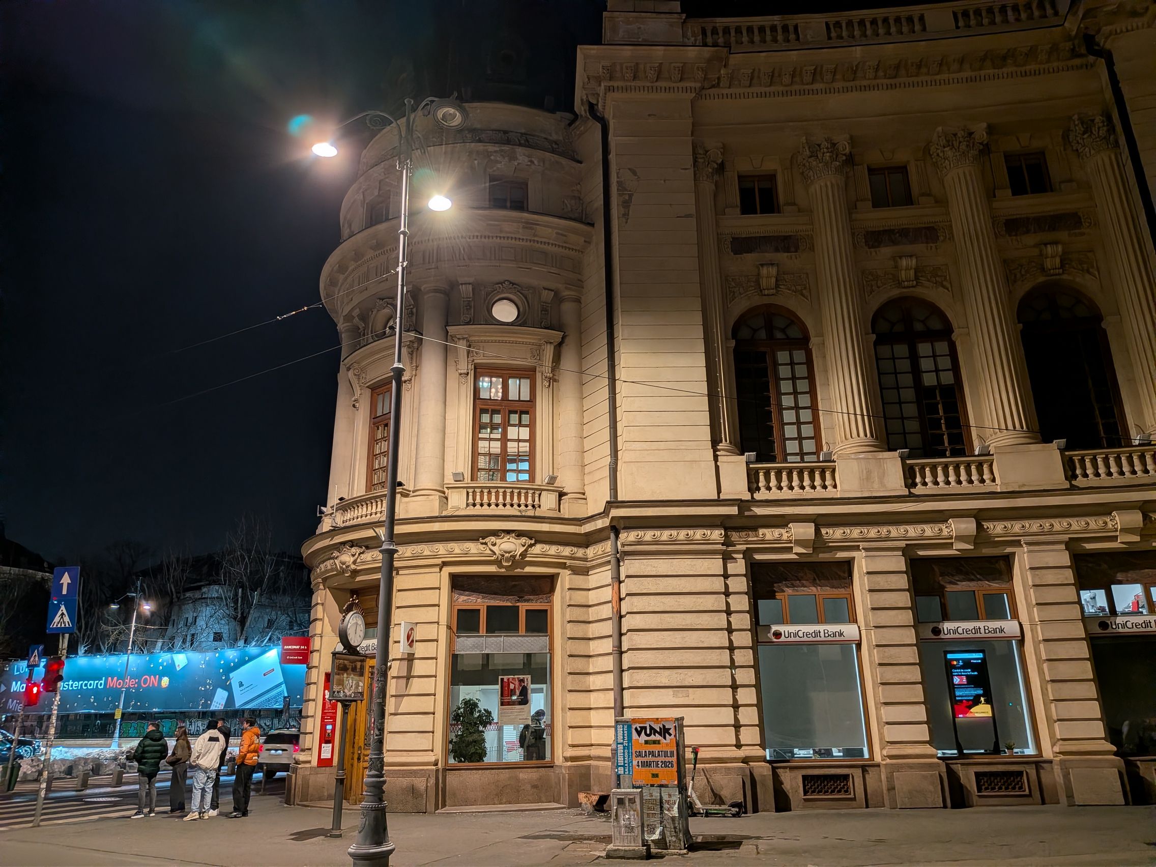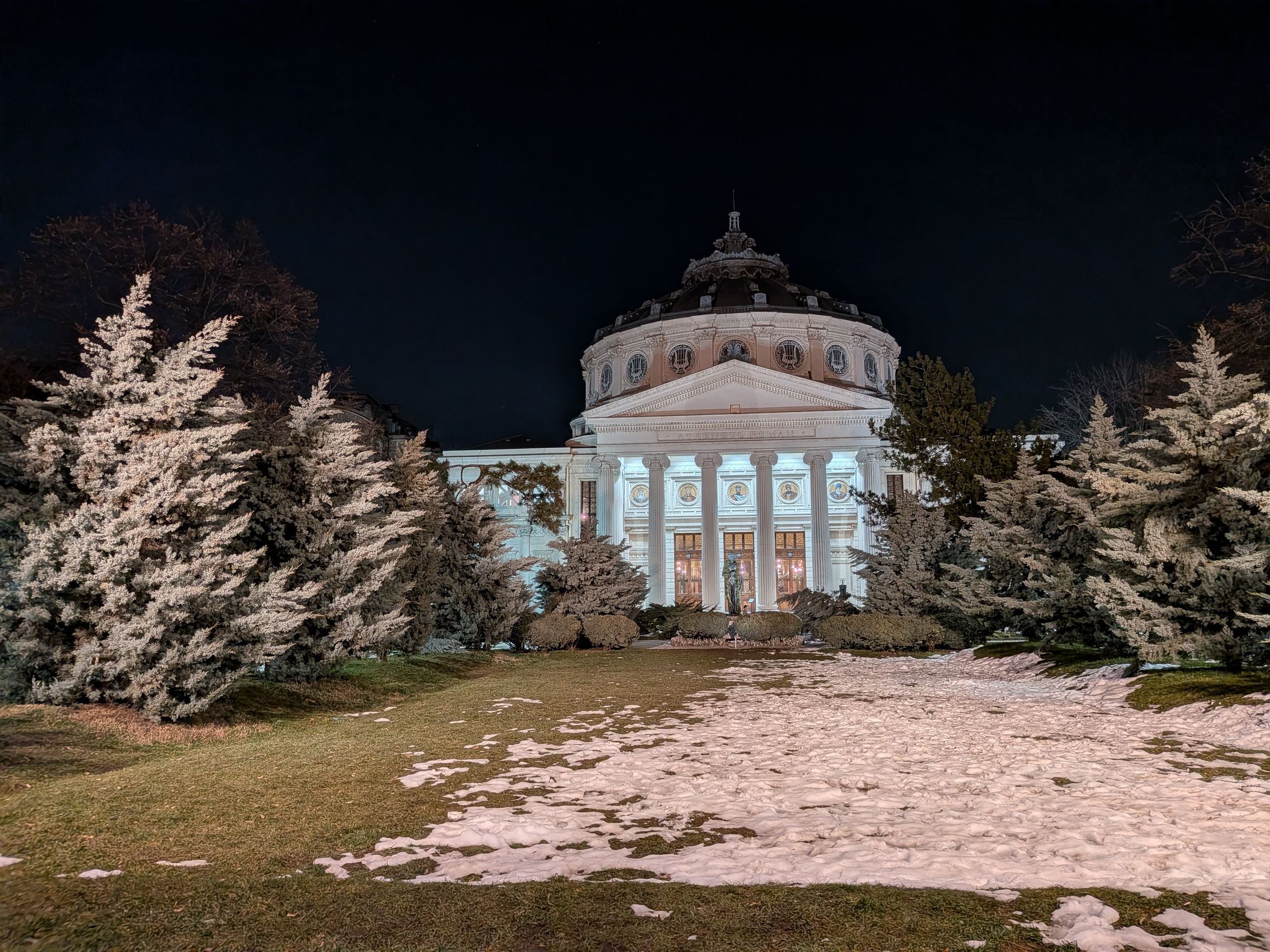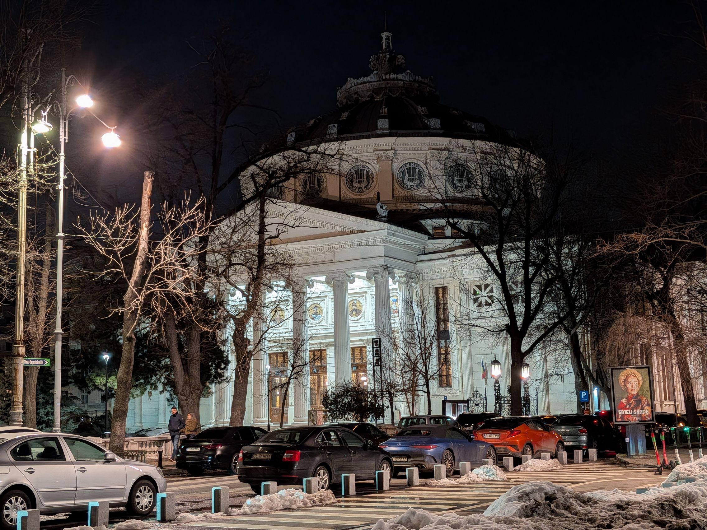 Am fotografiat și Ateneul care arată drăgut, nu la nivel de S26 Ultra pe care îl aveam în acea seară cu mine, dar nu e rău deloc. Și closeup-ul rămâne eficient noaptea. Selfie-ule nu mi-au plăcut inițial, dar mai la lumină rezultatele au fost mai acceptabile. A funcționat inclusiv bokeh-ul, deci poți obține poze bune și pe timp de noapte.