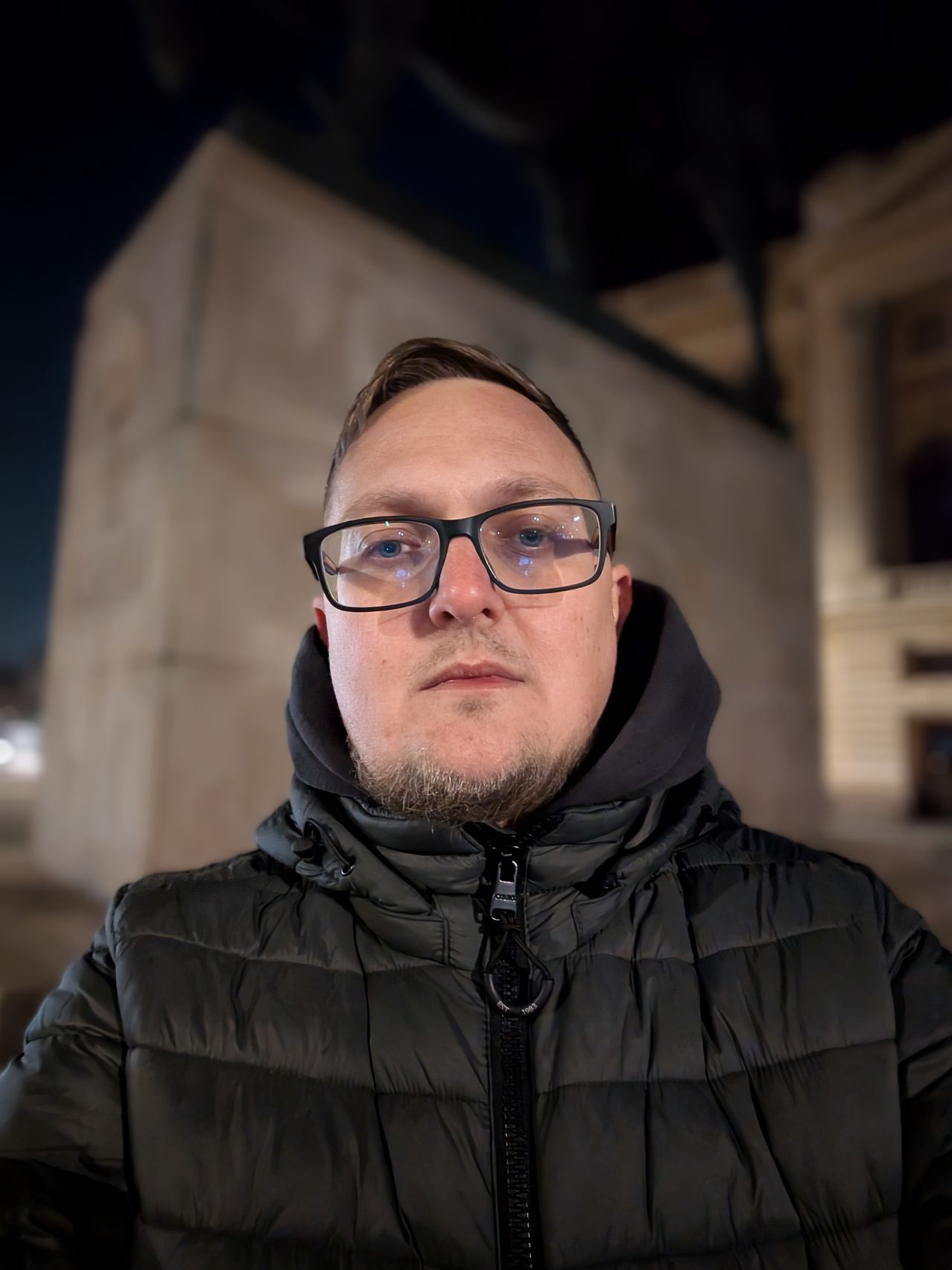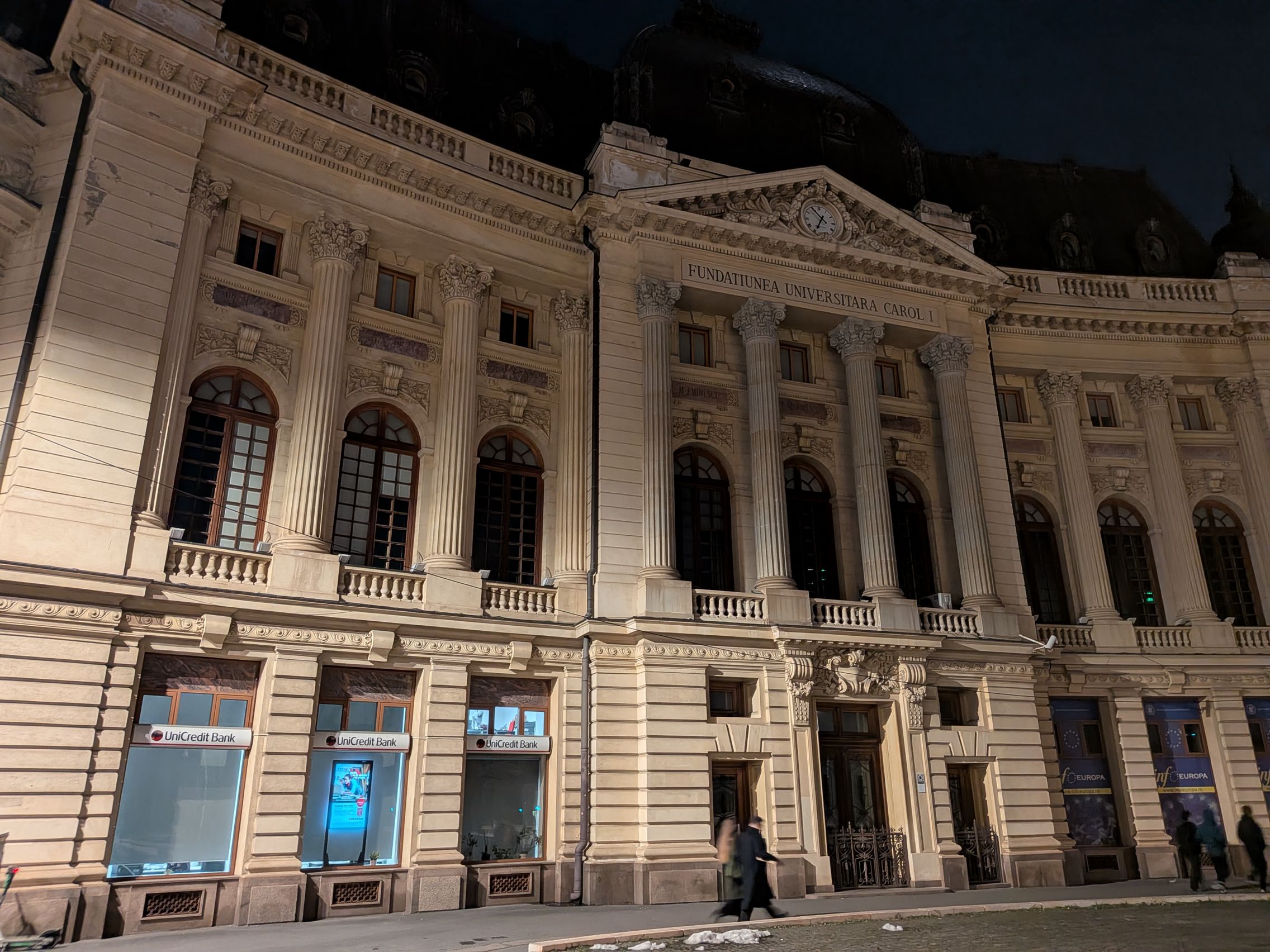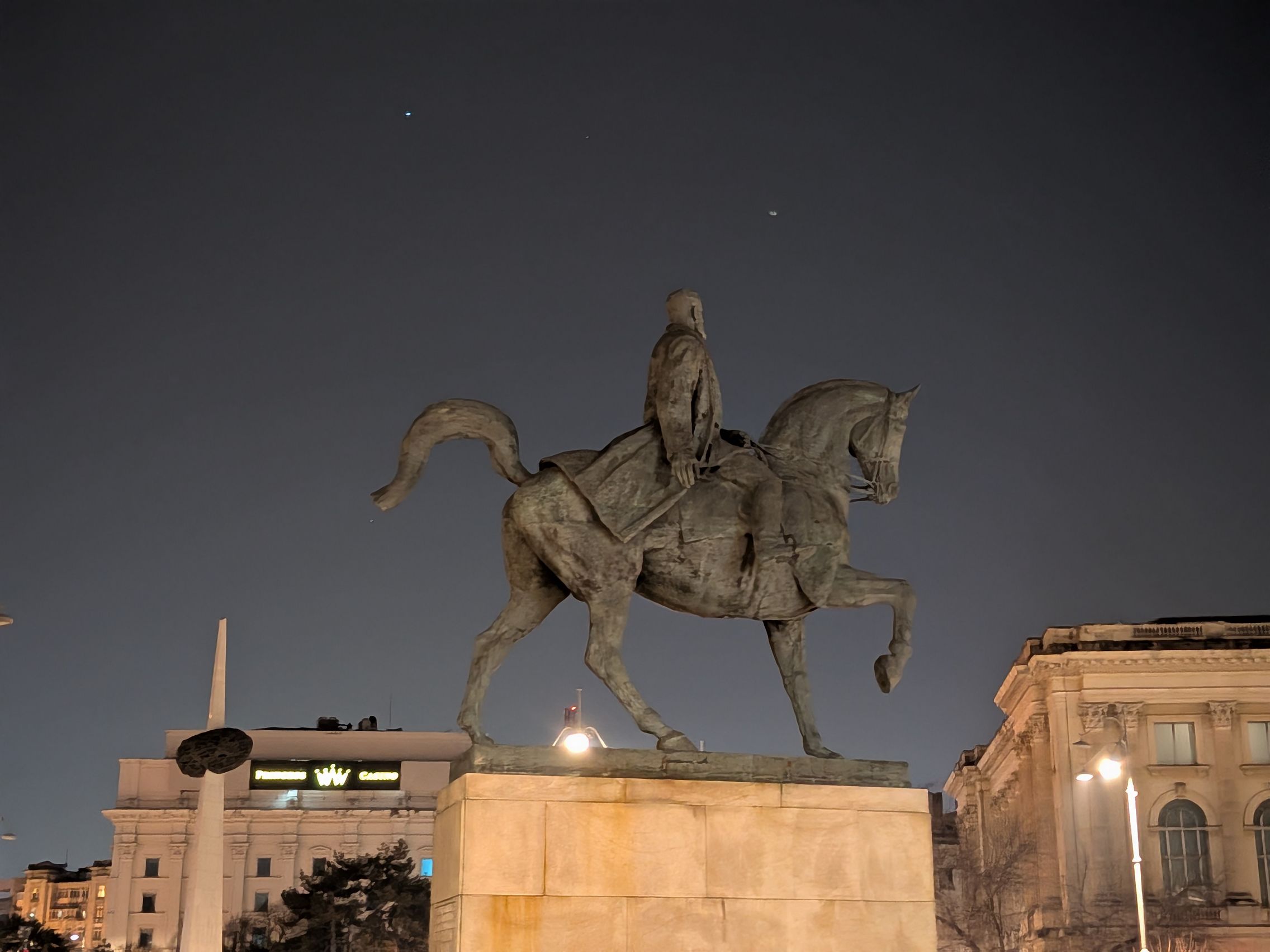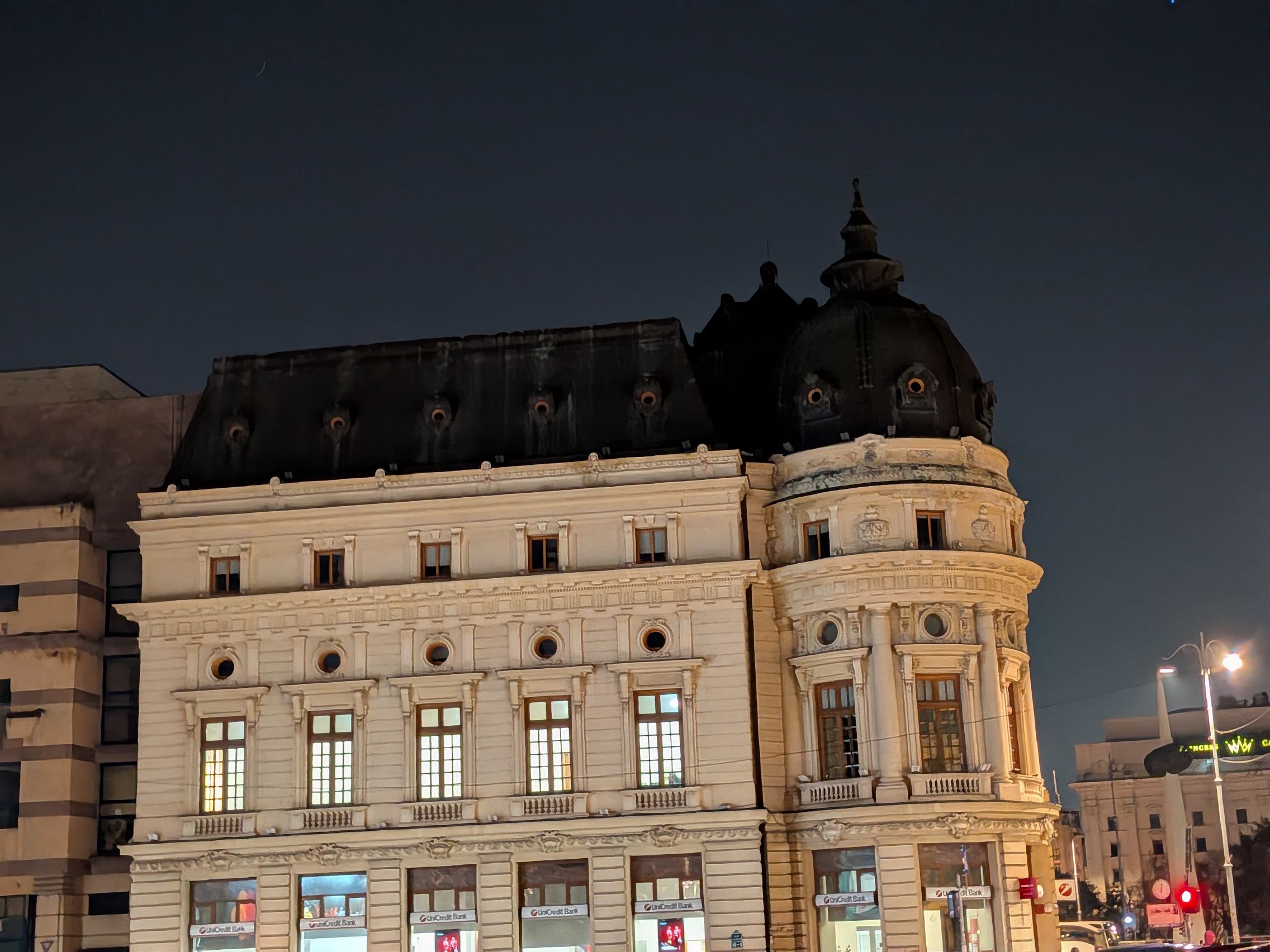Am fotografiat și Ateneul care arată drăgut, nu la nivel de S26 Ultra pe care îl aveam în acea seară cu mine, dar nu e rău deloc. Și closeup-ul rămâne eficient noaptea. Selfie-ule nu mi-au plăcut inițial, dar mai la lumină rezultatele au fost mai acceptabile. A funcționat inclusiv bokeh-ul, deci poți obține poze bune și pe timp de noapte.