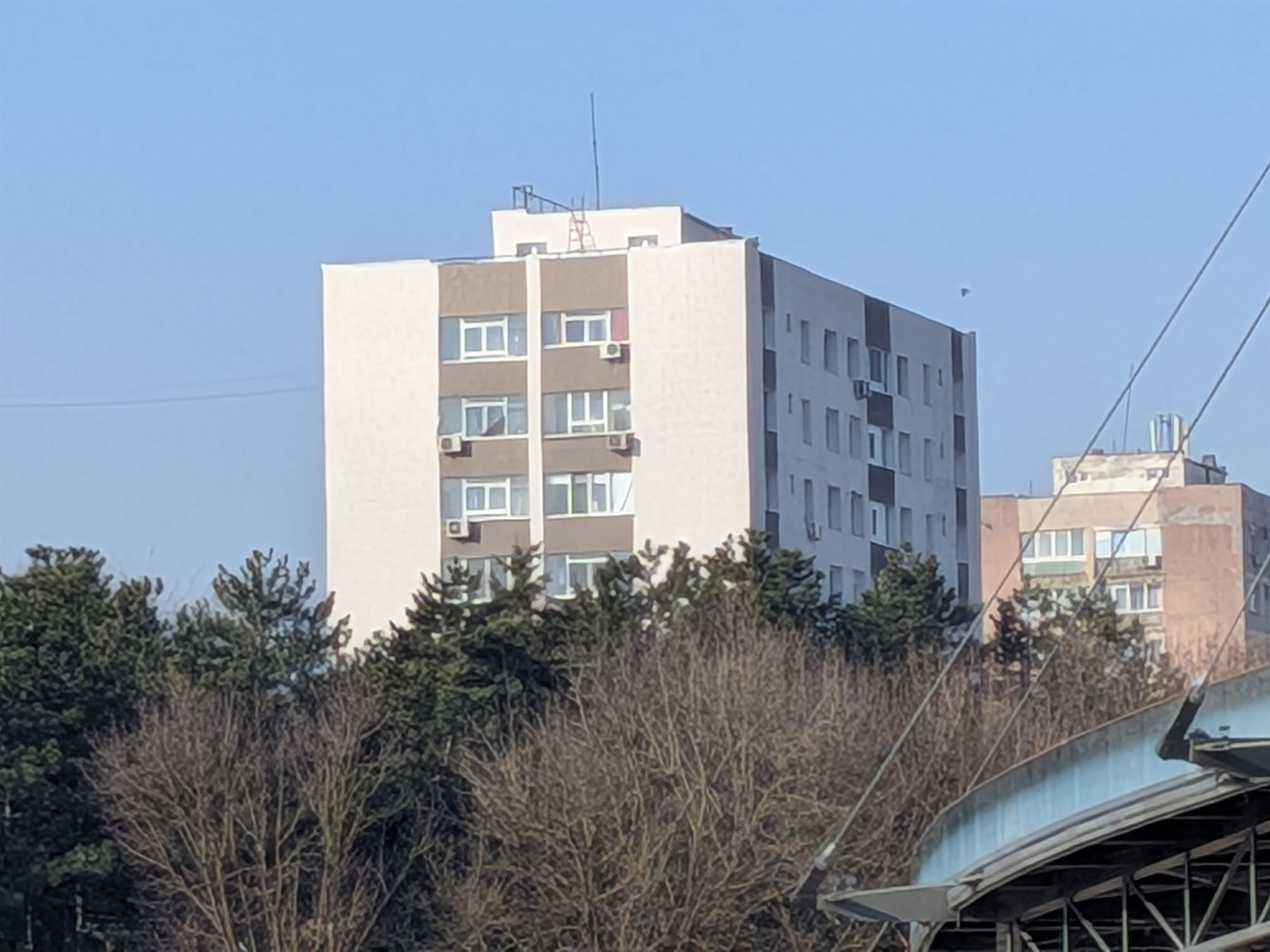 Selfie? Nicivorbă, prea tremurat și neclar încât să iasă ceva bun, poate doar de pe loc și cu lumina ideală. Am încercat și o panoramare, să zicem bunicică la trecerea rapidă. Zoom-ul n-ar fi tocmai rău dacă nu ar apărea atât de multe reflexii din lentile. Pe la 2-3x decent pe acel logo de hotel aflat sus de tot.