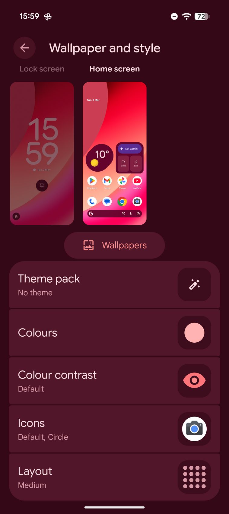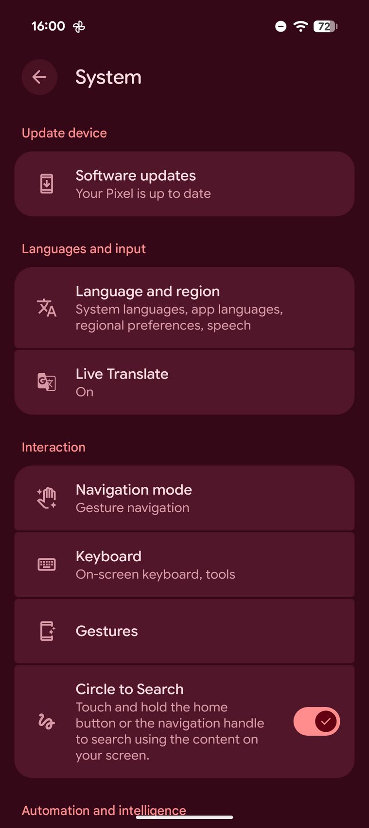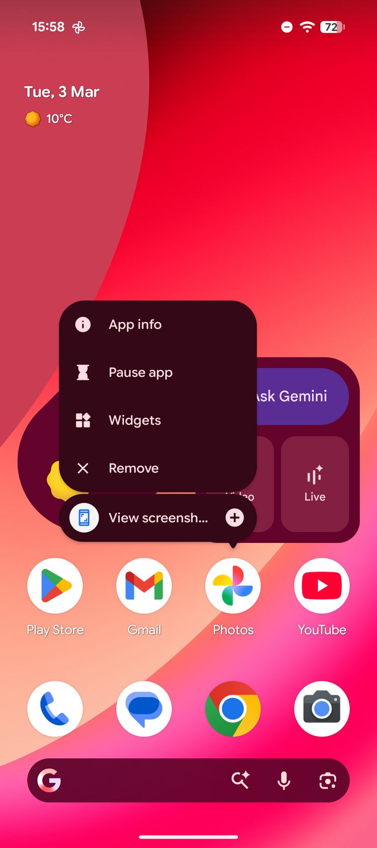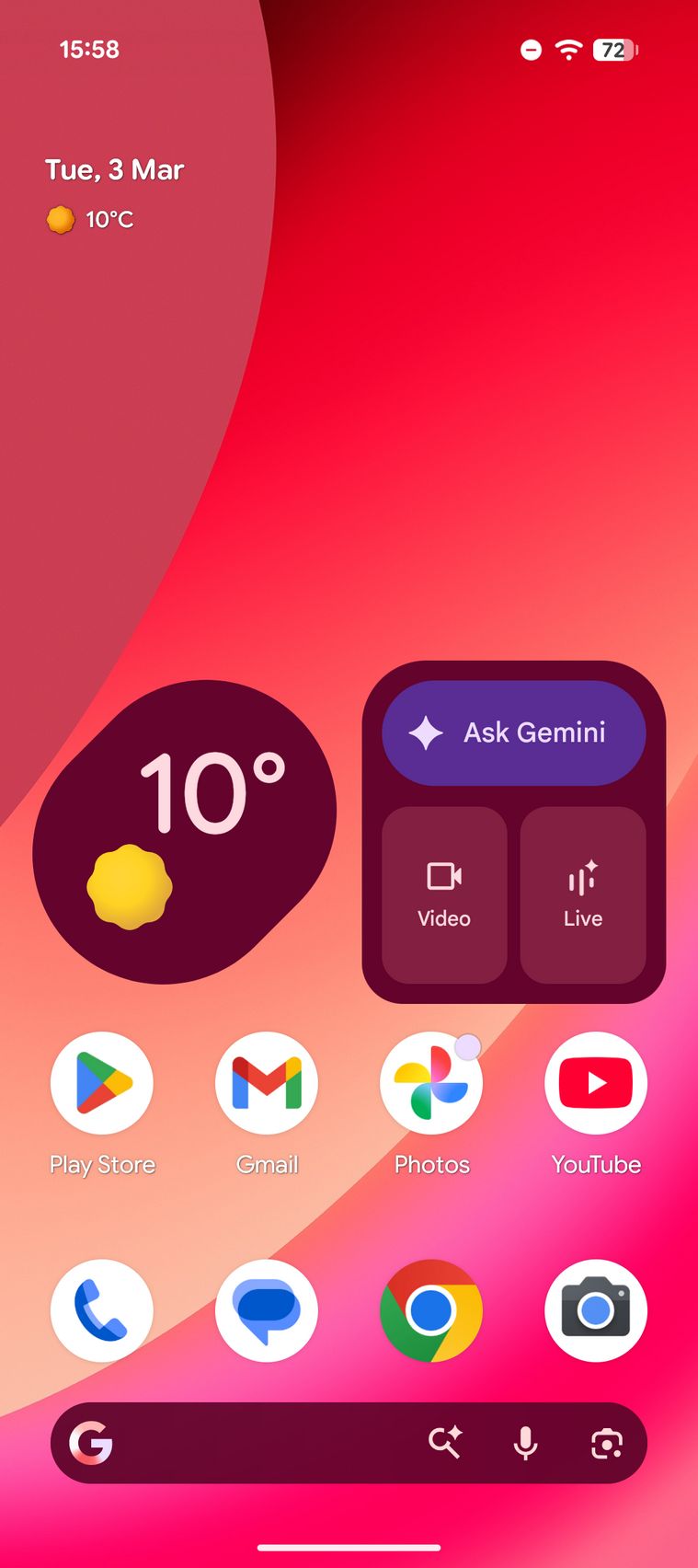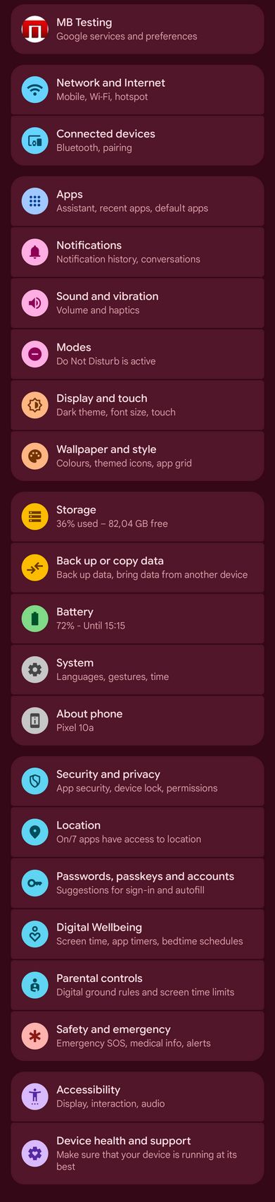 Google Pixel 10a este pentru cei care vor zero customizare Android, vor soft-ul așa cum a fost gândit, iar asta livrează Google aici. Vine cu Android 16 preinstalat și va primi 7 ani de actualizări majore OS și de securitate. Interfața este cea familiară, dar cum am primit un telefon roșu și tema presetată a avut tonuri roșiatice-vișinii.