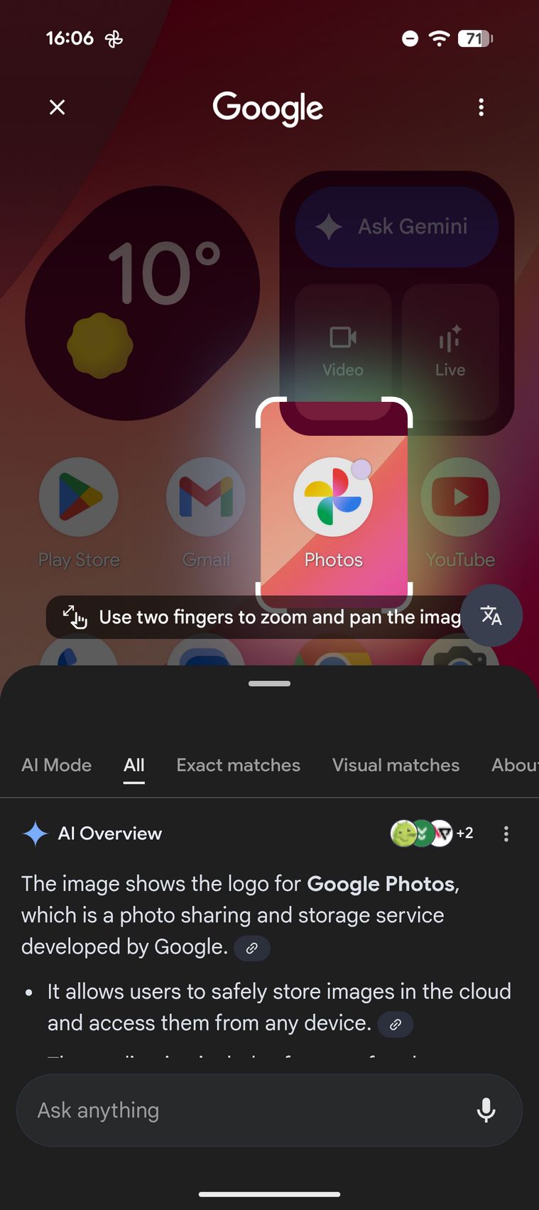 Nu lipsește Gemini Live prin care porți conversații cu asistentul vocal sau îi poți permite acces la cameră și îl întrebi despre ce vezi în față. L-am întrebat de ce un bec LED rămâne aprins noaptea ca o lampă de veghe și m-a ghidat spre ce trebuie să verific mai departe. Se pot adăuga și imagini în conversațiile cu Gemini și întreba ulterior despre ce vrei. Se poate da acces lui Gemini și la ecran, pentru a vedea ce vezi tu.