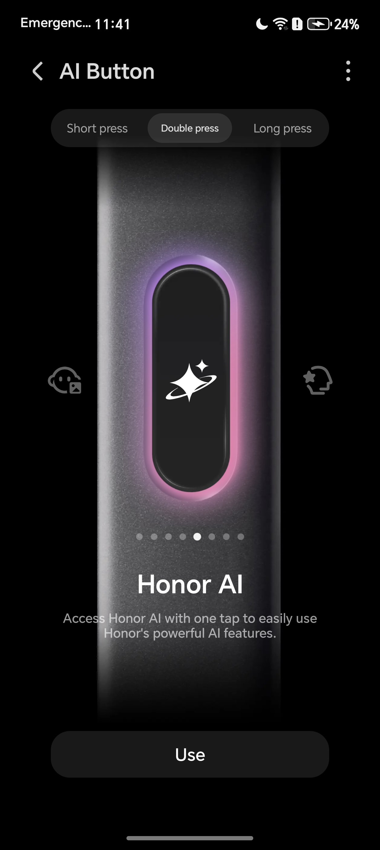 Butonul fizic dedicat AI reprezintă una dintre cele mai mari schimbări față de generația anterioară. Poate porni camera, poate acționa ca zoom slider în aplicația foto, poate declanșa Google Lens sau Circle to Search și poate deschide agentul AI propriu HONOR.