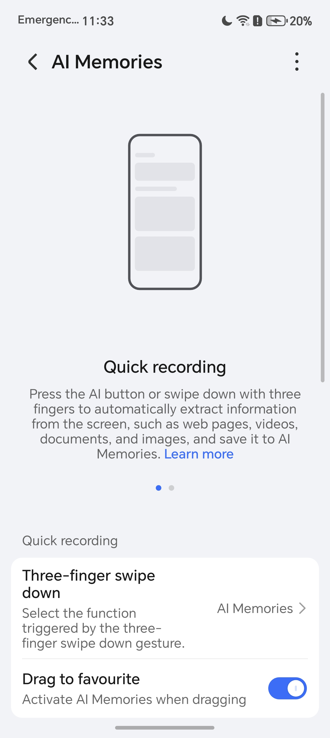 Problema apare la preluarea şi prelucrarea de date: nu toate funcțiile sunt integrate unitar, iar uneori butonul ajunge doar să facă capturi de ecran pe care le trimite într-un soi de repository numit AI Memories. Acesta e echivalentul unui OPPO/OnePlus MindSpace de bază, fără extragere avansată de text, fără recomandări dinamice și fără follow-up-uri în stil Gemini.