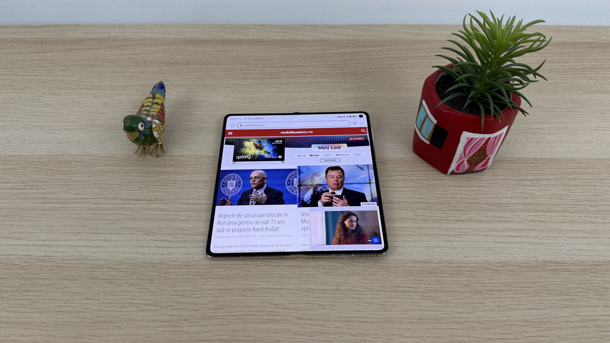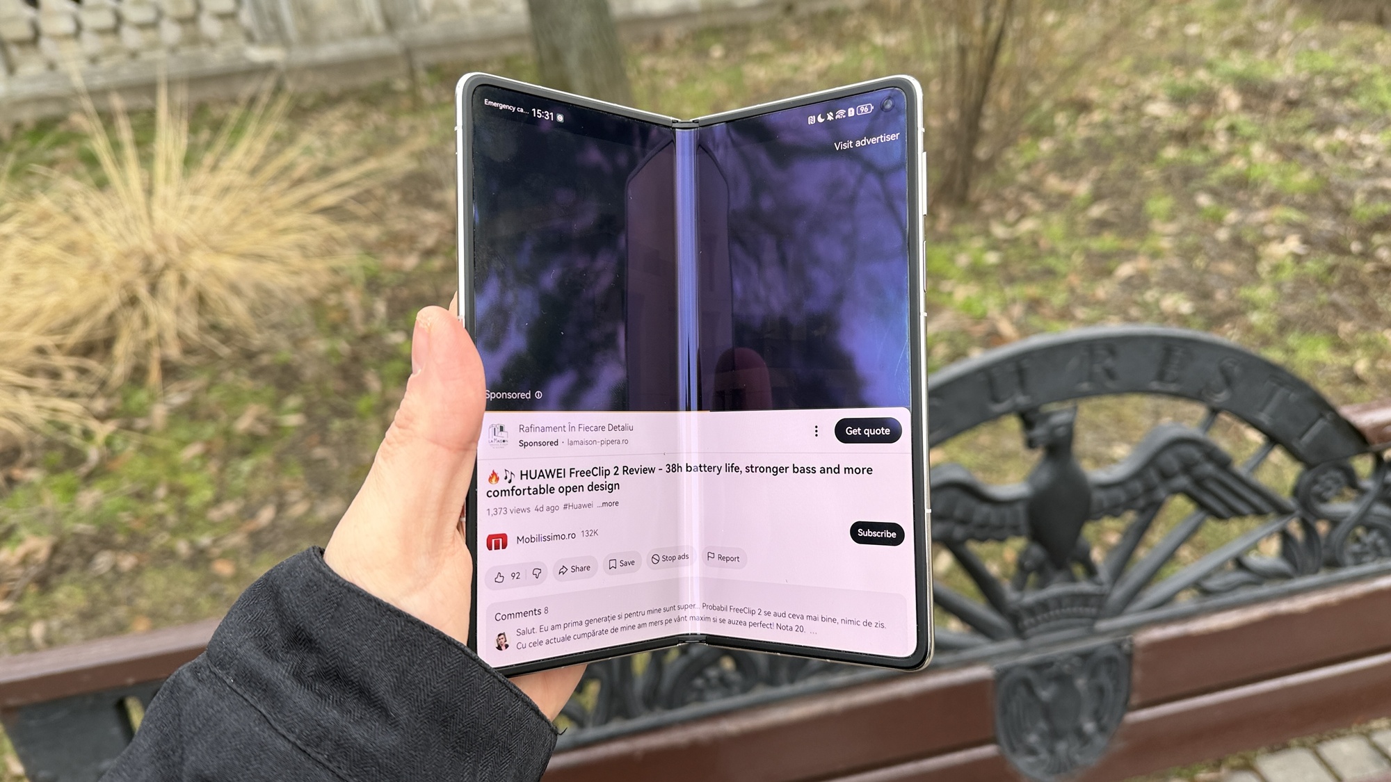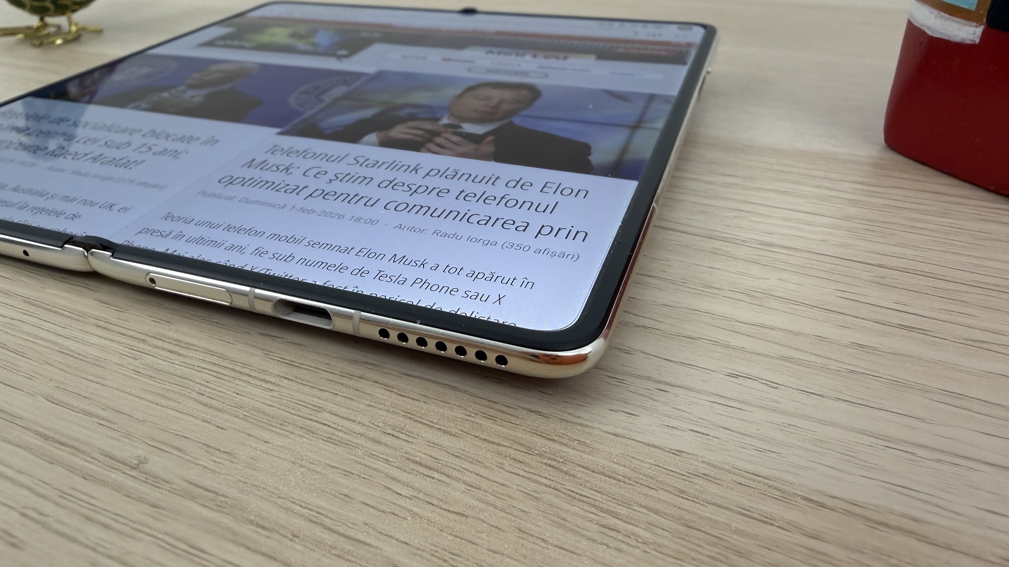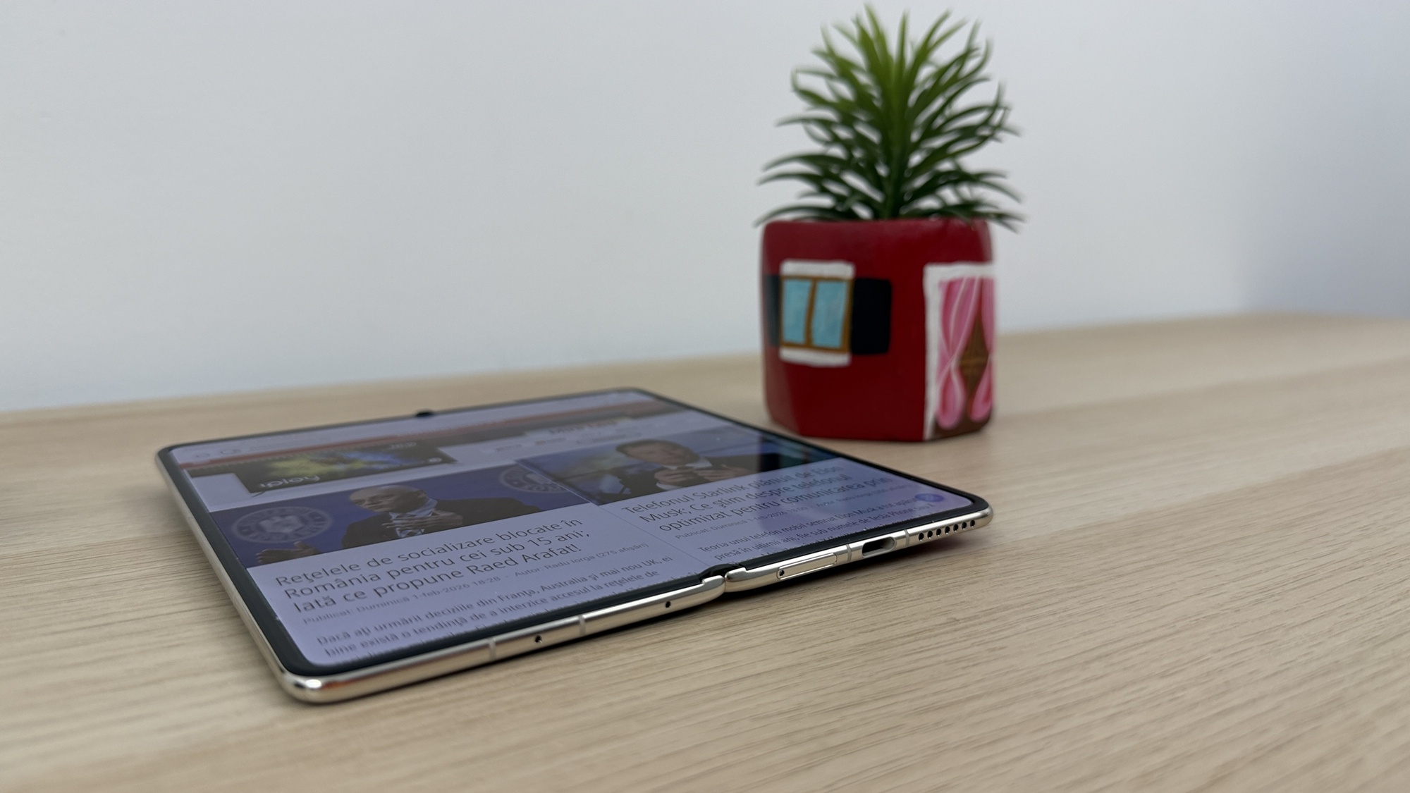 La testele de luminozitate am atins 1018 LUX pentru ecranul intern, pliabil şi 937 LUX la cel extern. Ca idee, cu cel intern depăşim ca luminozitate un Huawei Pură 80 Pro, dar suntem sub HONOR Magic V5, care atinge 1114 LUX. Galaxy Z Fold7 e chiar mai sus, la 1421 LUX. Măcar l-am întrecut pe Mate X6, care avea 960 de LUX. Cat despre ecranul Cover, el e mai luminos decât ce avem pe Z Fold 5 şi HONOR Magic V3, dar e sub Mate X6, Z Fold 6, HONOR Magic V5 şi Z Fold 7.