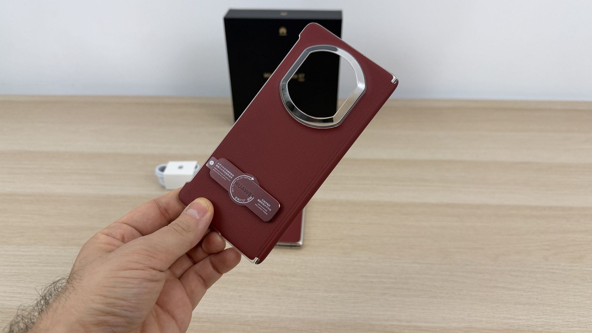 Modulul foto poreclit „Time-Space Gate” e clar inspirat de structurile din filmele SF, navele spaţiale, portaluri. Huawei a folosit suprafețe multiple, zone sculptate și un efect de cristal tăiat, pentru un look cool. Integrarea sa în carcasă este curată, iar contrastul cu spatele – fie Nebula Red cu textură inspirată de piele, fie Black cu aspect mineral – creează o estetică recognoscibilă instant.